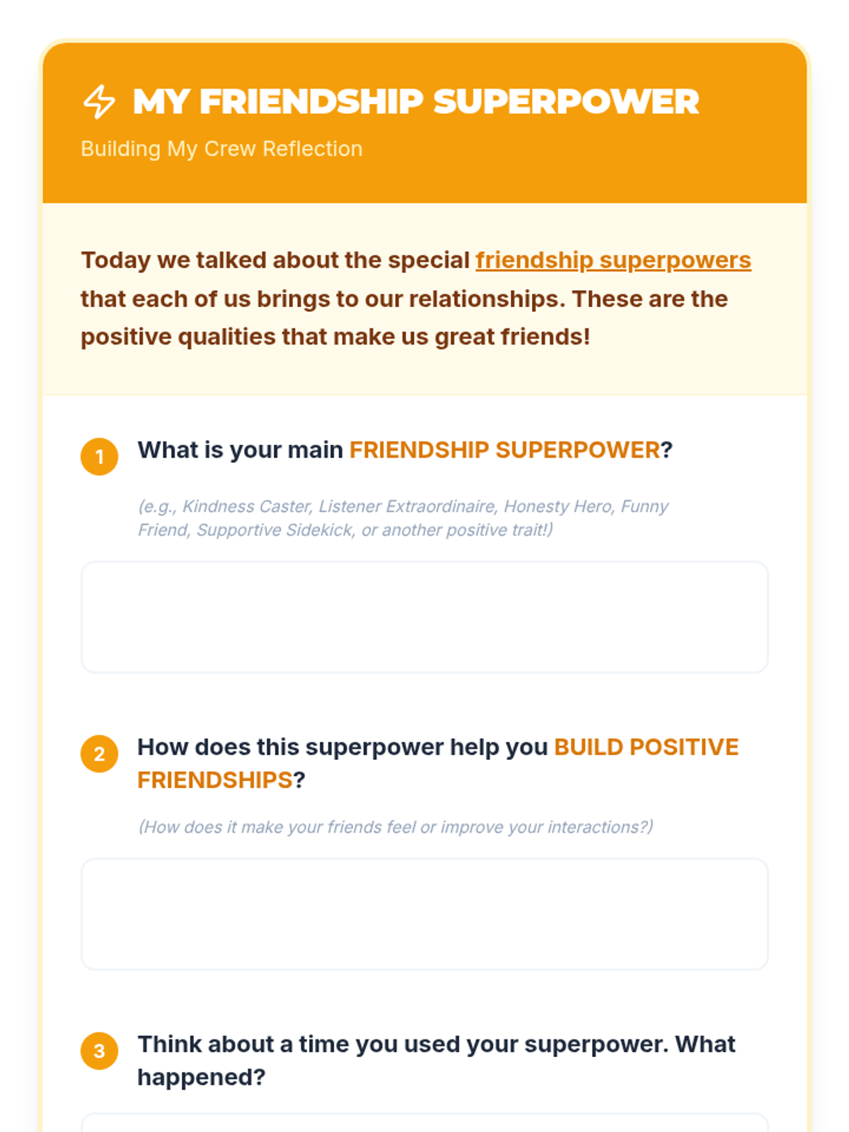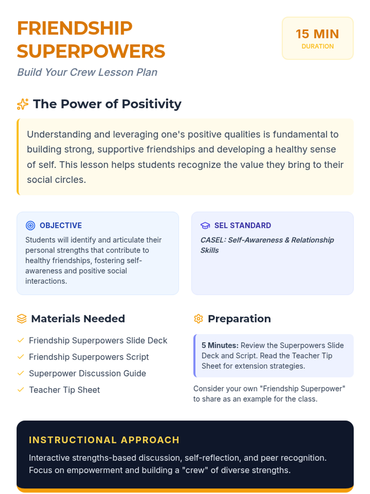 This two-part lesson sequence for 5th graders explores the dynamics of healthy friendships. Students learn to navigate 'friendship fails' by practicing self-advocacy and emotional regulation, then discover their 'friendship superpowers' to build a supportive and respectful social circle.