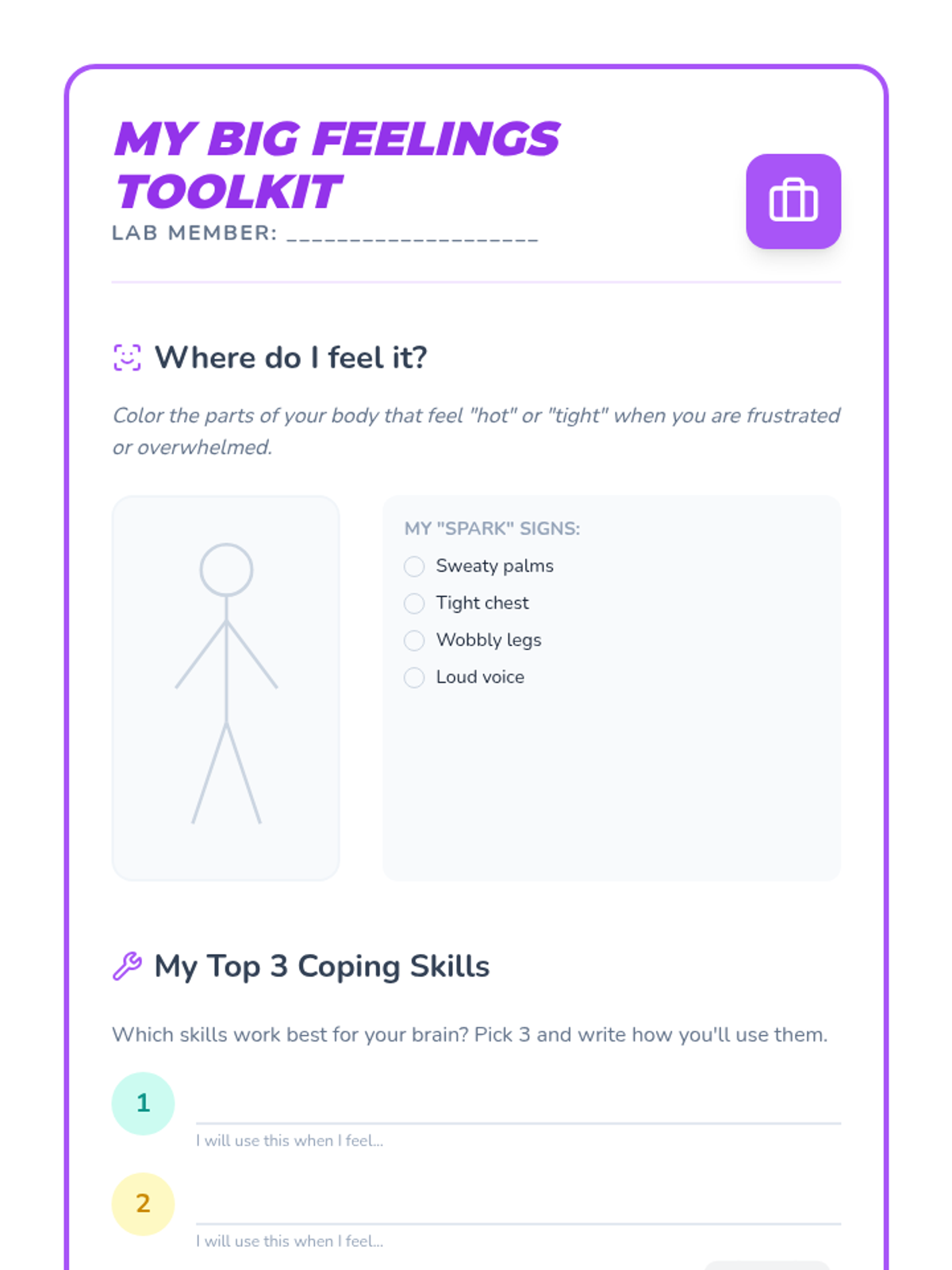 An intensive, Tier 3 individual intervention program designed to help students master self-regulation and problem-solving through a 'Calm Construction' theme. The sequence provides structured, visual tools for identifying anger triggers, implementing cooling strategies, and applying logical problem-solving frameworks.