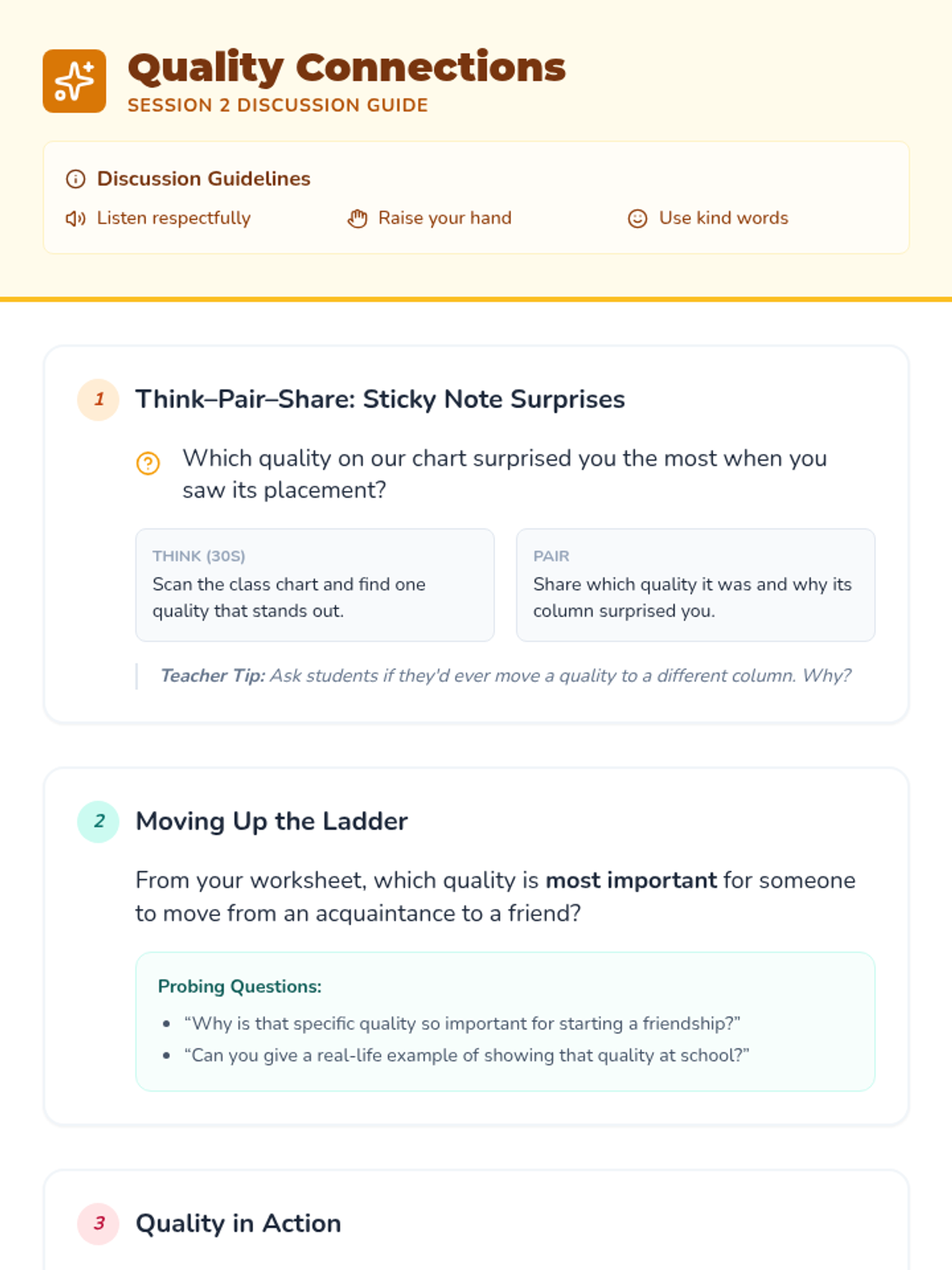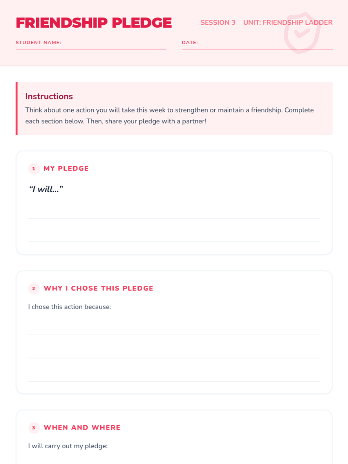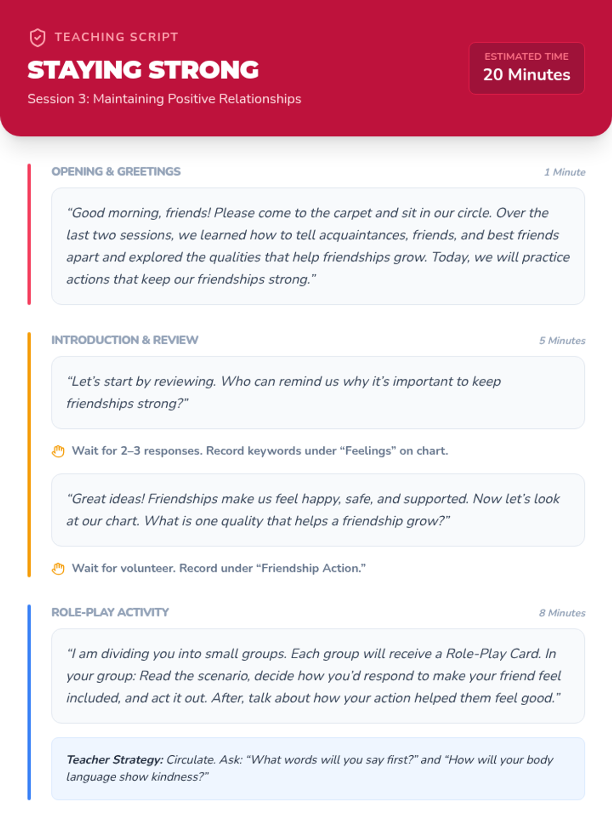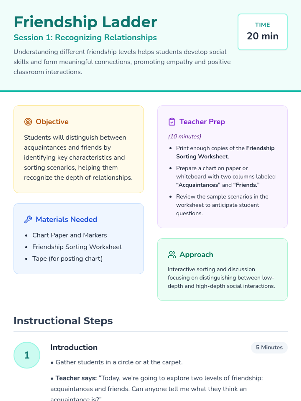 A three-session unit for 3rd graders to explore levels of friendship, recognize qualities of healthy relationships, and practice skills to maintain positive connections.
