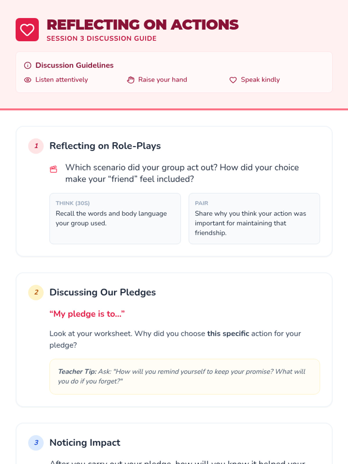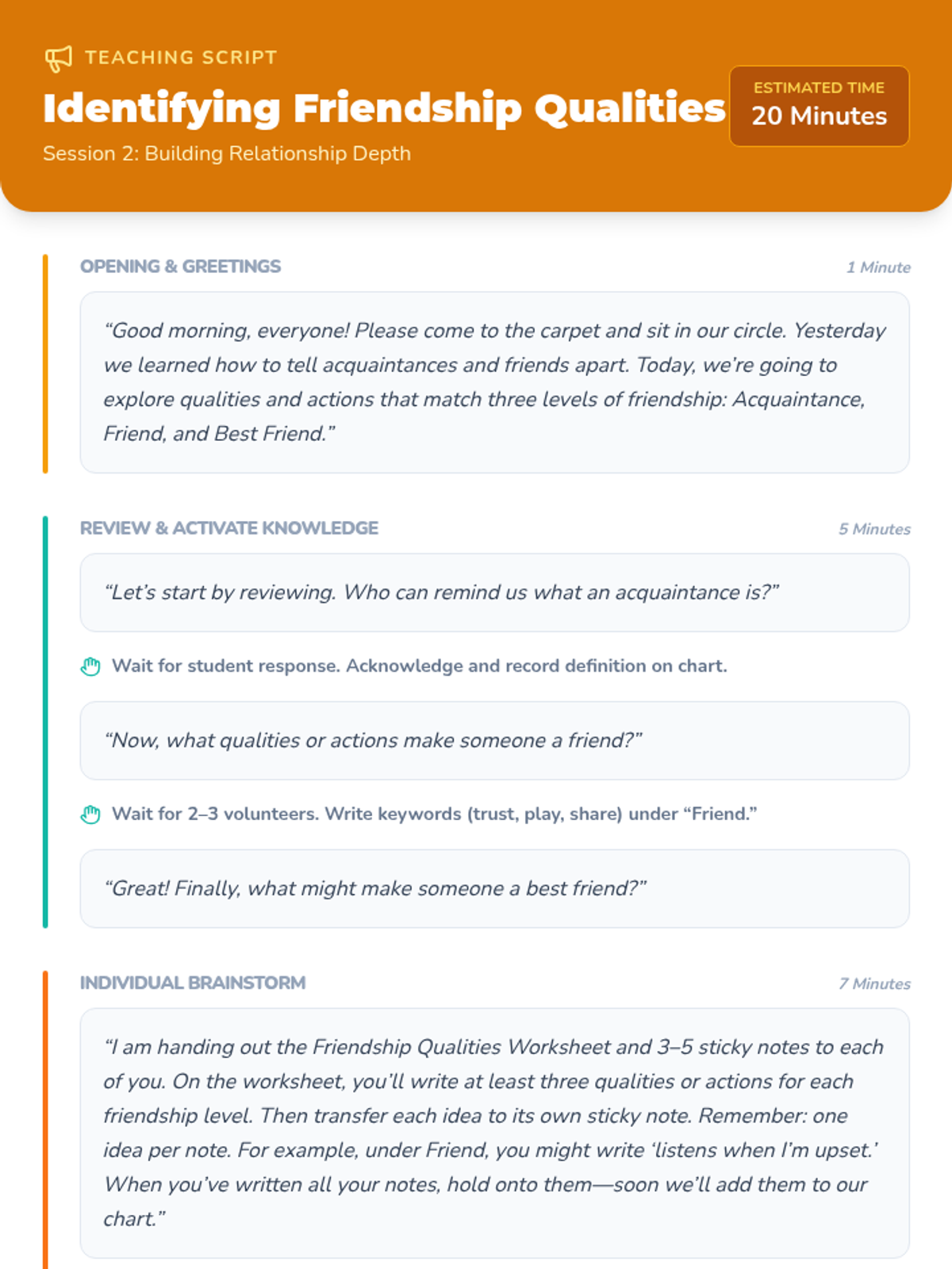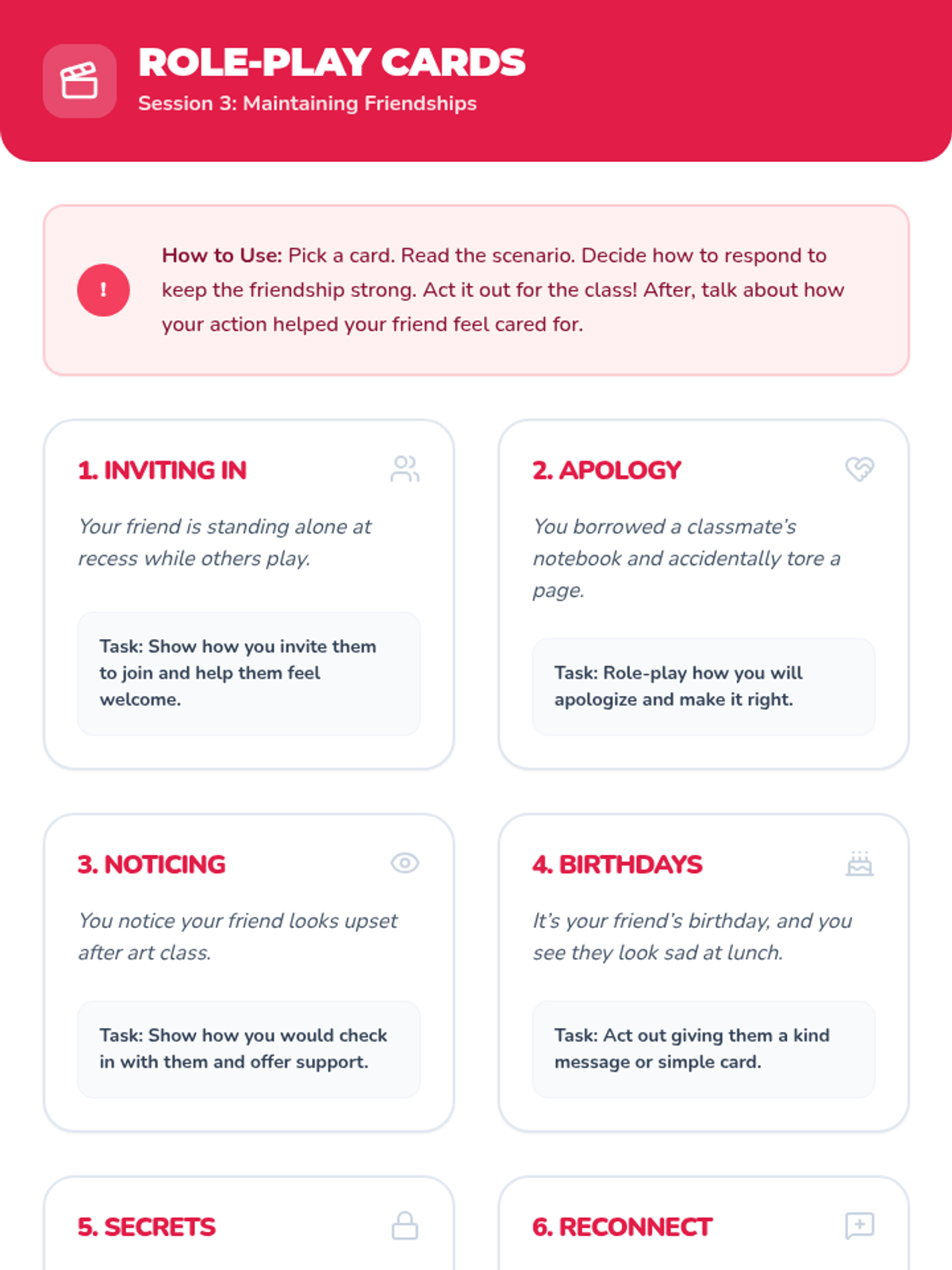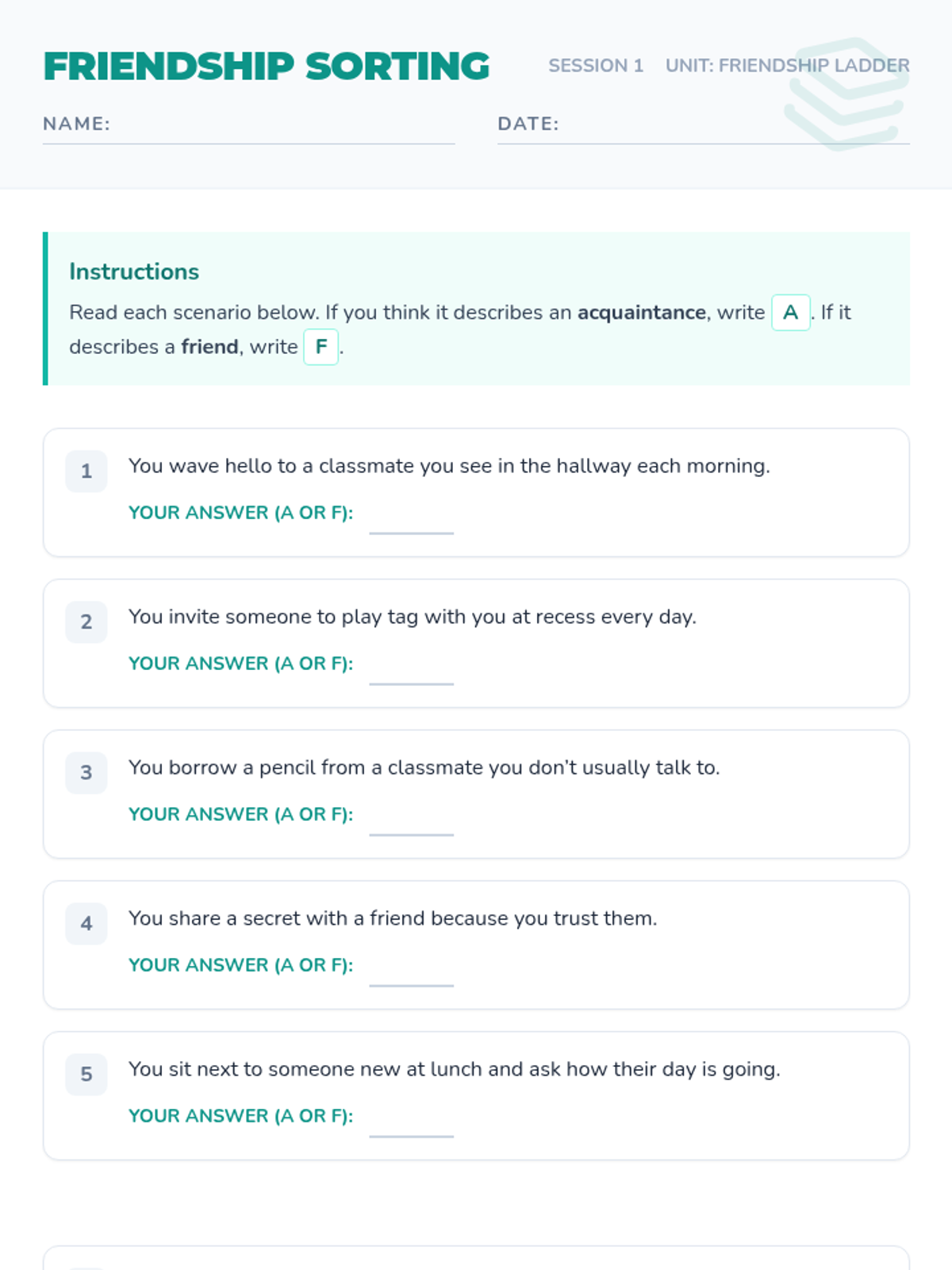 A three-session unit for 3rd graders to explore levels of friendship, recognize qualities of healthy relationships, and practice skills to maintain positive connections.