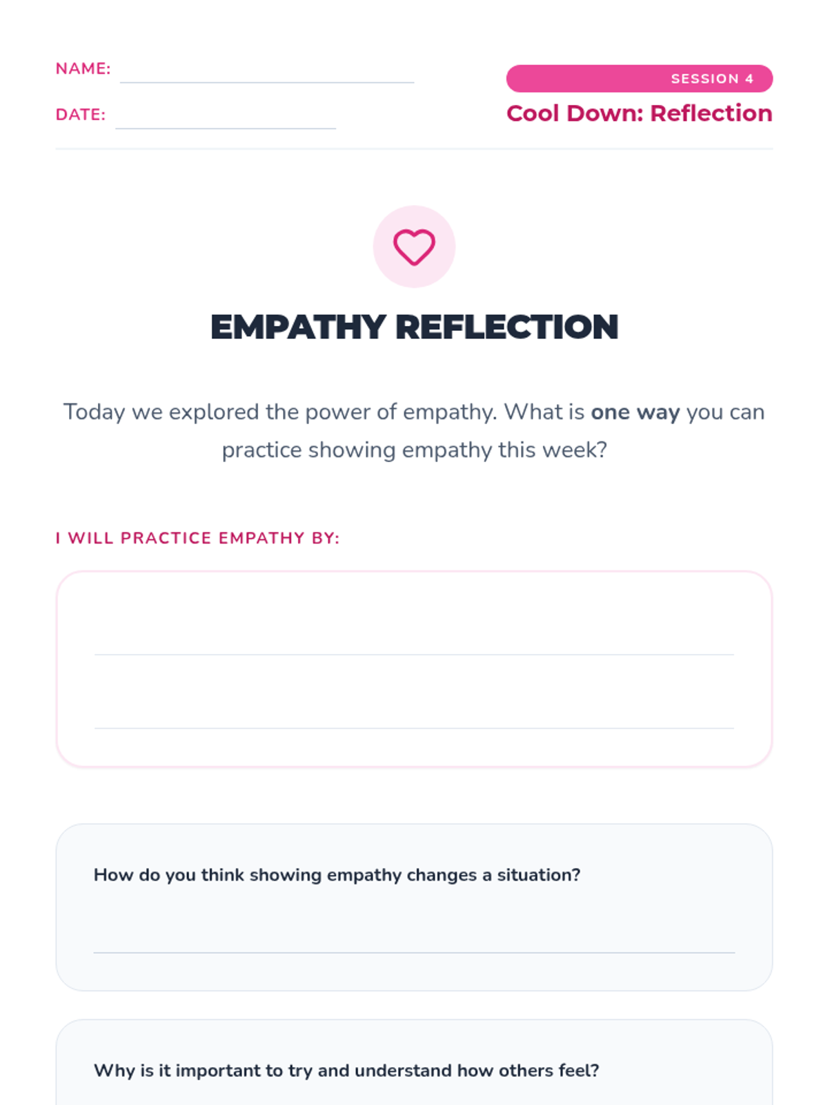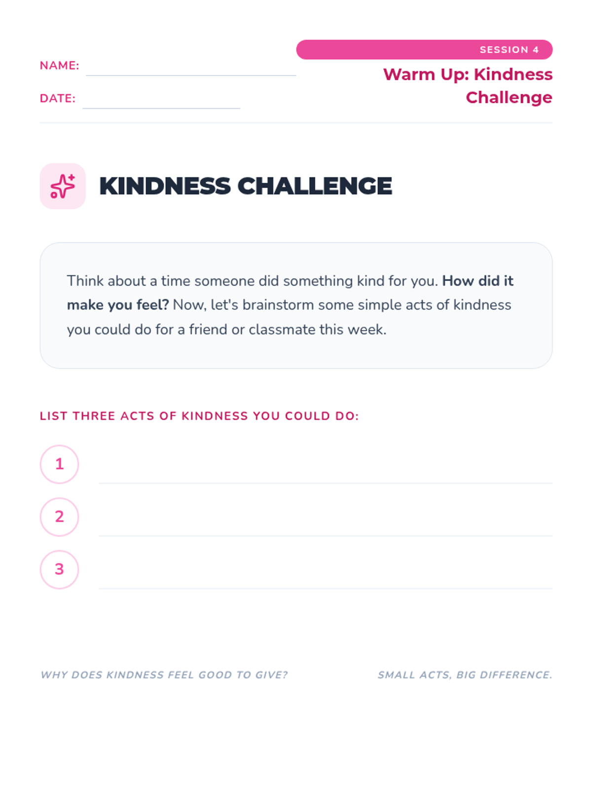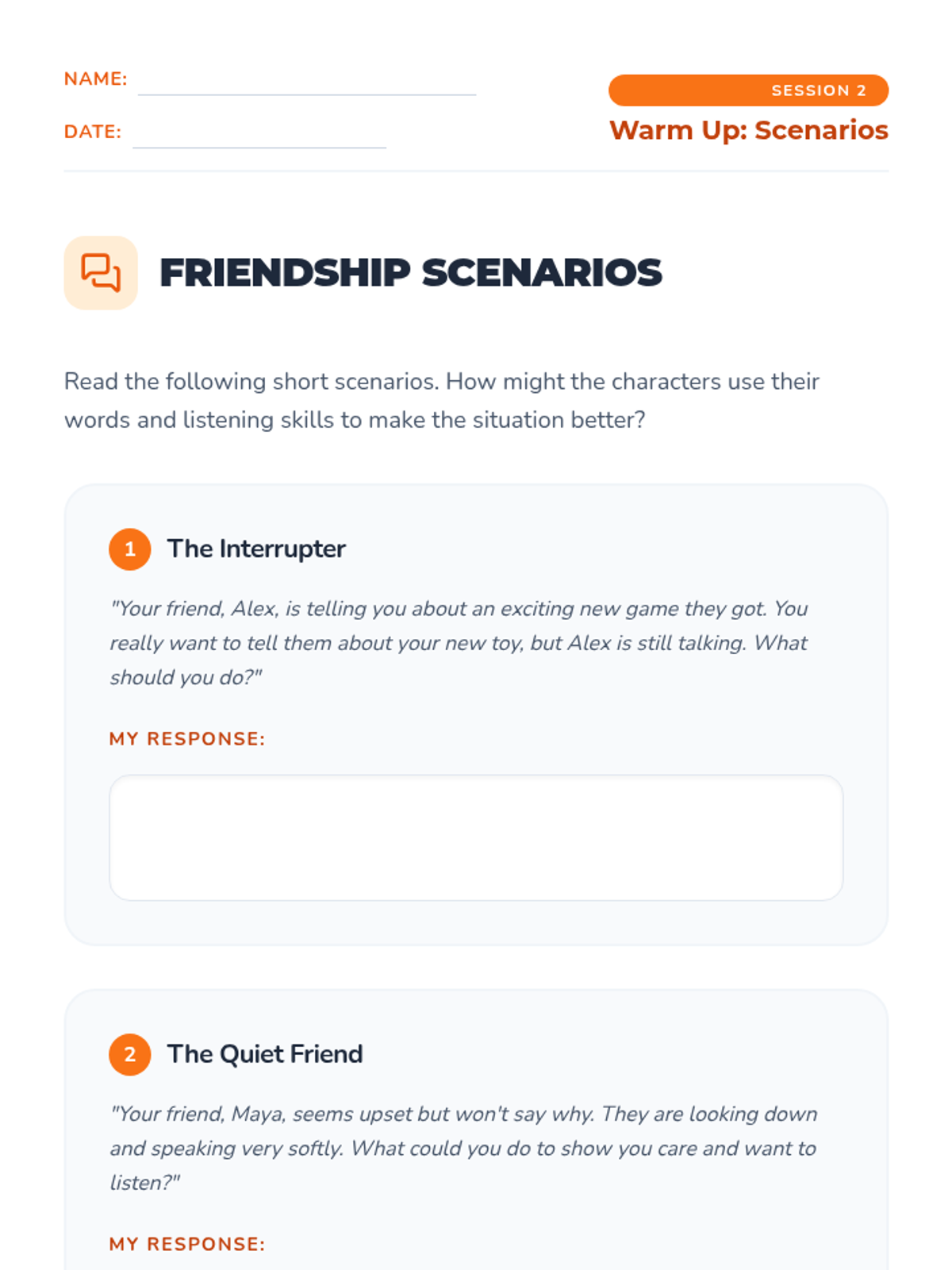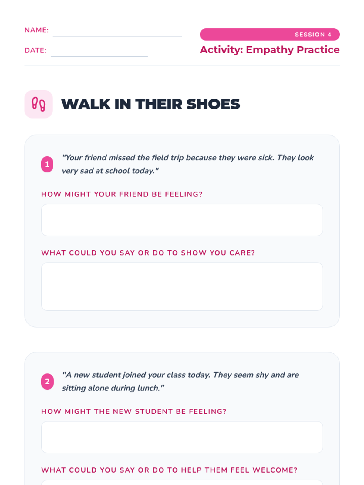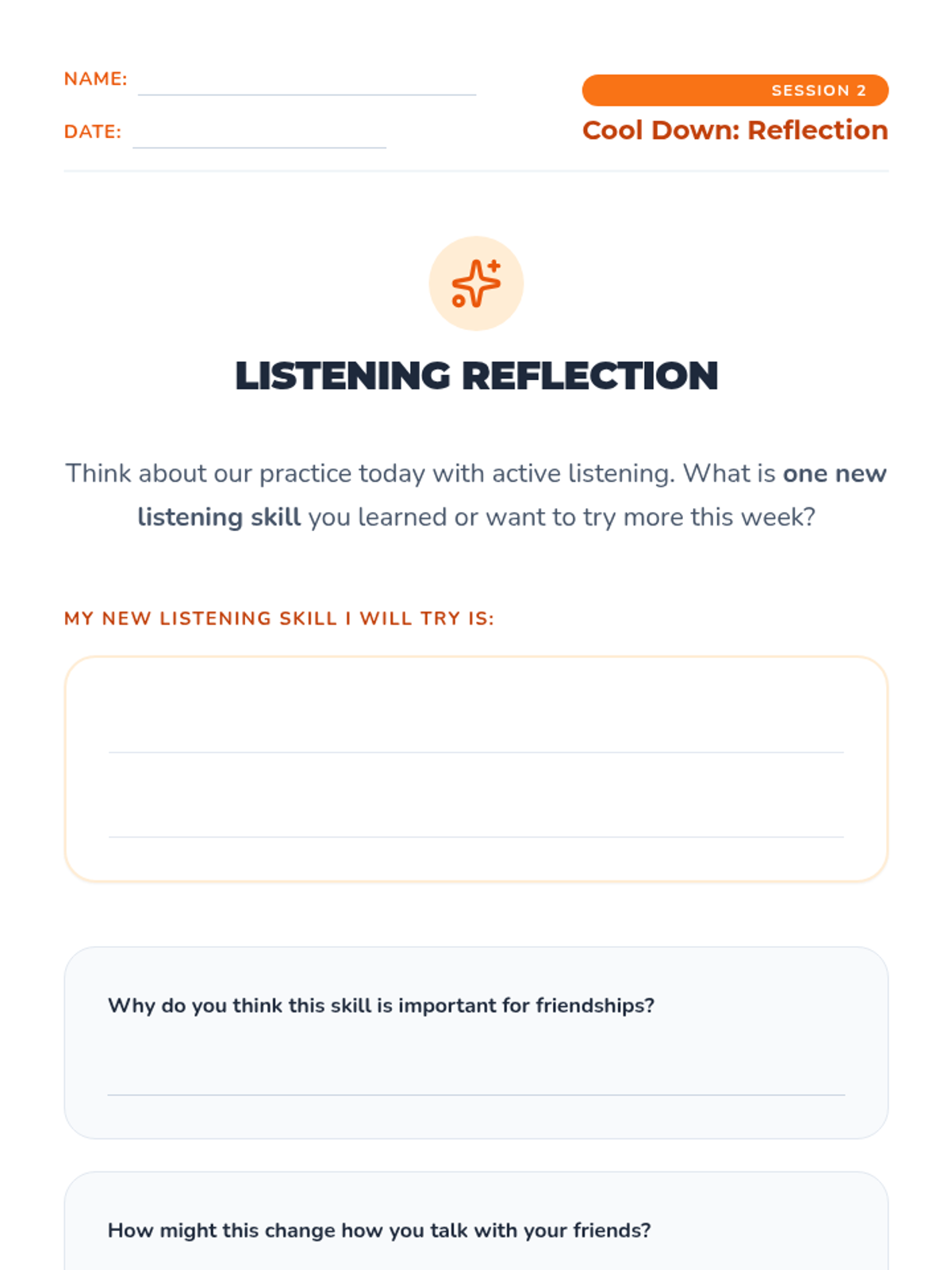 A six-week individual counseling series for 4th graders focused on building healthy friendships, effective communication, conflict resolution, and empathy.