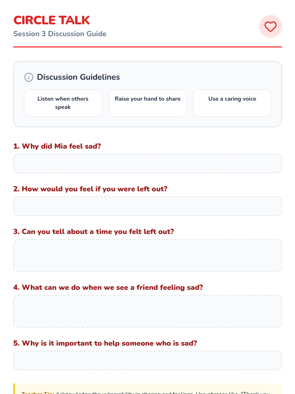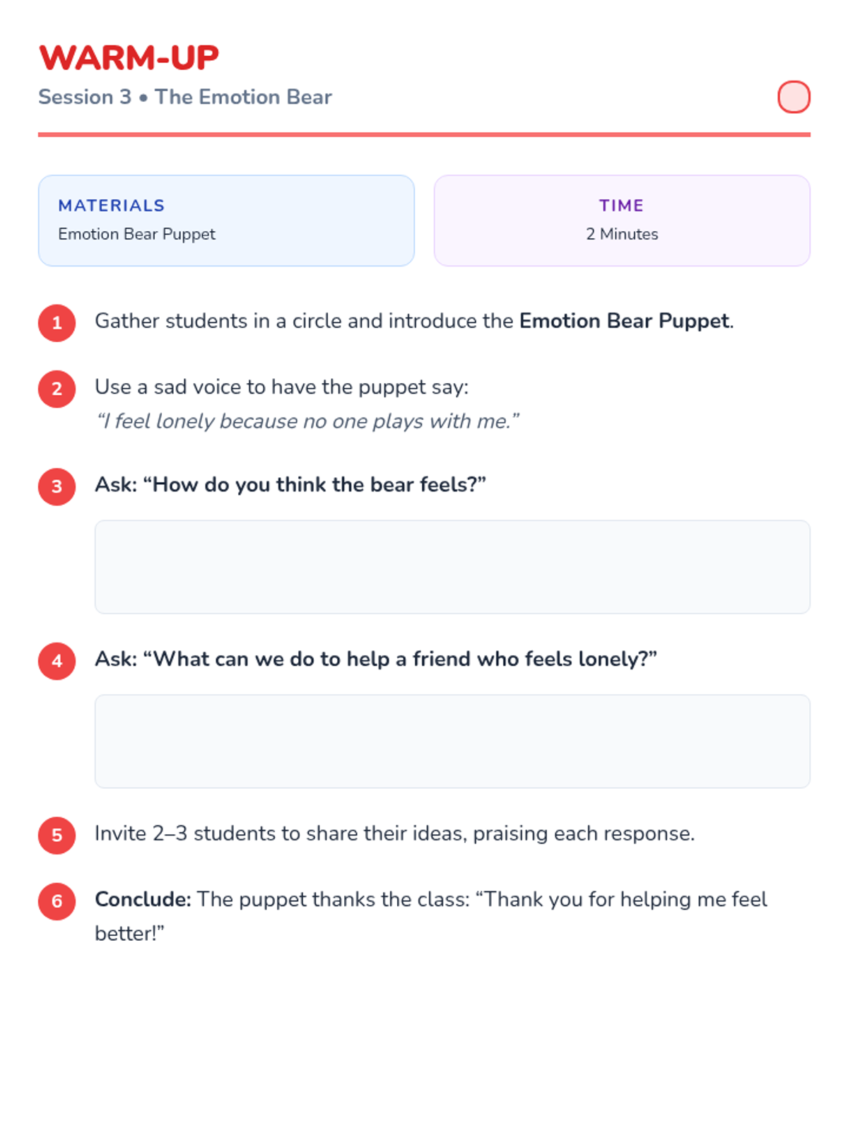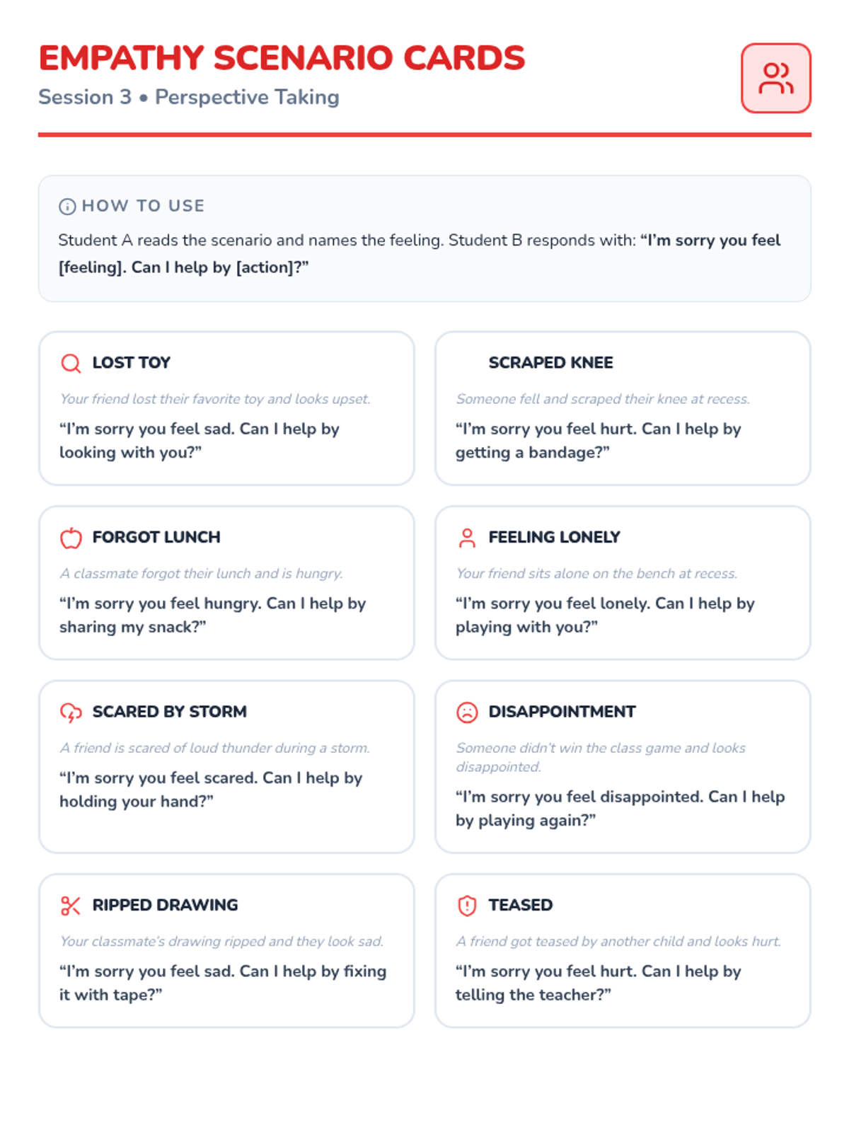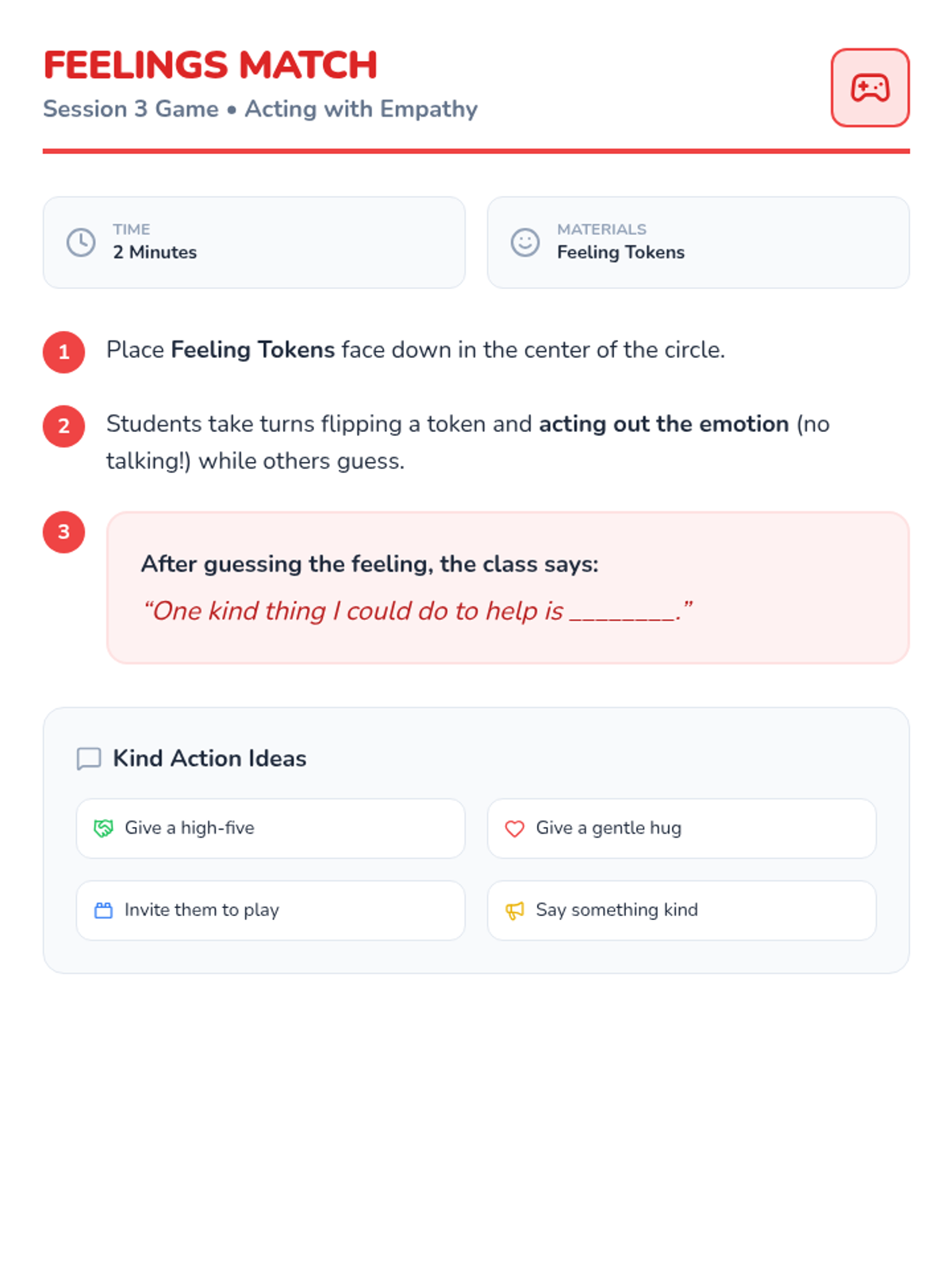 A 4-session kindergarten series designed to build foundational social-emotional skills including sharing, taking turns, empathy, and cooperation through interactive stories and games.