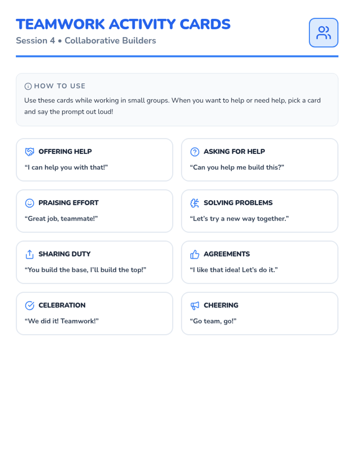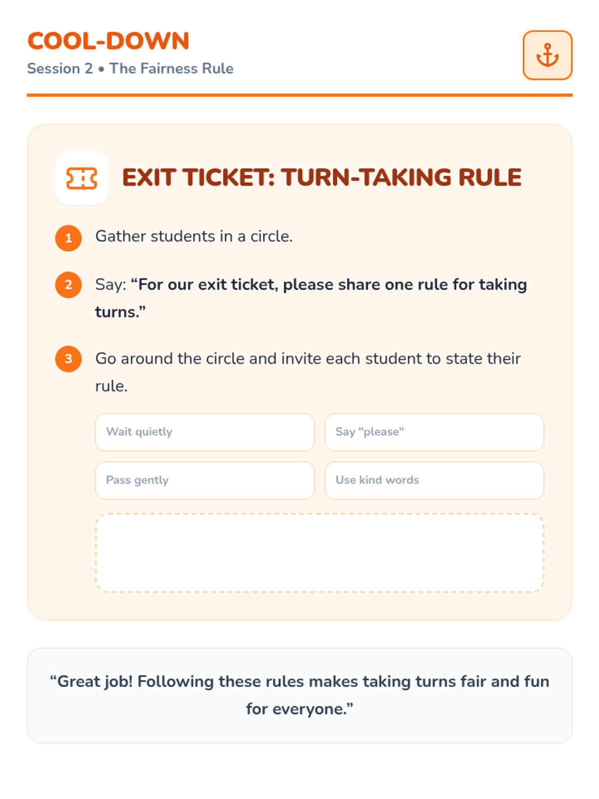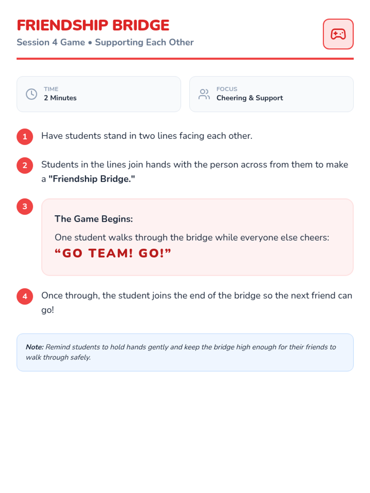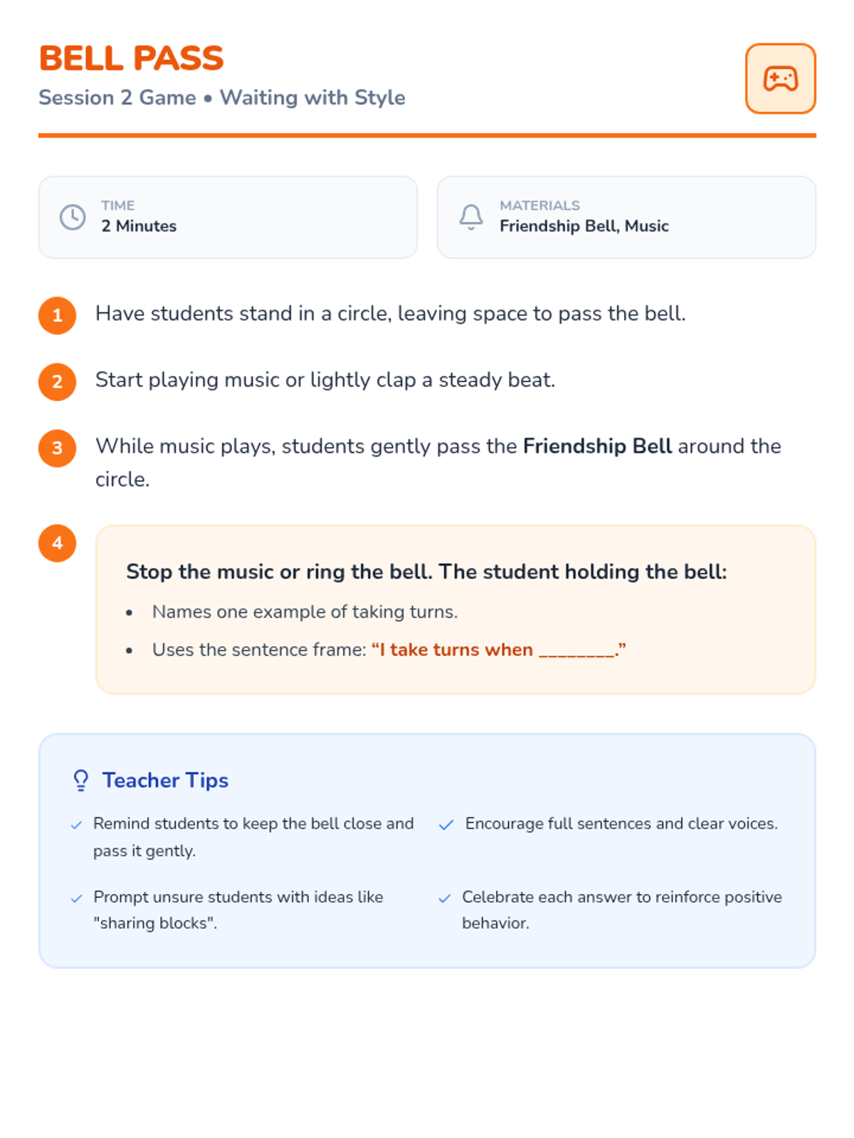 A series of resources designed to help students understand social expectations during games, including waiting, persistence, and sportsmanship.