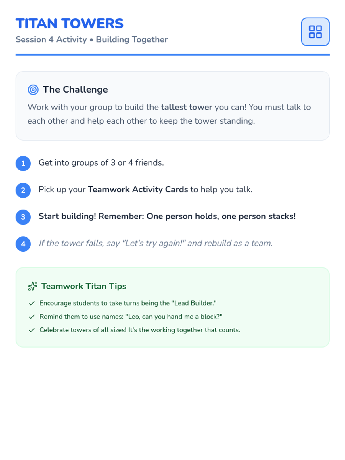 A 6-week intensive social skills curriculum designed for 15-minute daily small group sessions. Focuses on impulse control, communication, and empathy through a hero-themed academy framework.