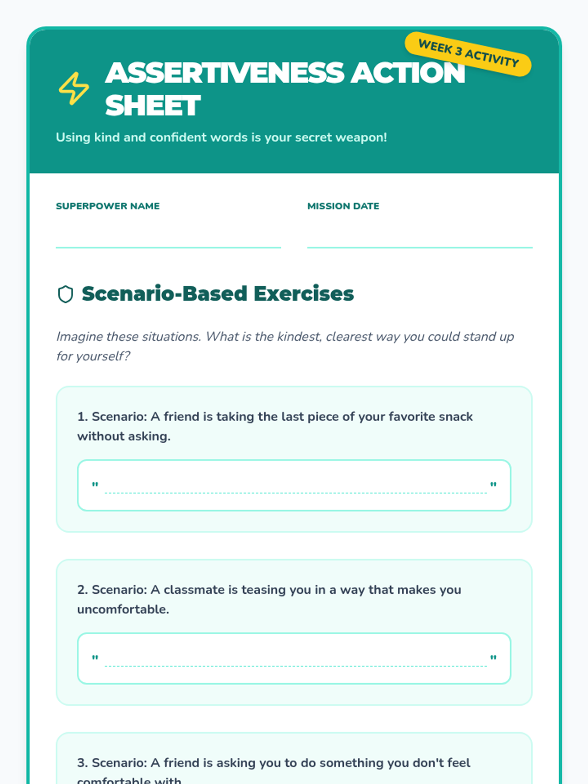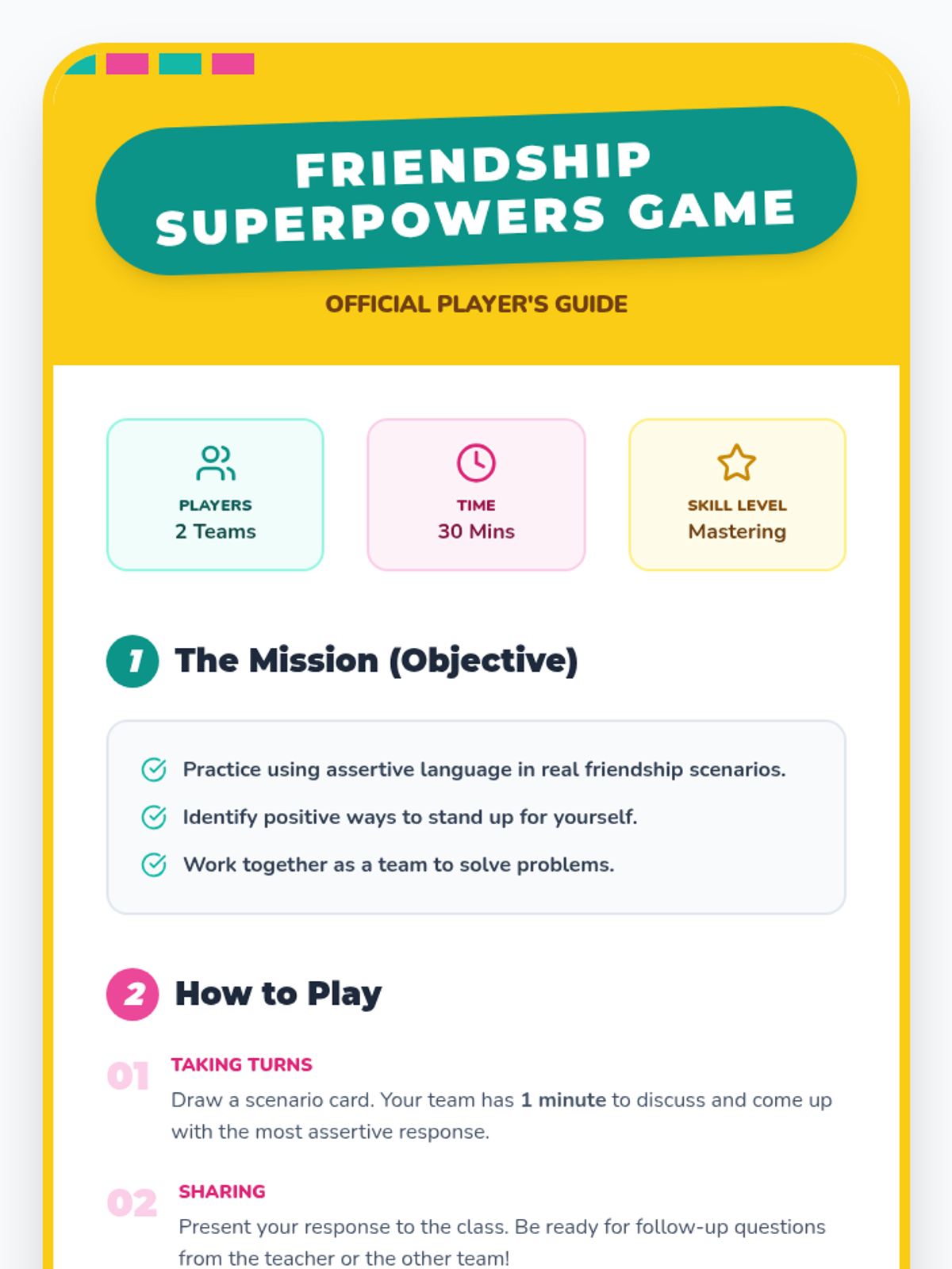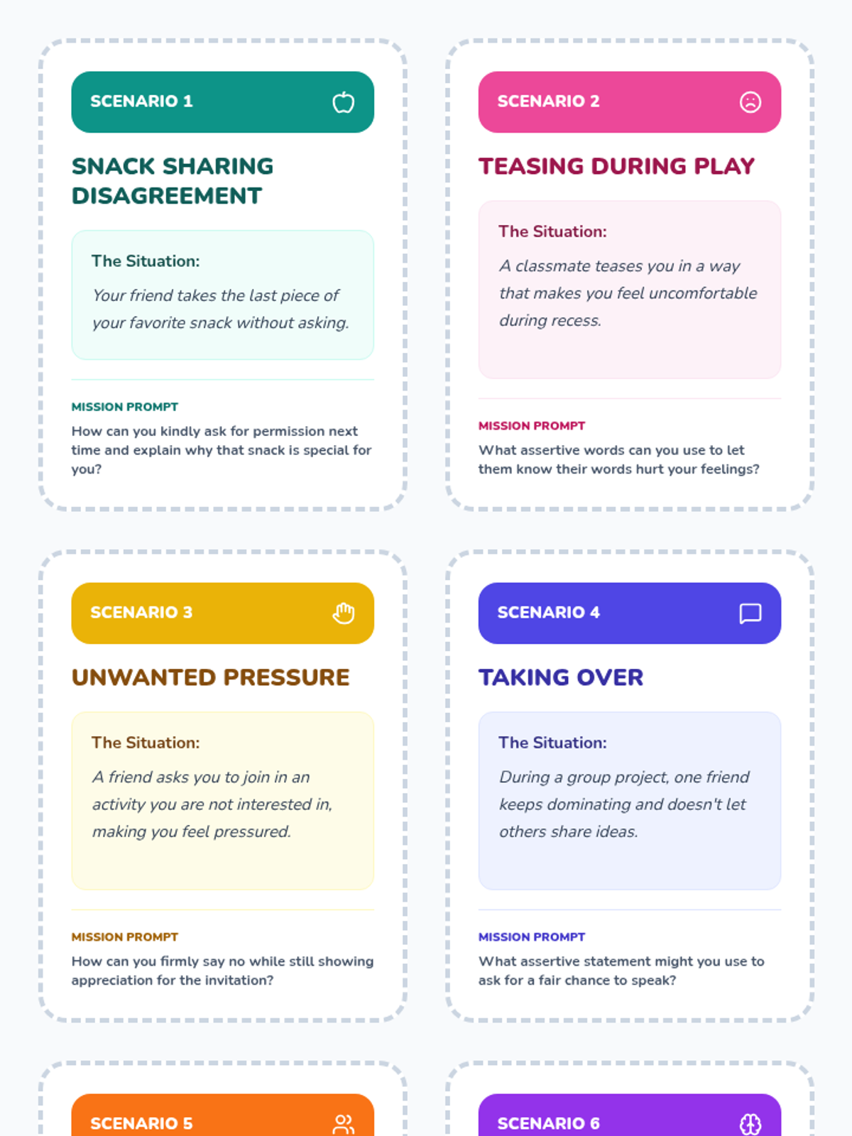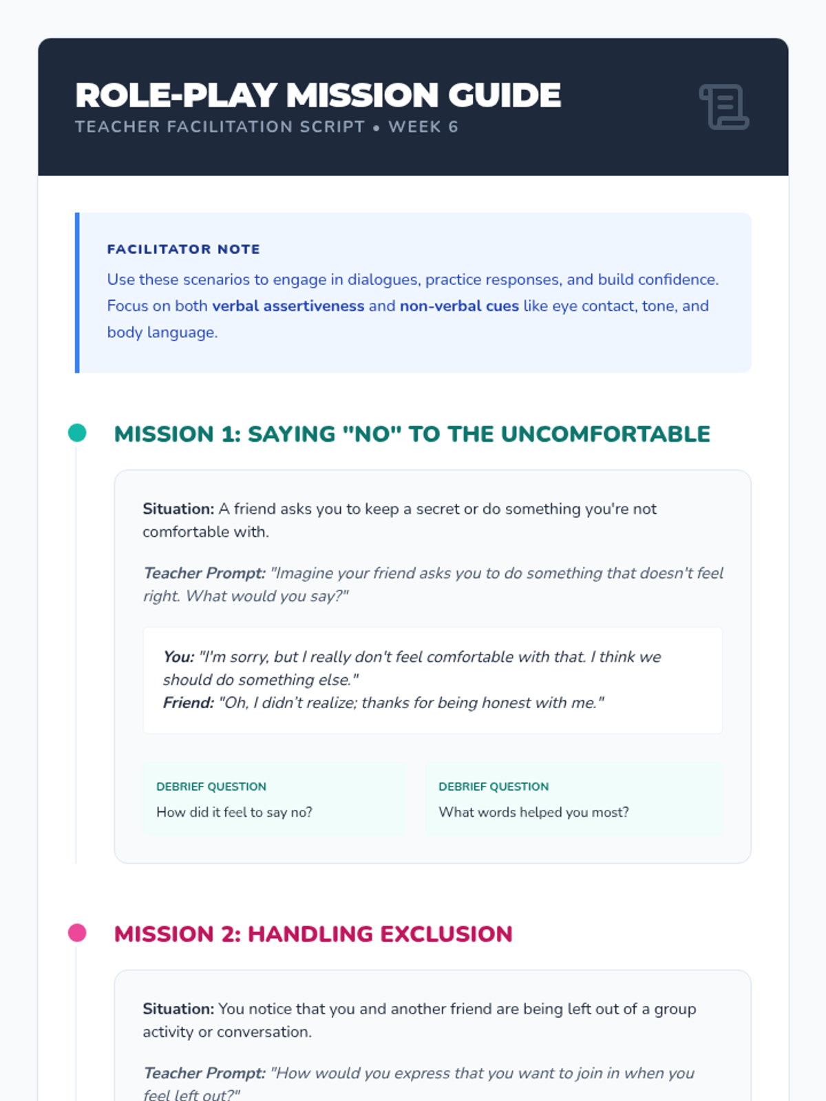 An 8-session series for 4th-grade girls focusing on assertiveness, communication, and standing up for oneself in friendships through role-play, games, and discussions.