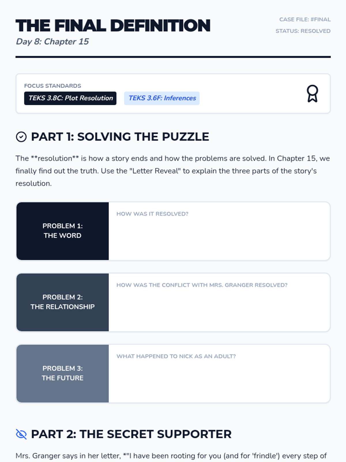 A unit focused on building empathy, character analysis, and creative language use through investigative mysteries and literary deep-dives into core human values.