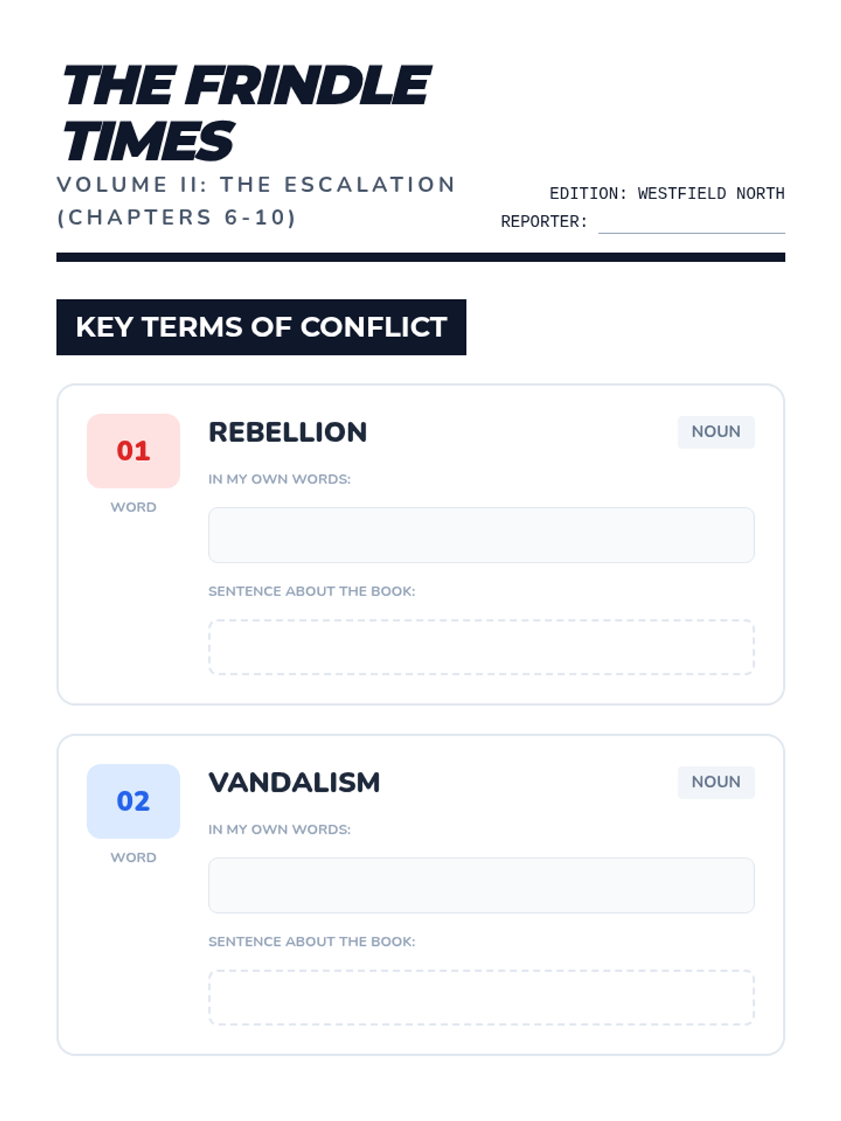 A three-week comprehensive book club for 'Frindle' by Andrew Clements, focusing on the power of language, character evolution, and the skills of summarizing and synthesizing. Students explore how a simple idea can spark a school-wide movement while building their vocabulary and analytical thinking.