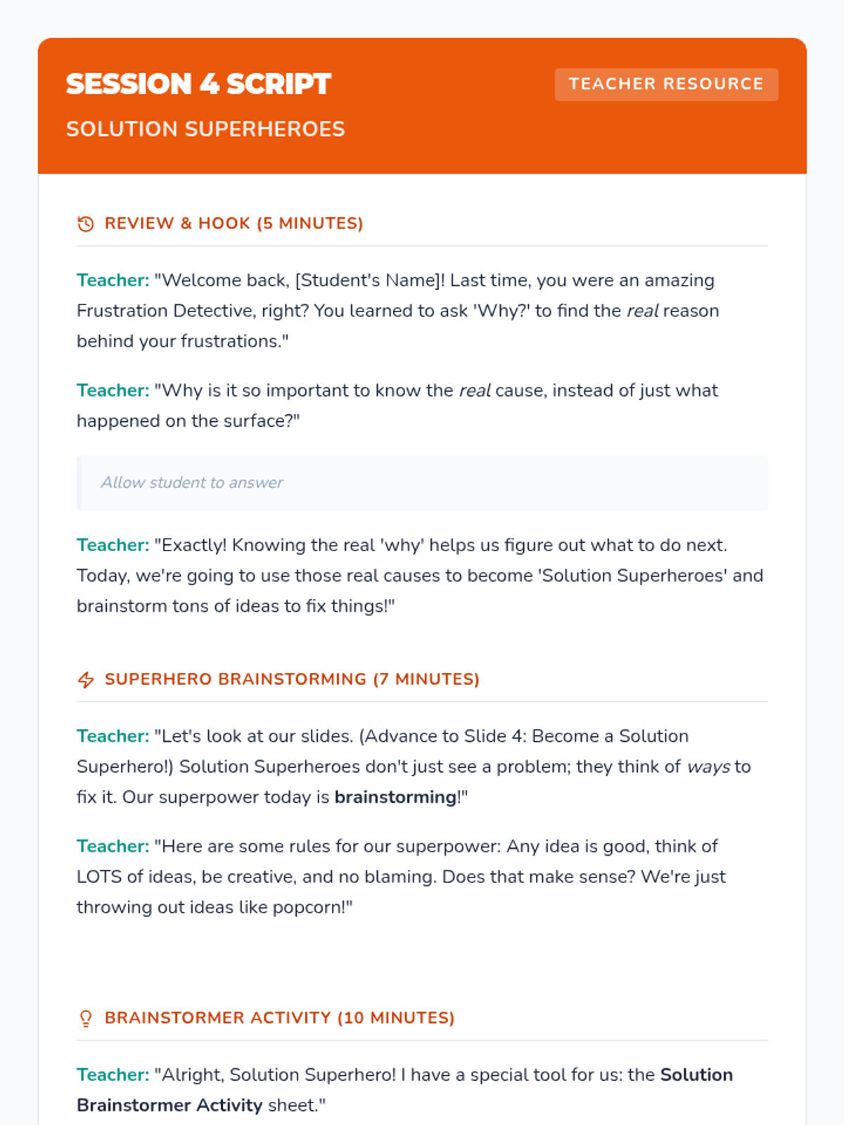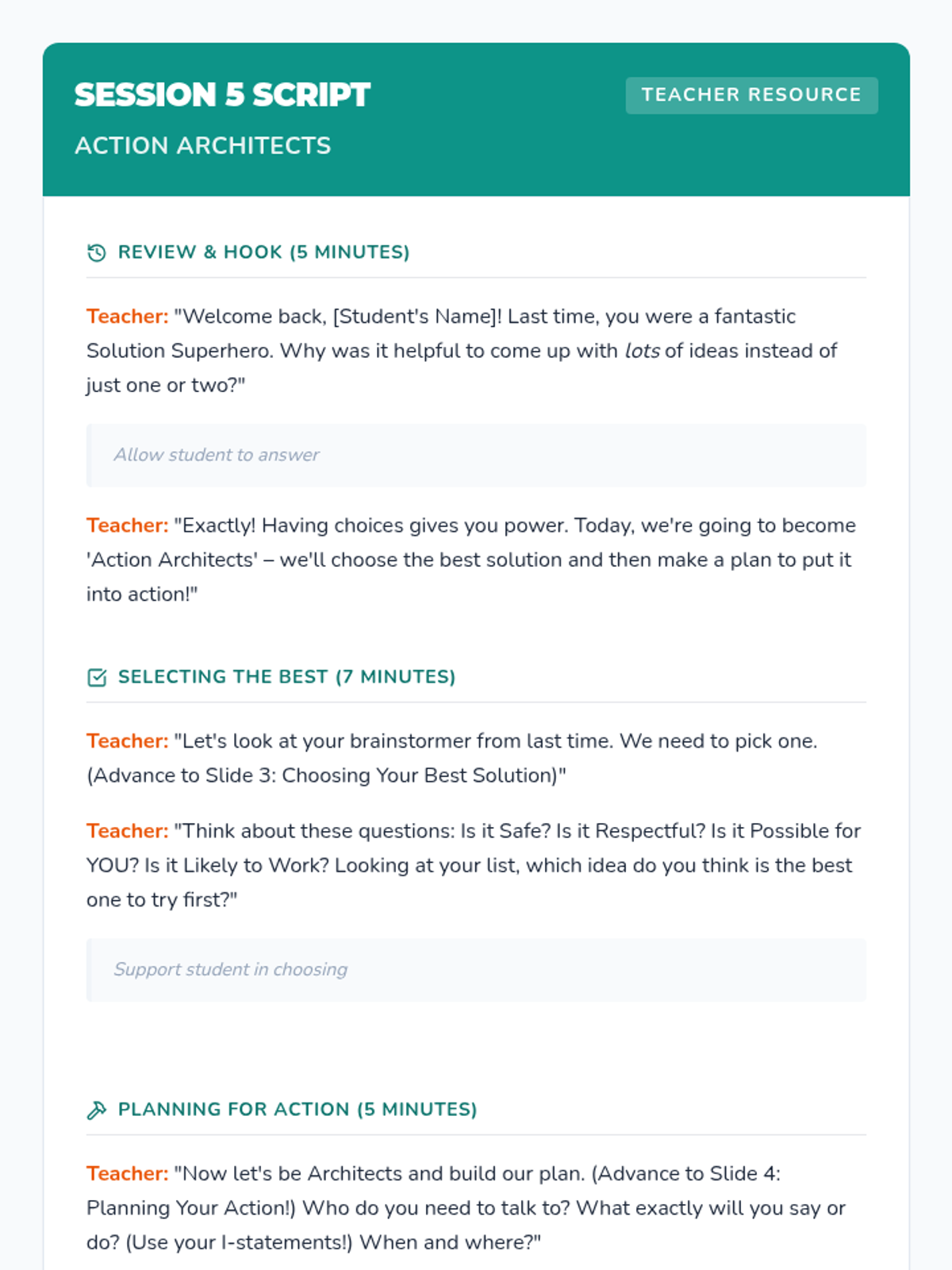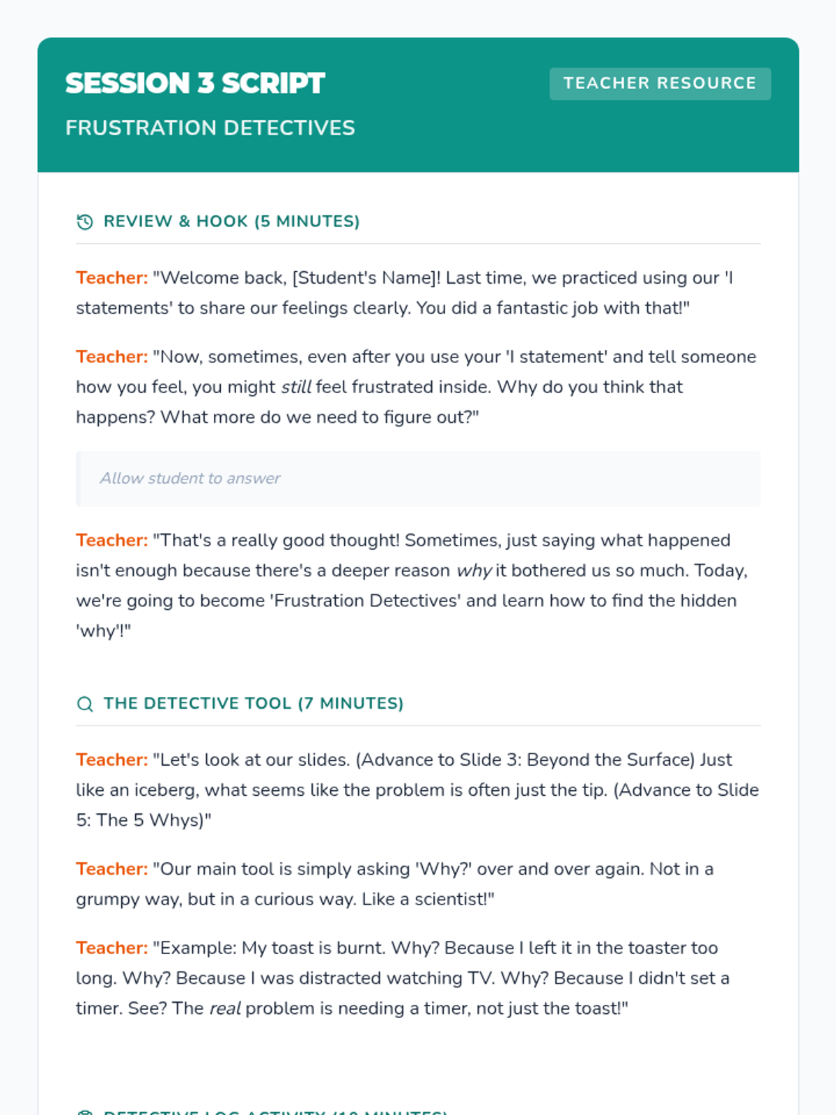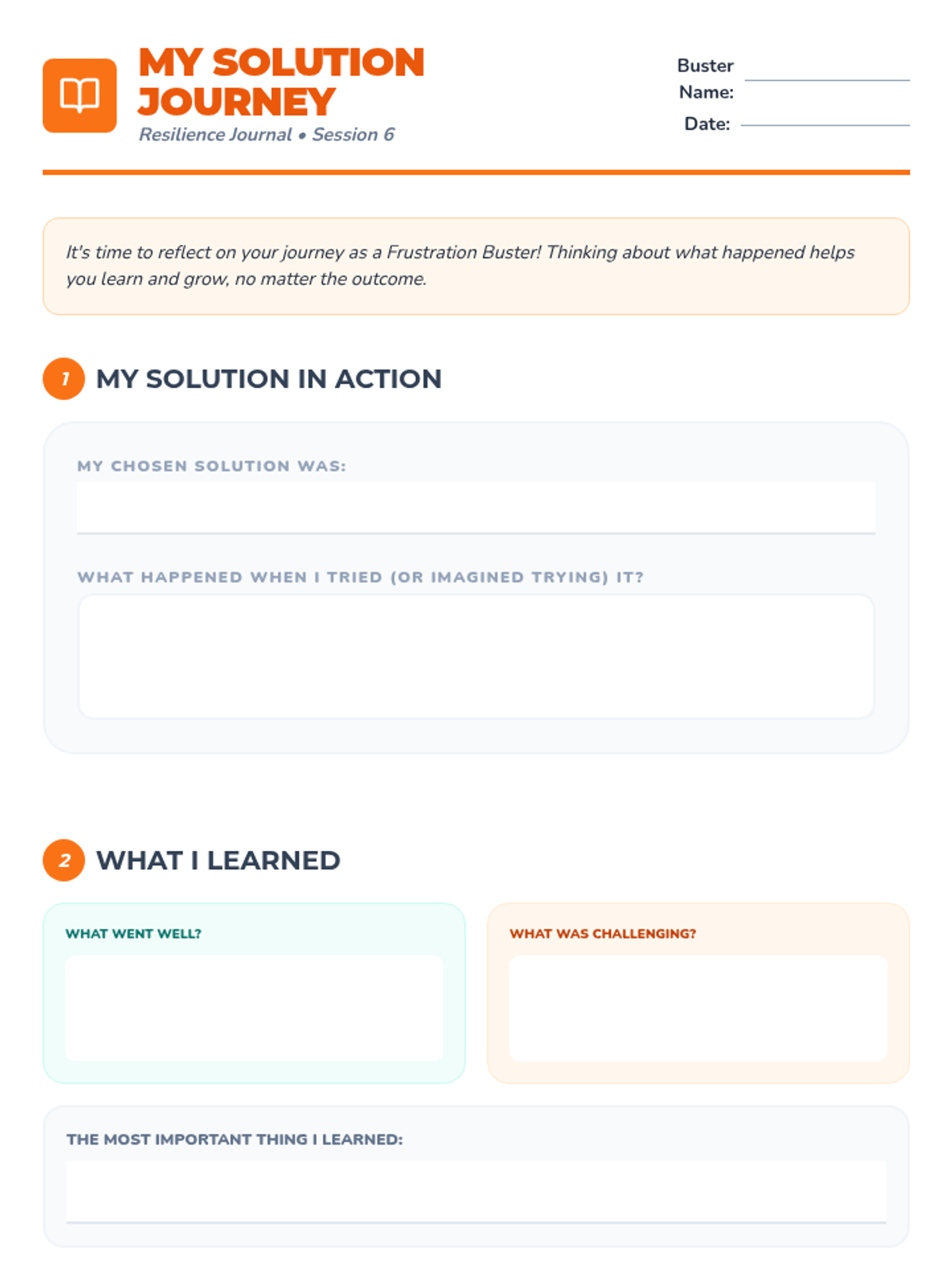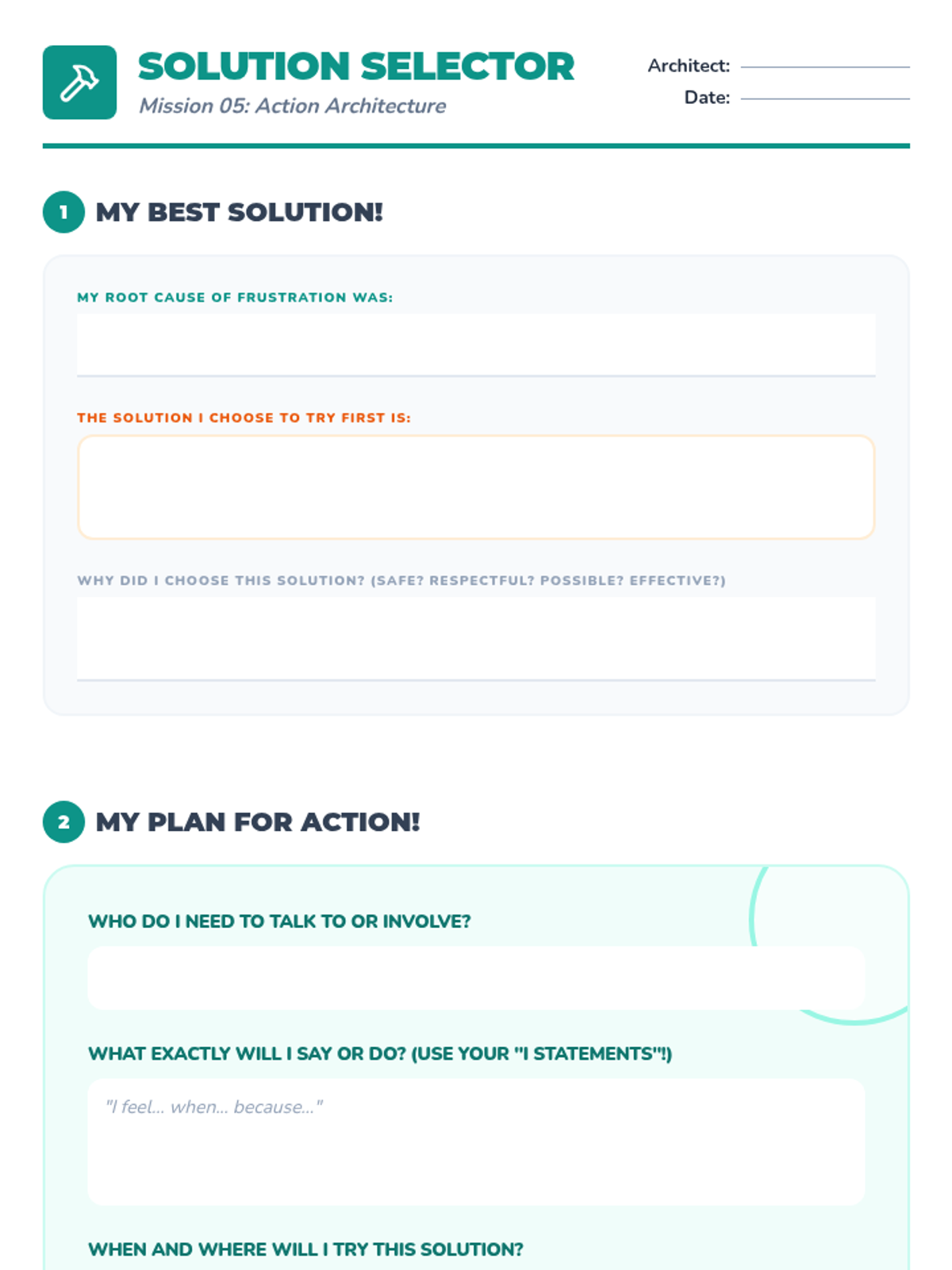 A 6-week Tier 3 intervention for 4th graders to develop emotional regulation and problem-solving skills to manage frustration. students learn to recognize triggers, express feelings with I-statements, and implement action plans.