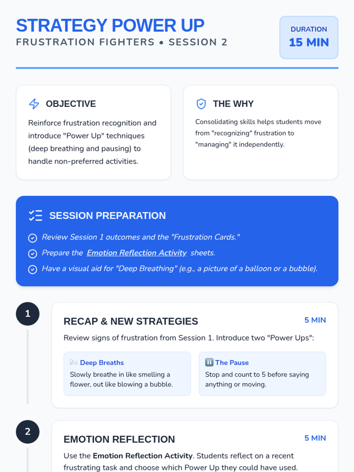 A two-session program designed for elementary students, particularly those with autism, to help them identify frustration triggers and develop coping strategies for non-preferred activities.