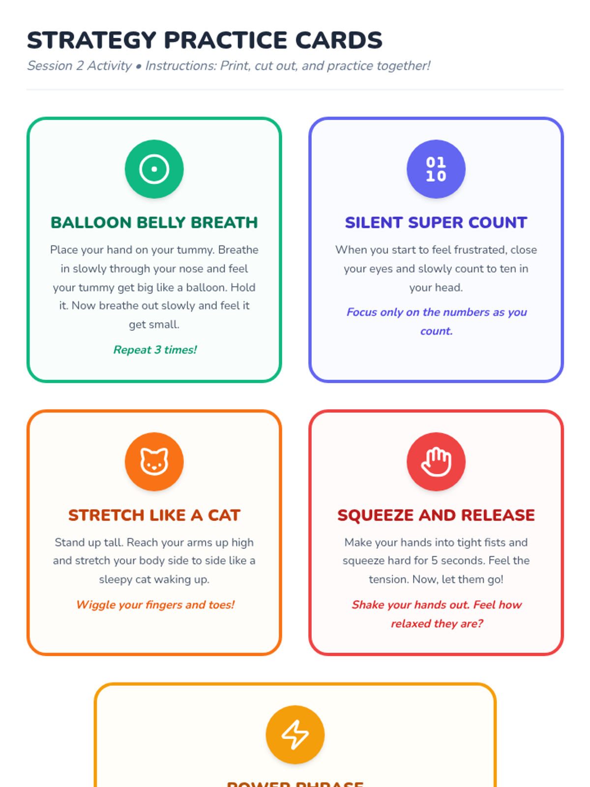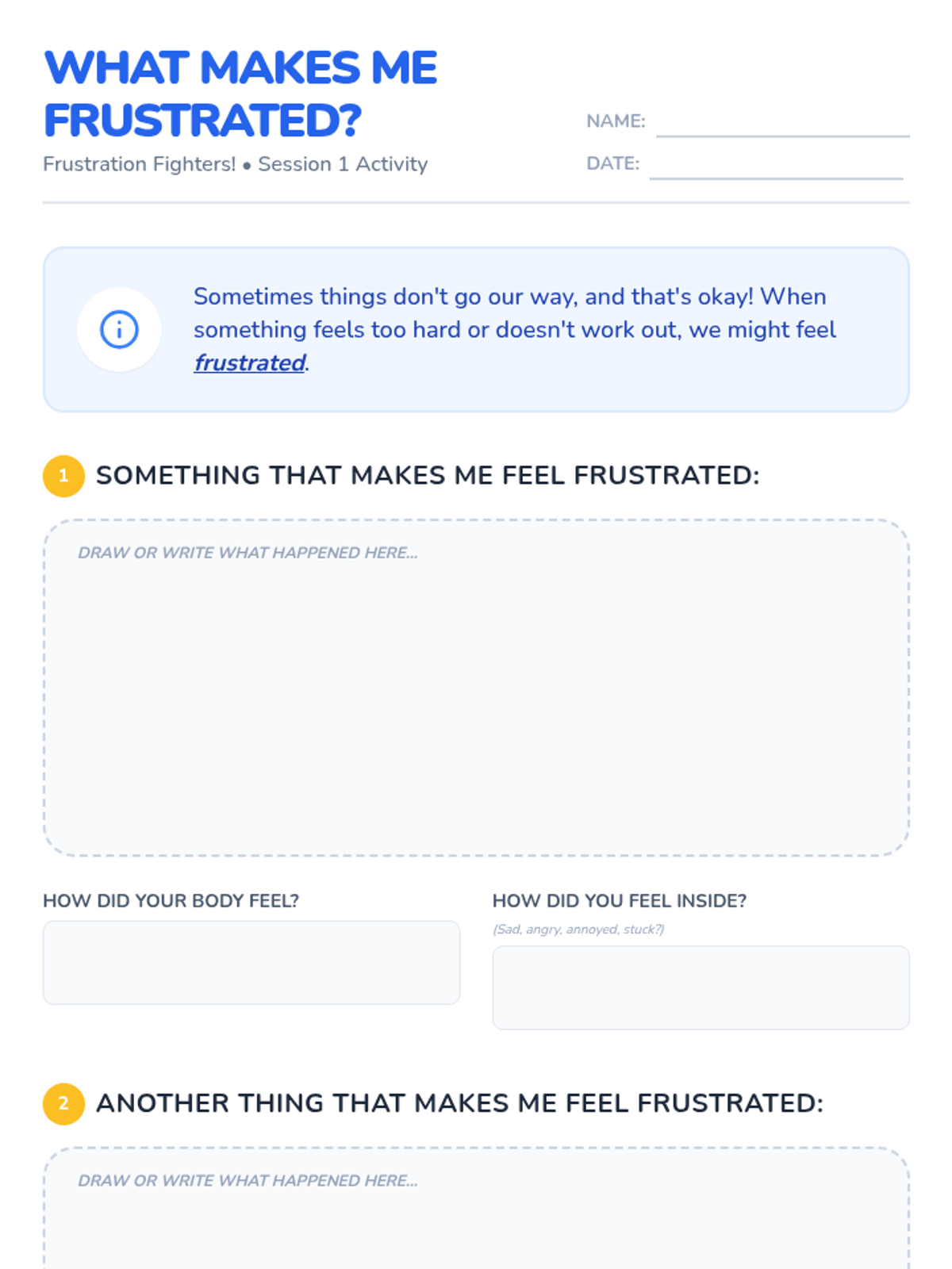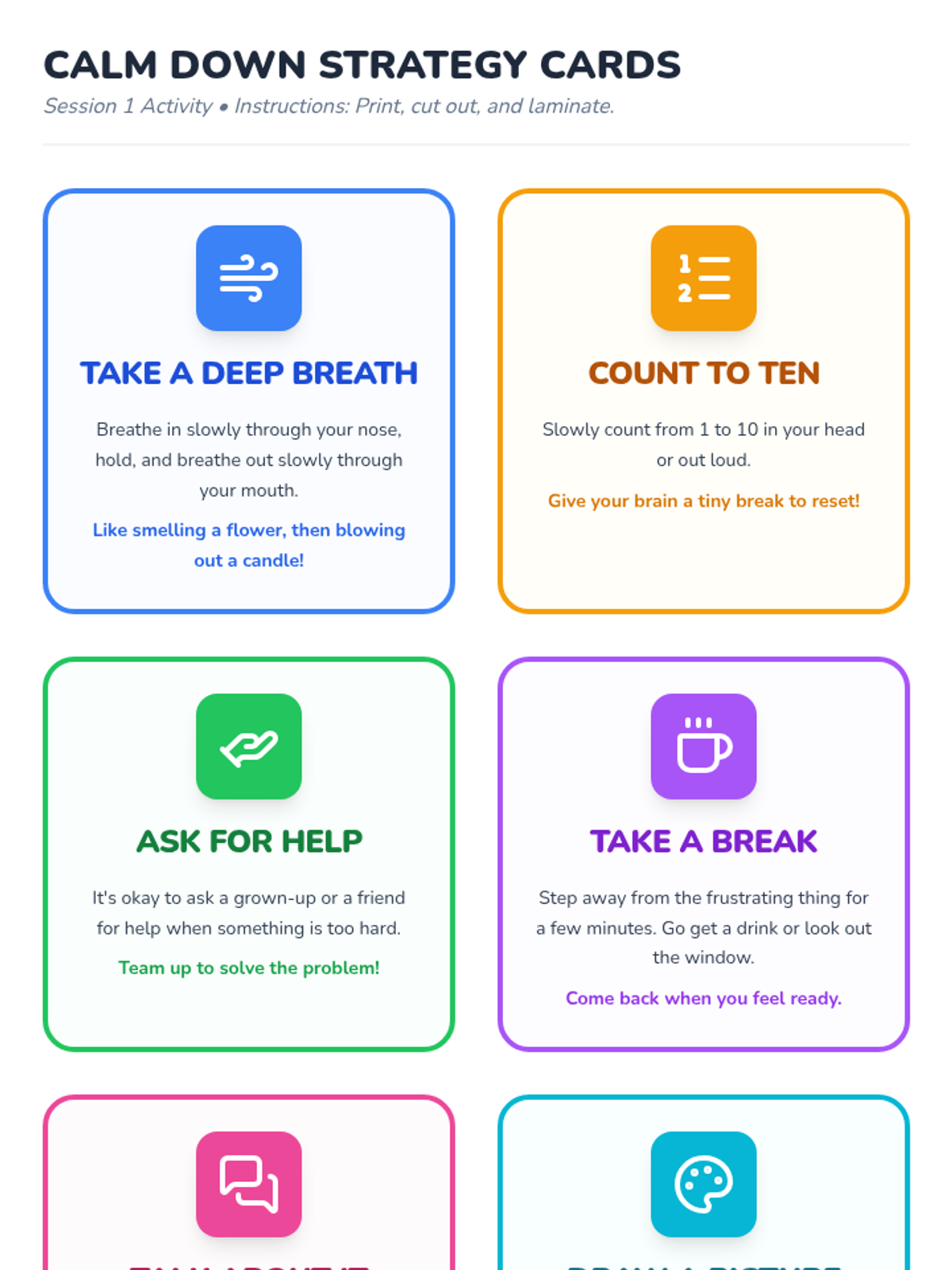 A two-session Tier 3 intervention for 2nd graders to identify frustration triggers and build a toolkit of effective calming strategies.
