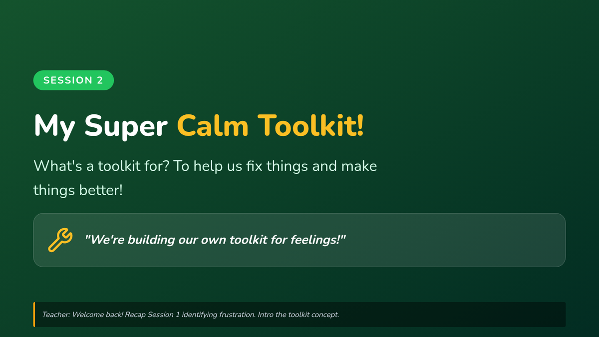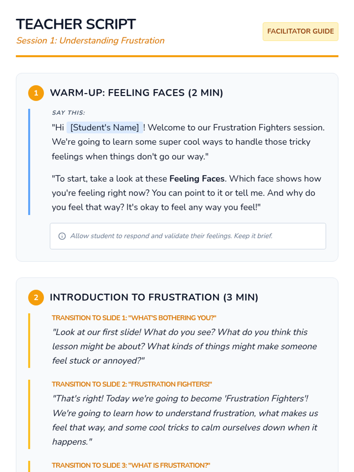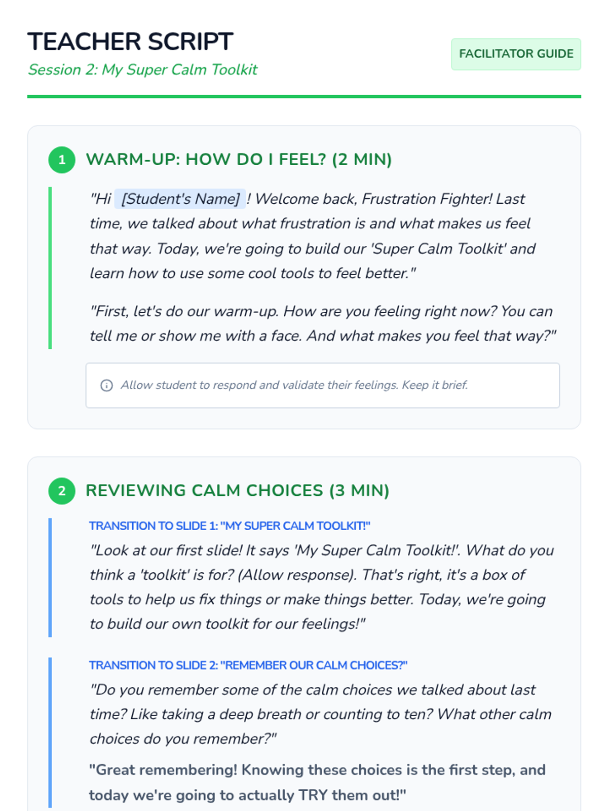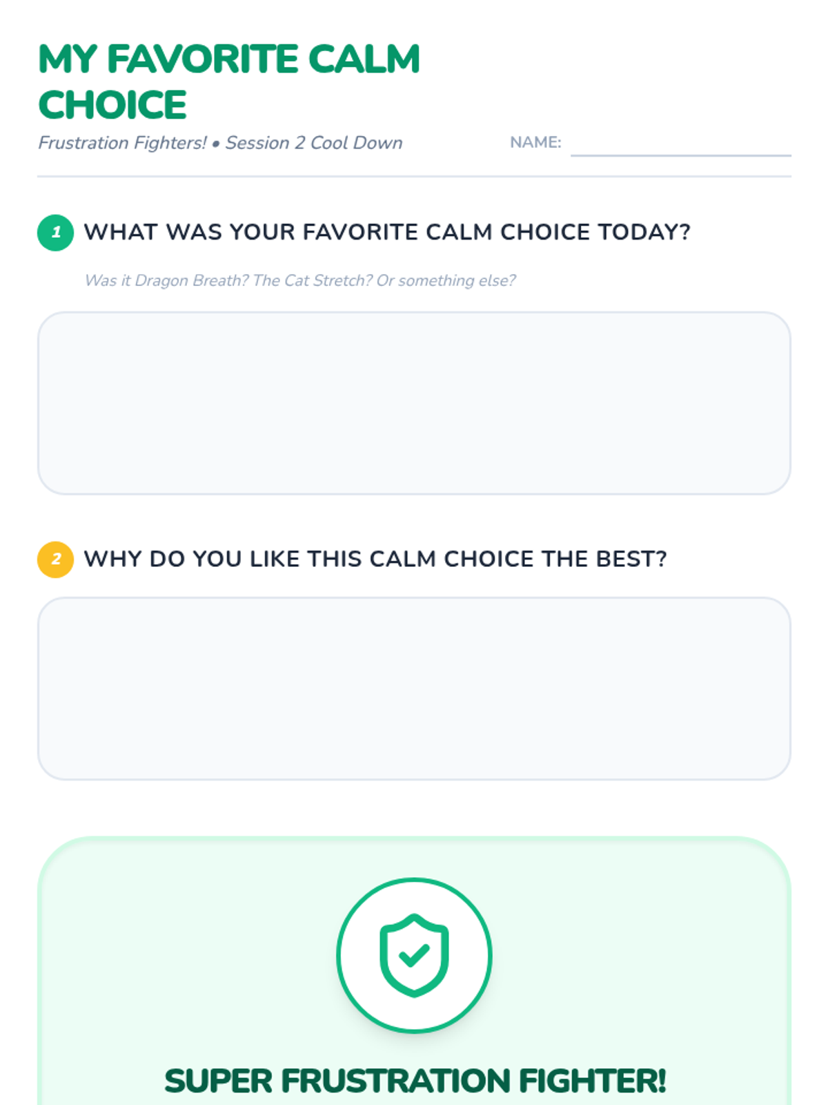 A two-session Tier 3 intervention for 2nd graders to identify frustration triggers and build a toolkit of effective calming strategies.
