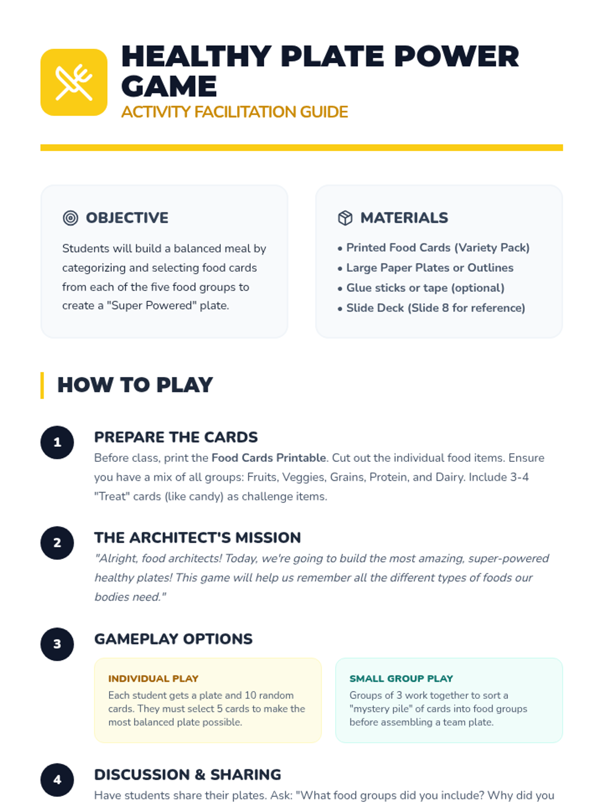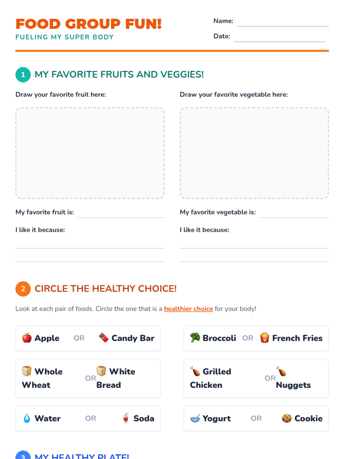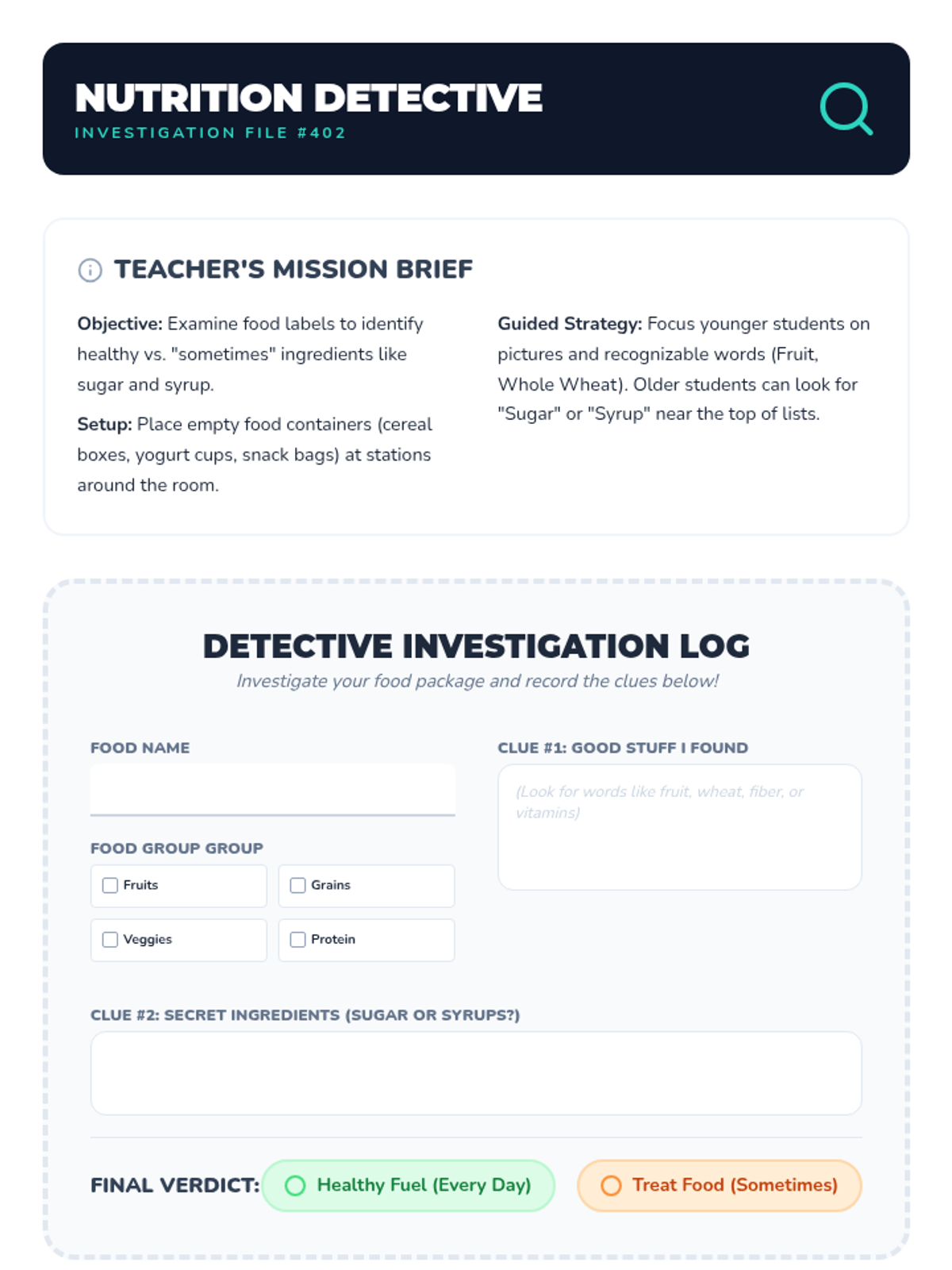 A week-long nutrition unit for K-3rd graders focusing on the five food groups, balanced meals, and the importance of healthy fuel for the body and mind.