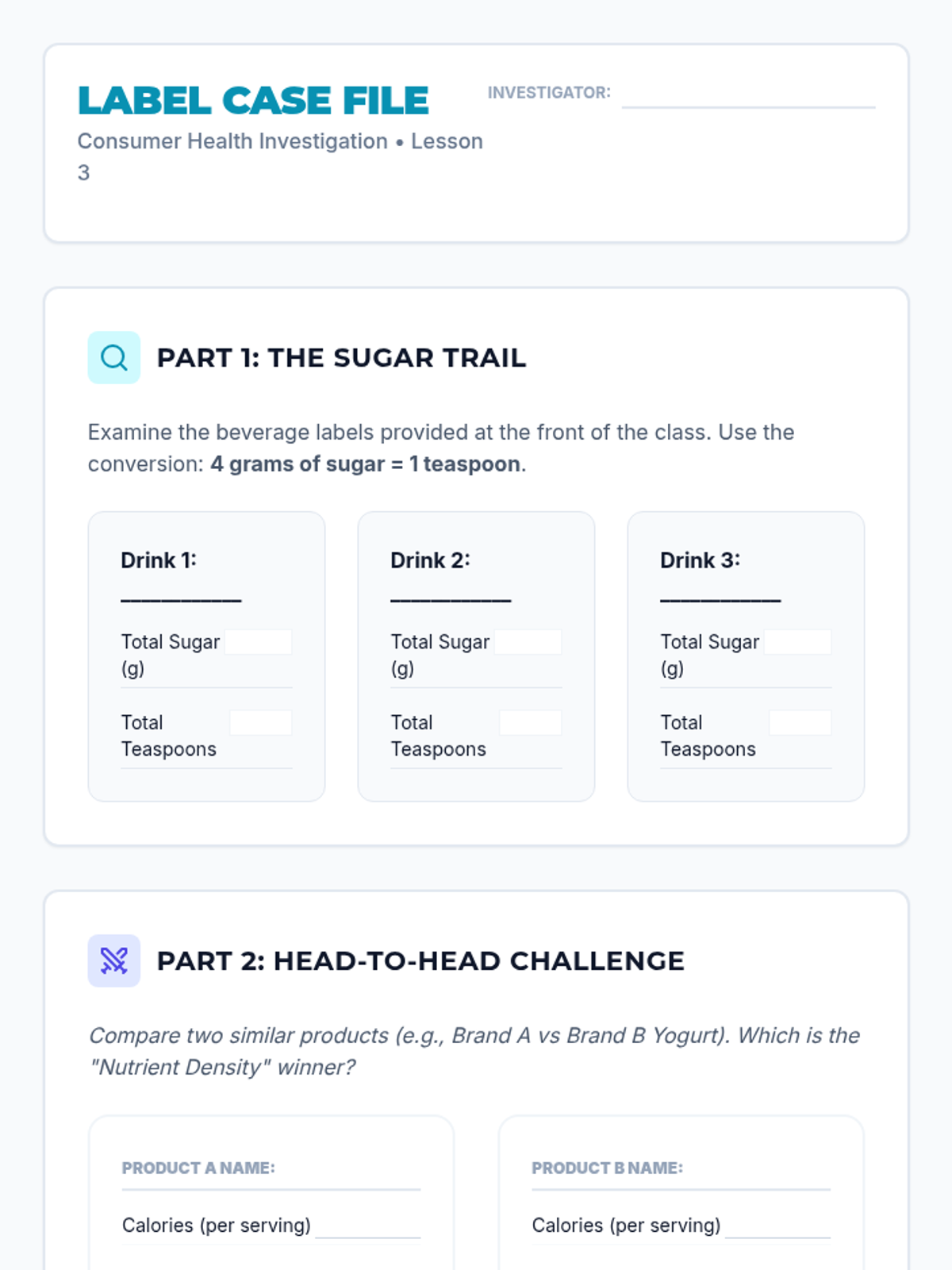 A 2-day condensed unit for 10th-grade sports nutrition focused on identifying industry "Red Flags" and expert consensus for supplement safety. Students complete a digital Label Hunt and a final synthesis assessment to demonstrate mastery.