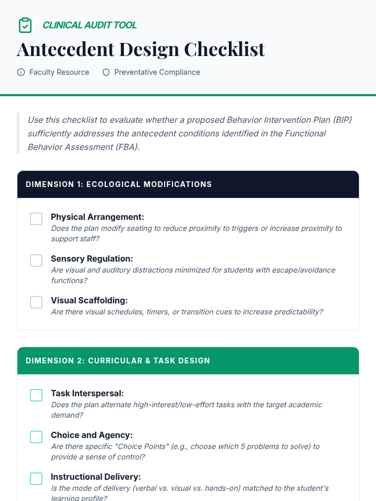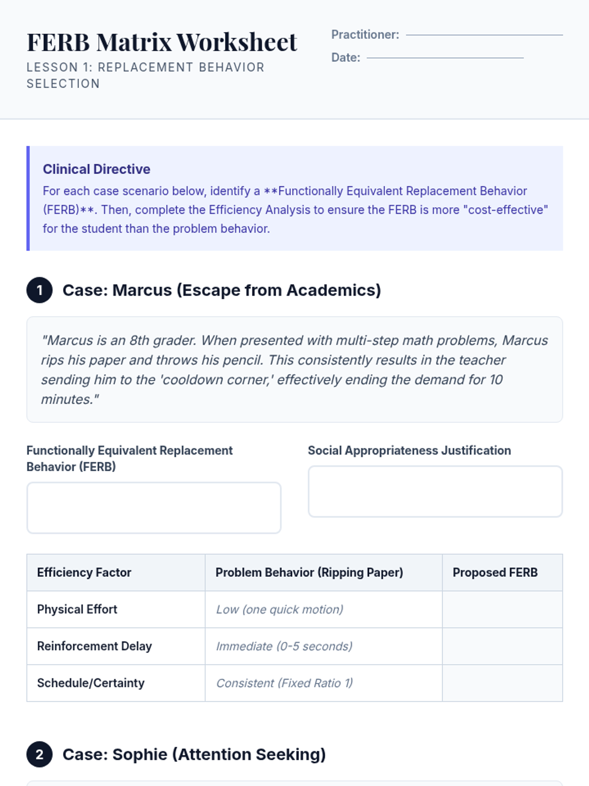 A graduate-level sequence focused on the transition from functional behavior assessment to the design of evidence-based, function-matched Behavior Intervention Plans (BIPs). Students will master the design of replacement behaviors, antecedent modifications, reinforcement schedules, and extinction protocols while ensuring clinical and legal compliance.