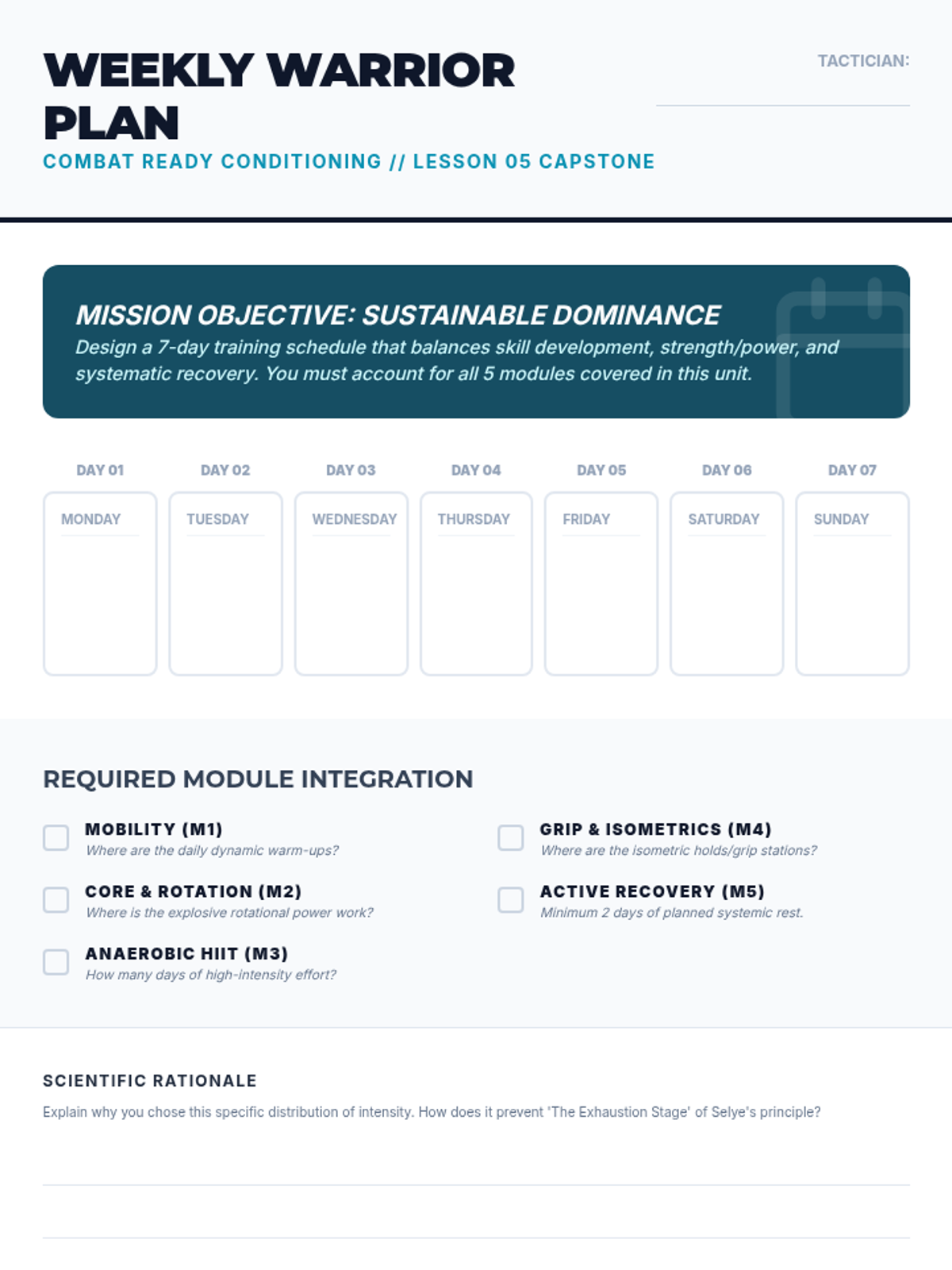 A comprehensive physical conditioning unit for martial arts, applying kinesiology principles to improve performance, power, and longevity in combat sports.