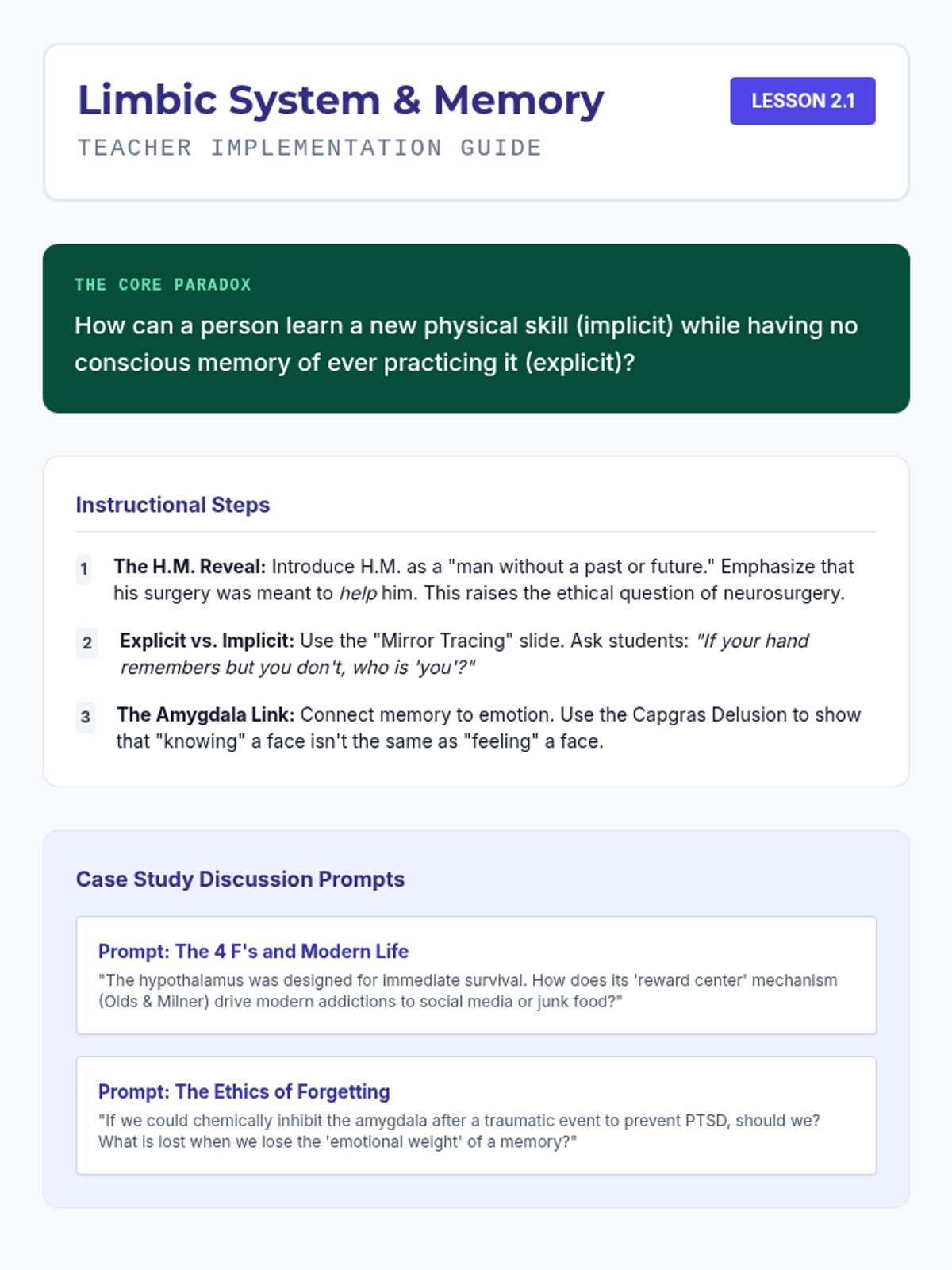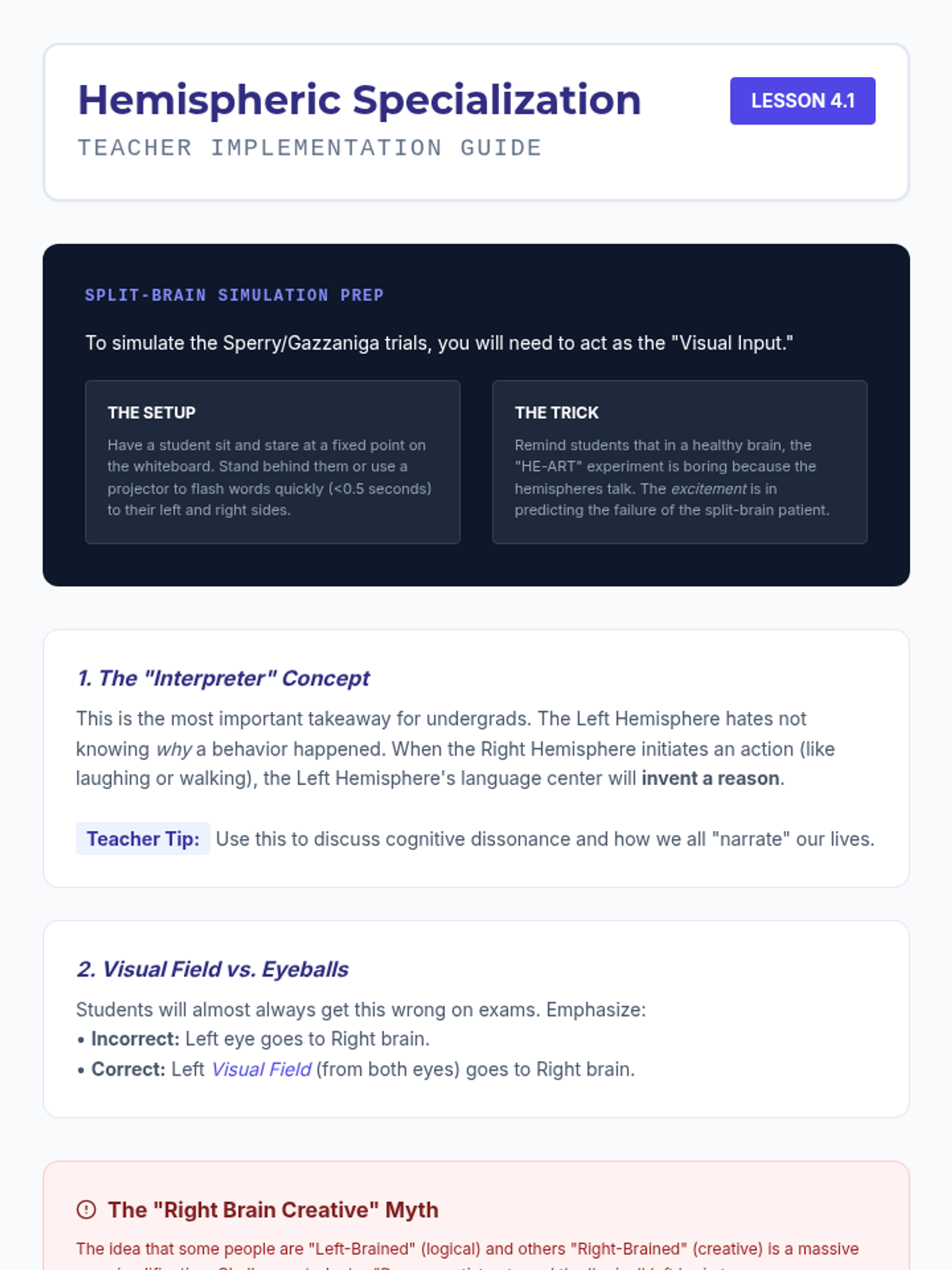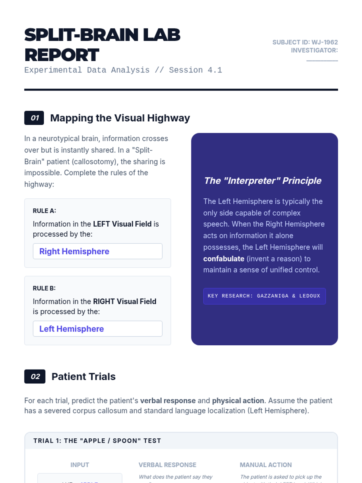 This undergraduate psychology sequence explores the structural organization of the human brain, mapping specific behaviors to distinct regions from the primitive hindbrain to the complex cerebral cortex. Students analyze clinical cases like Phineas Gage and H.M. to understand localization of function and neuroplasticity.