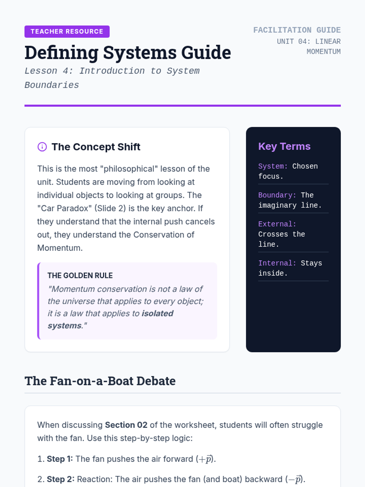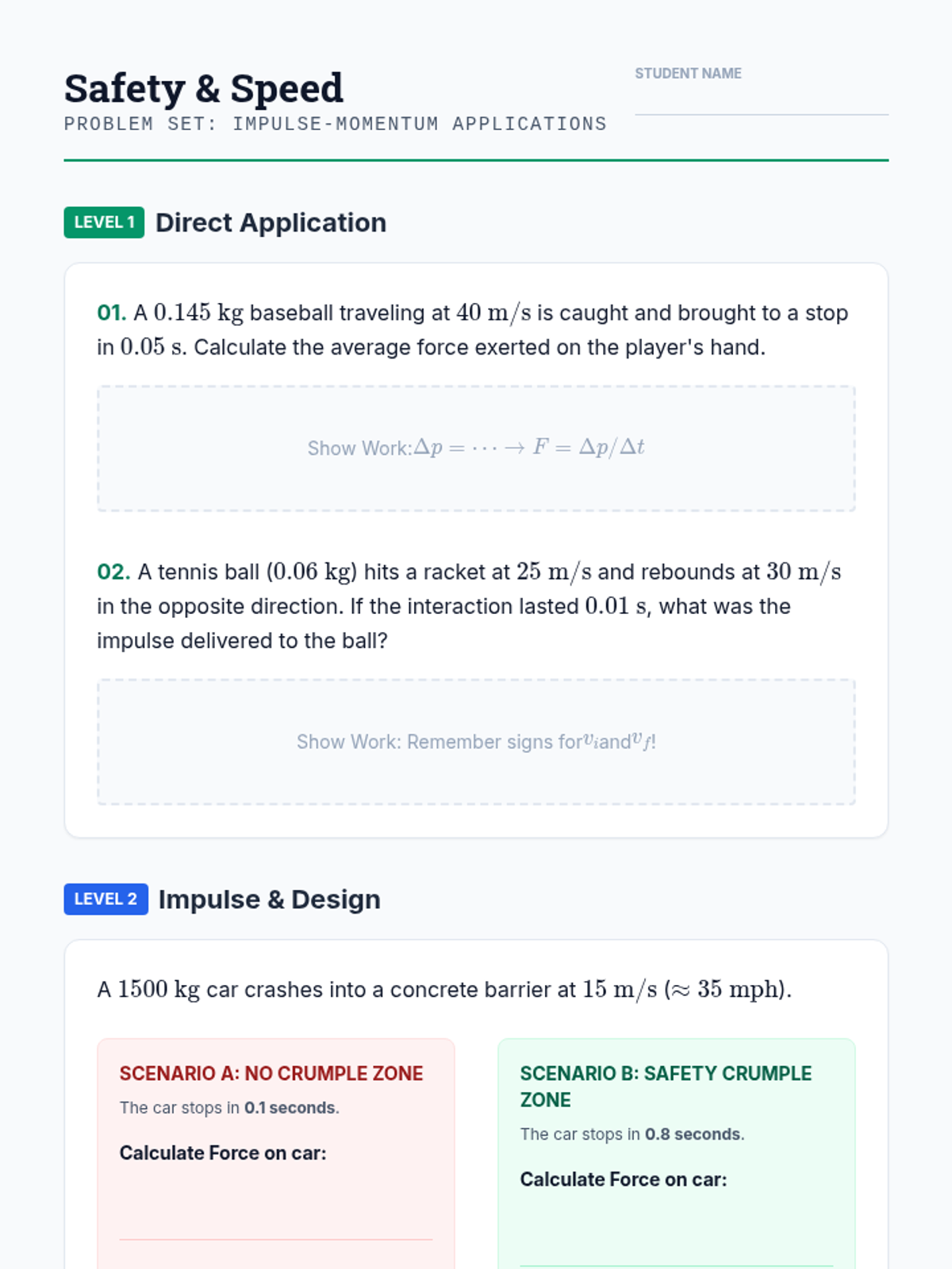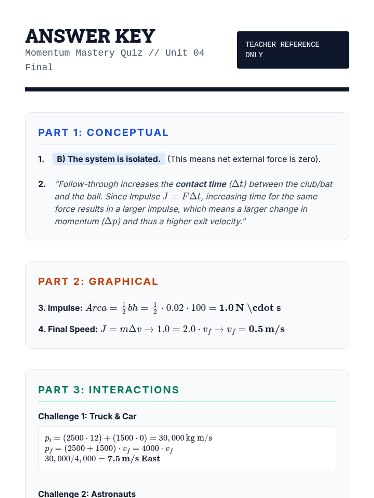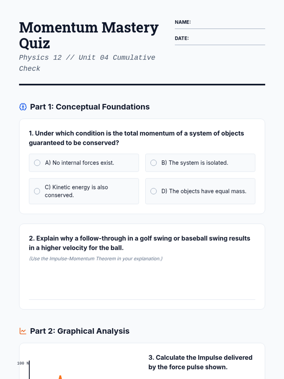 A mastery-based sequence for 12th-grade physics students focusing on the mathematical derivation and application of linear momentum, impulse-momentum theorem, and conservation principles in one-dimensional systems.