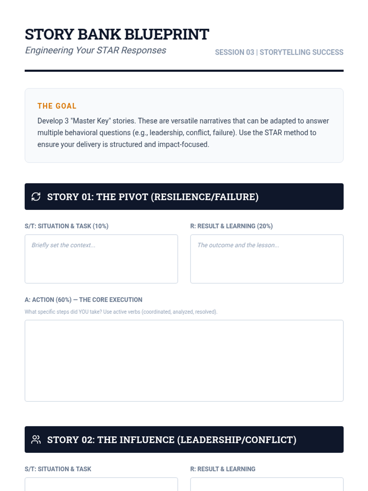 A comprehensive role-playing experience designed for adult learners and college students to master the art of networking and professional interviewing. The sequence uses a 'circuit' theme, guiding students through high-stakes scenarios and peer feedback loops.