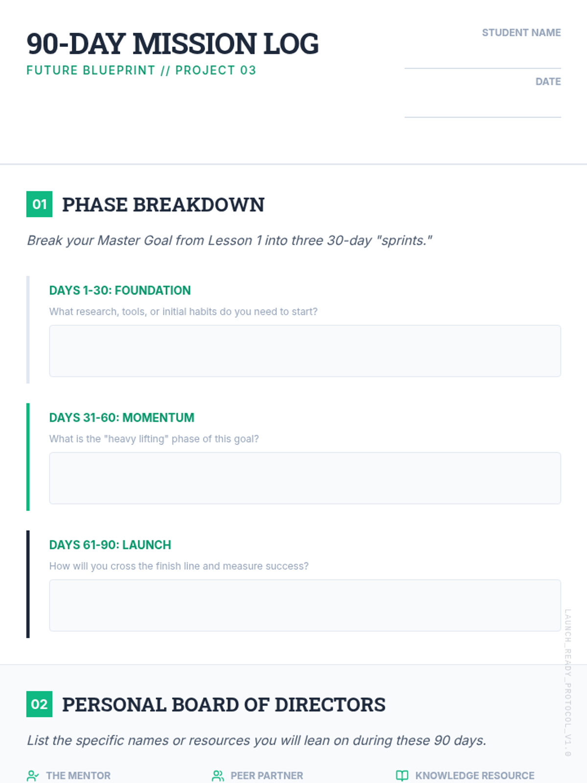 A 3-lesson series designed to help 12th graders transition from high school to adulthood by defining their values, overcoming potential obstacles, and creating actionable 90-day plans.