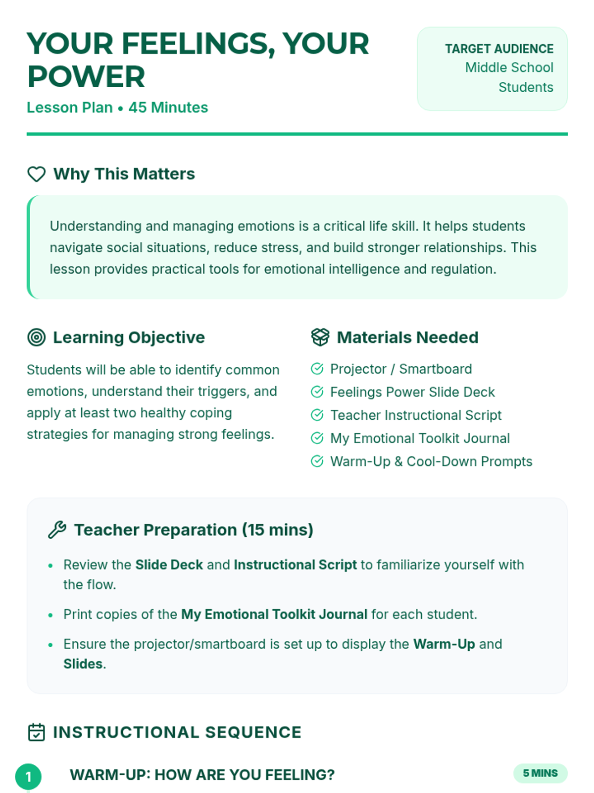 A 4-week small group series for 6th graders focused on identifying frustration triggers and implementing healthy coping strategies for academic, athletic, and home-based stress.
