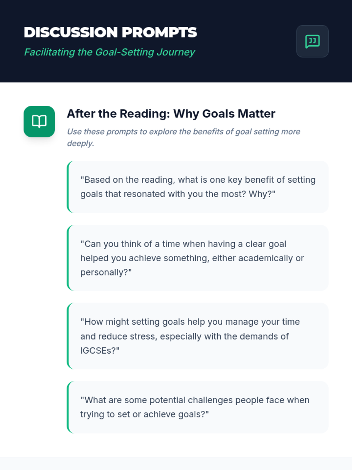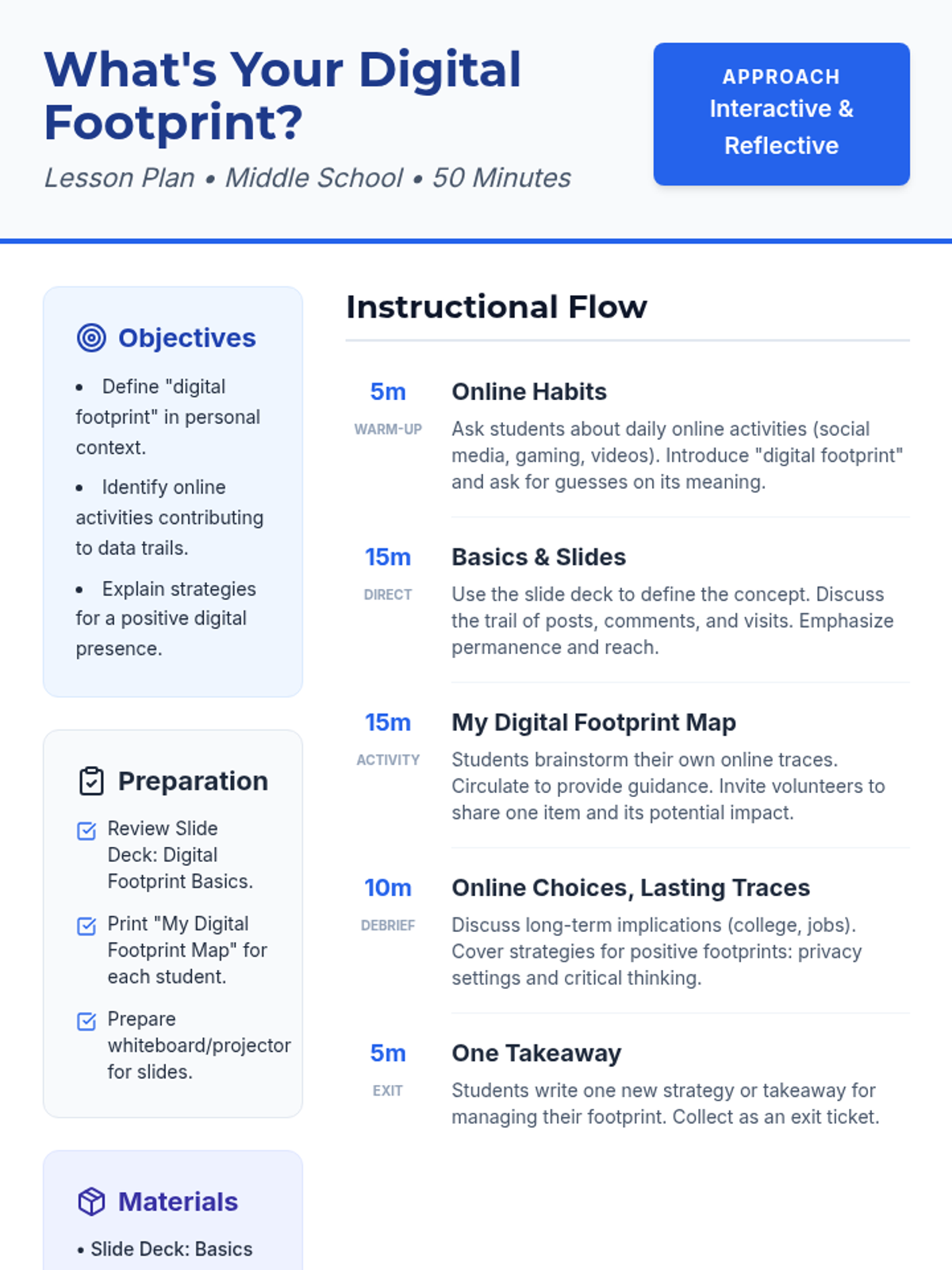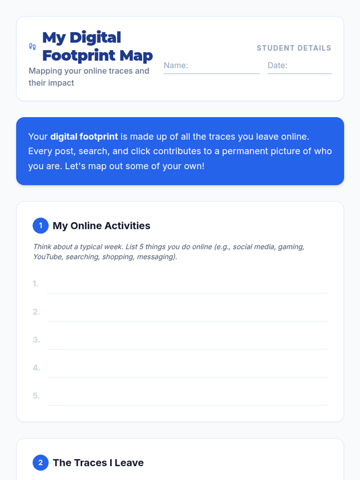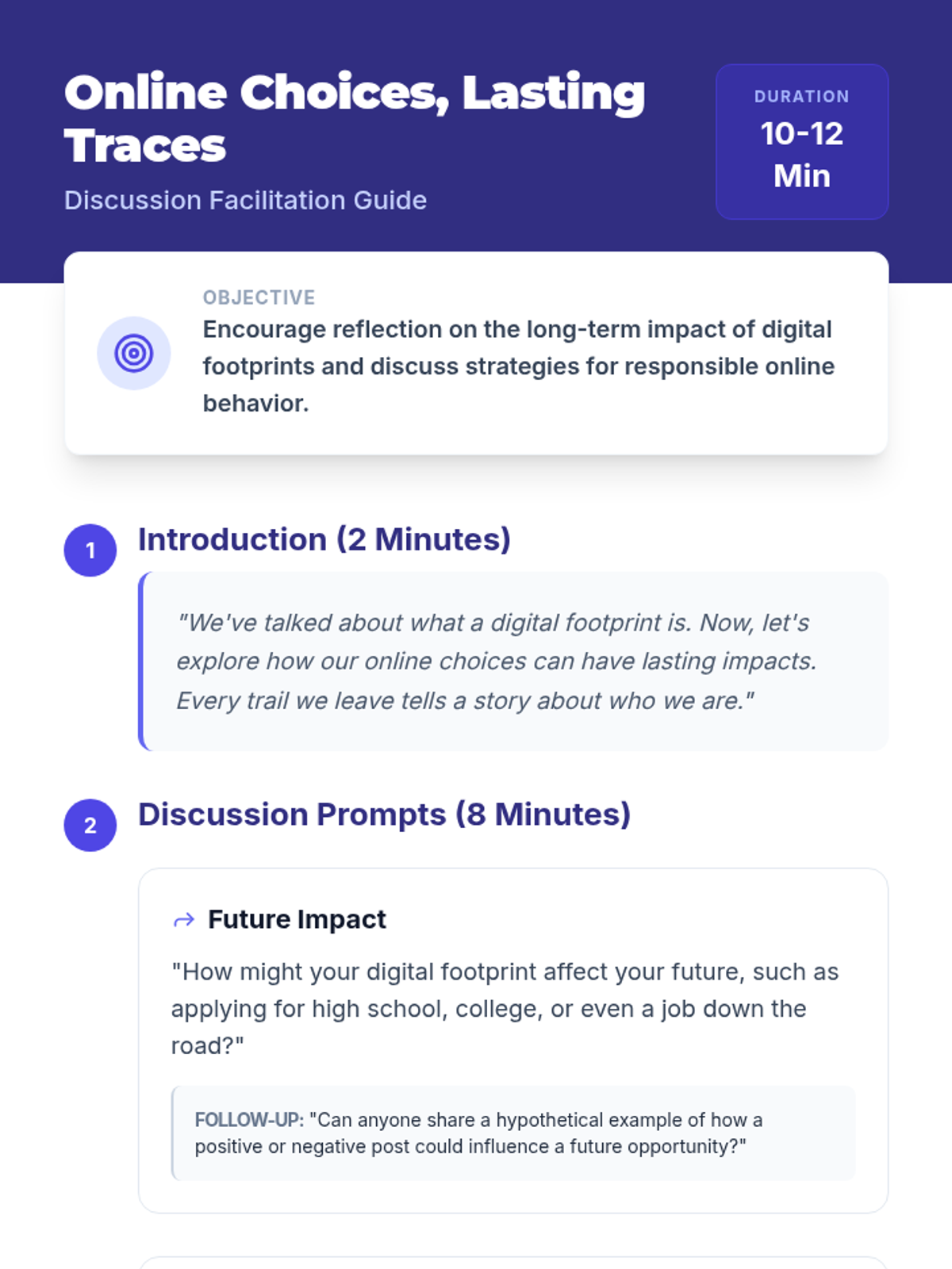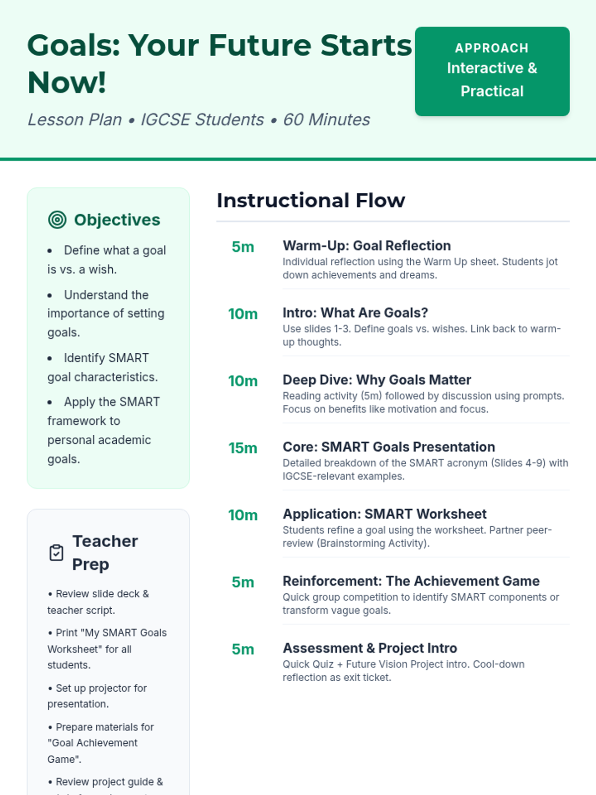 A comprehensive two-part series for middle school and IGCSE students focused on digital citizenship and personal goal setting. Students explore the lasting impact of their online actions before learning to draft their own path forward using the SMART goal framework.