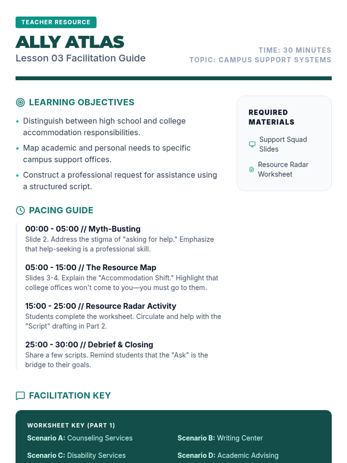 A four-part series designed to empower high school students with self-advocacy skills and knowledge of post-secondary pathways. This sequence focuses on identifying personal needs, exploring institutional options, and navigating support systems.