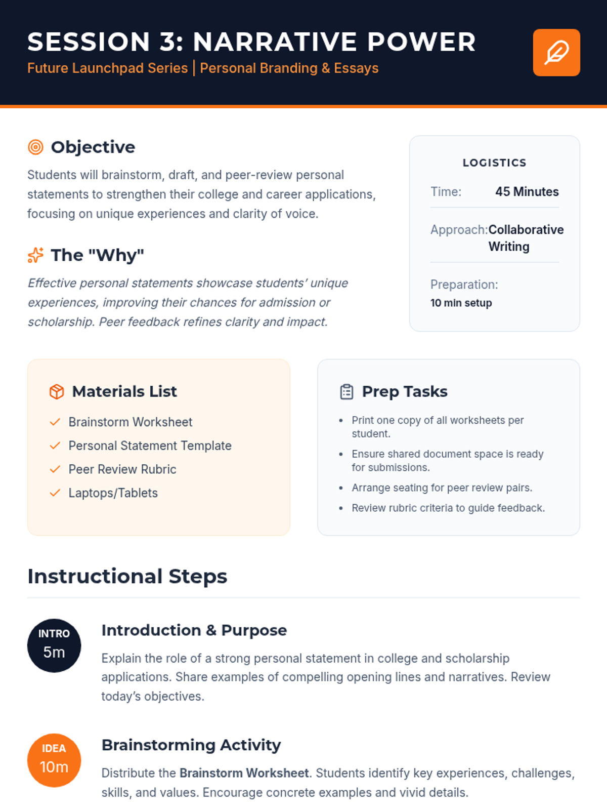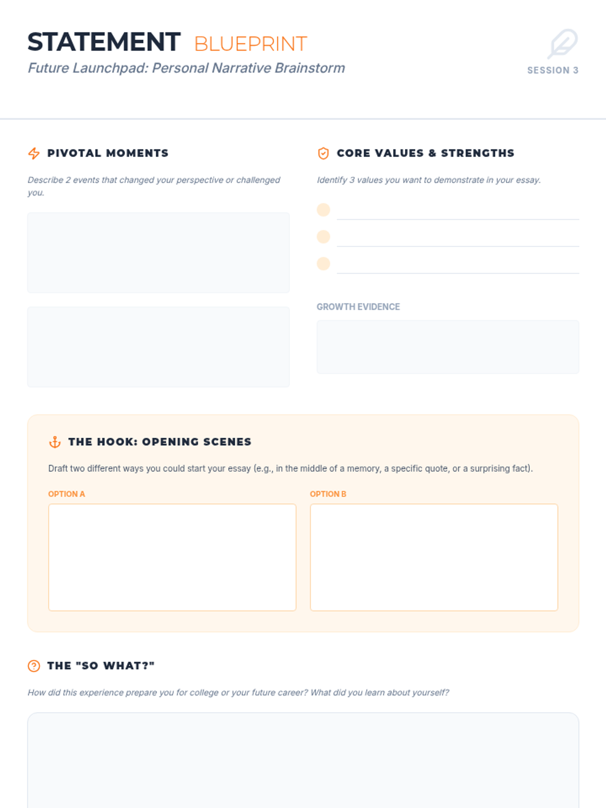 A specialized workshop sequence designed for high school parents to help them navigate the emotional complexities of their children's post-secondary transitions. The sequence focuses on moving from a 'pressure-based' approach to a 'support-based' framework using nautical metaphors.