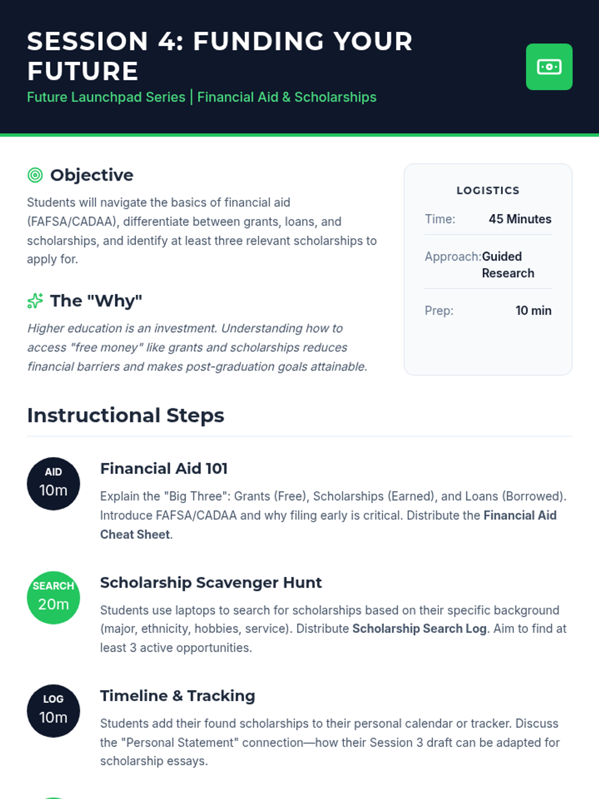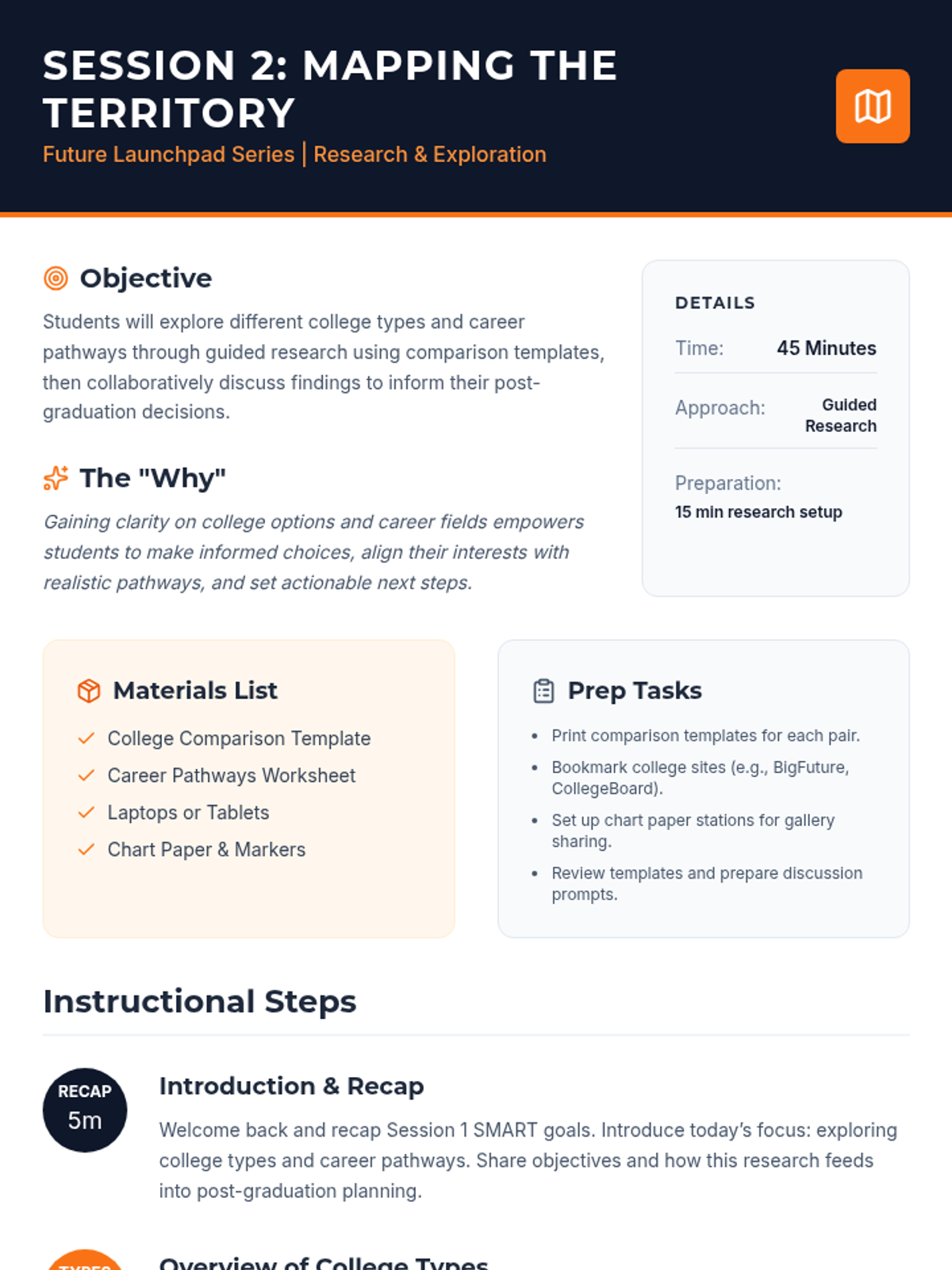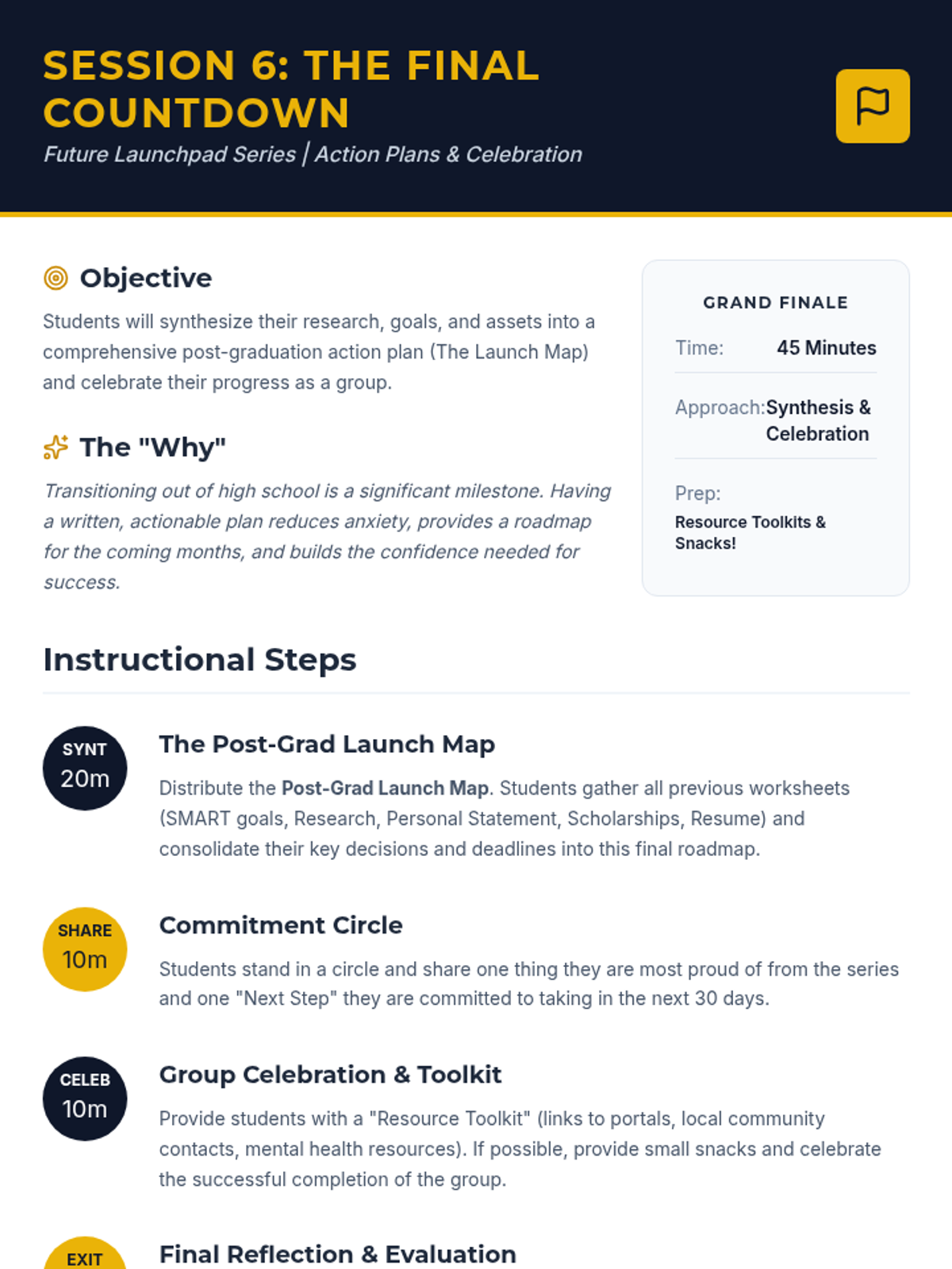 A 6-session Tier 2 group series for 12th-grade students to explore college and career pathways, develop application skills, and create a personalized post-graduation plan.