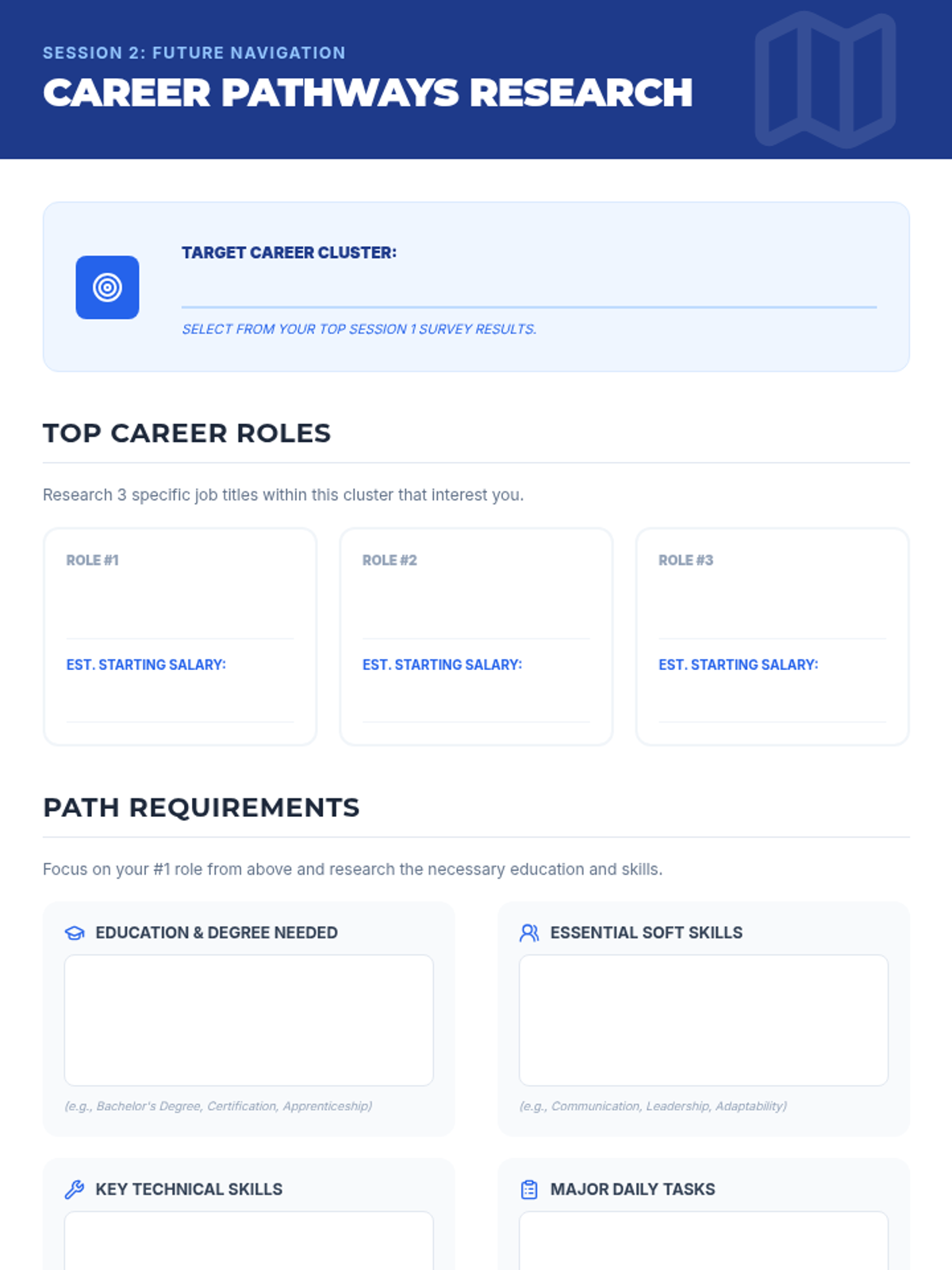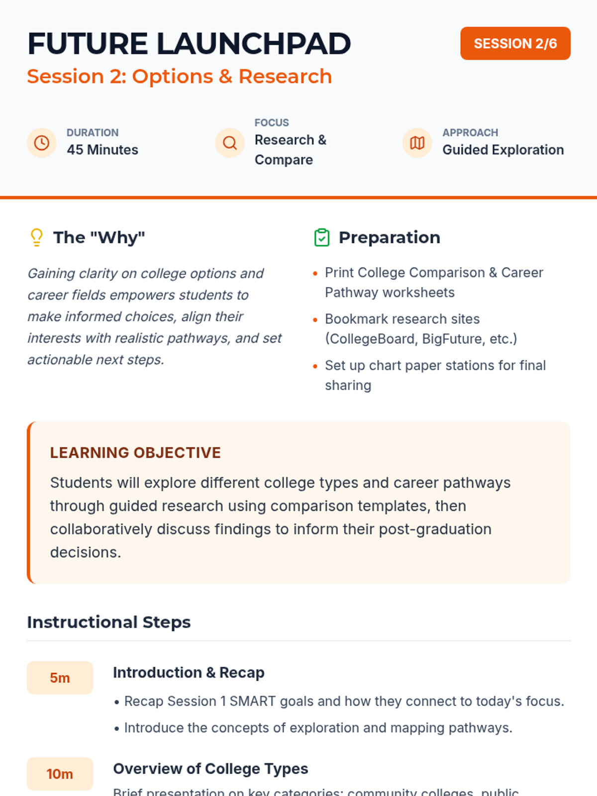 A 6-session Tier 2 group series designed to help 12th-grade students navigate post-secondary planning through self-assessment, research, and application skill development.
