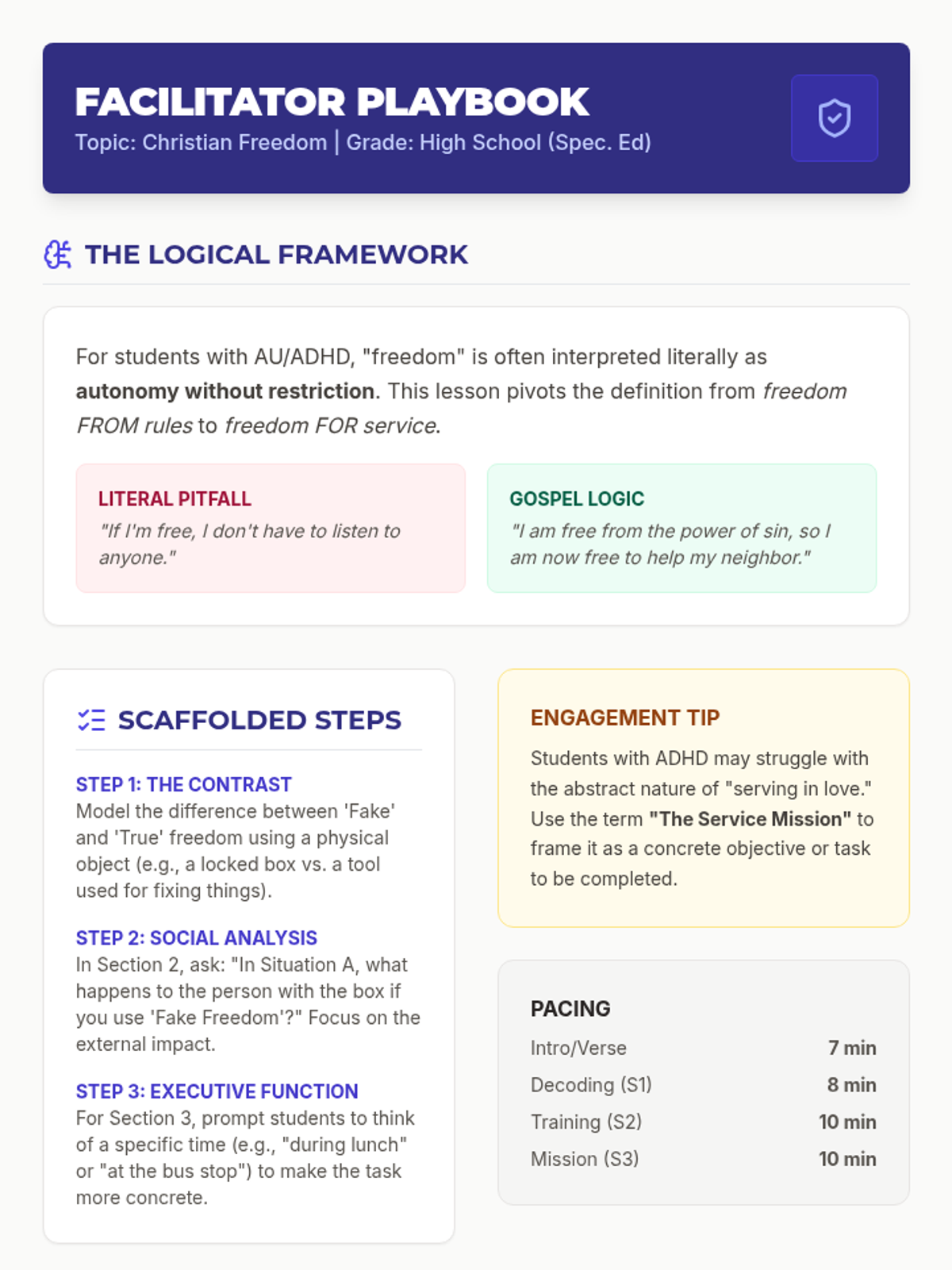 A study of the Book of Galatians tailored for high school boys with ADHD and Autism, focusing on practical application of spiritual growth and Christian freedom through concrete, literal teaching.