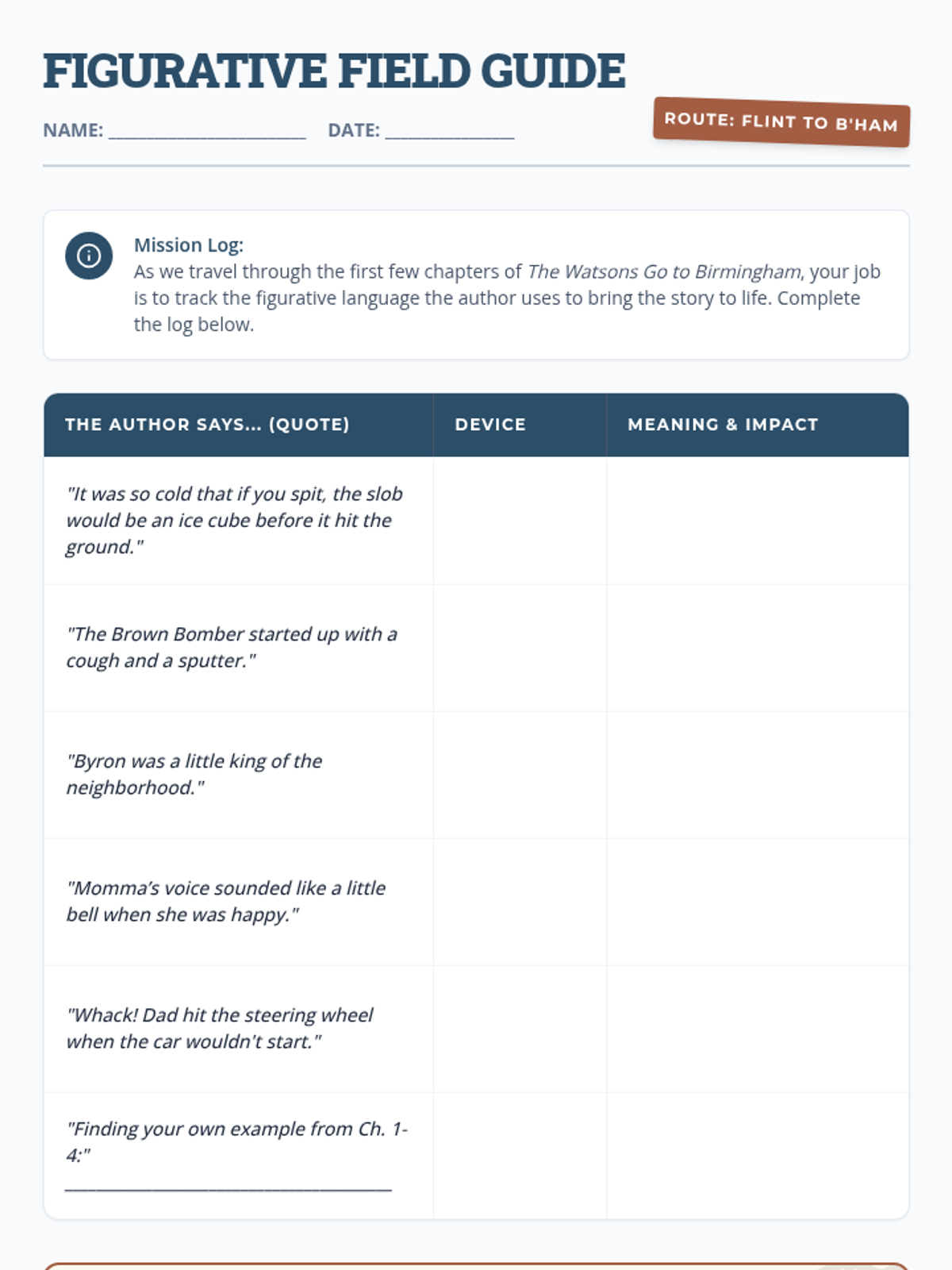 A comprehensive unit introduction to figurative language using 'The Watsons Go to Birmingham – 1963' as the primary text context for 6th-grade students.