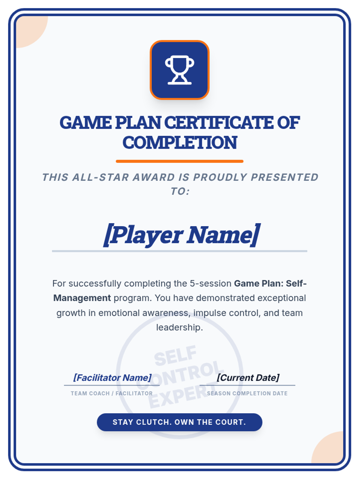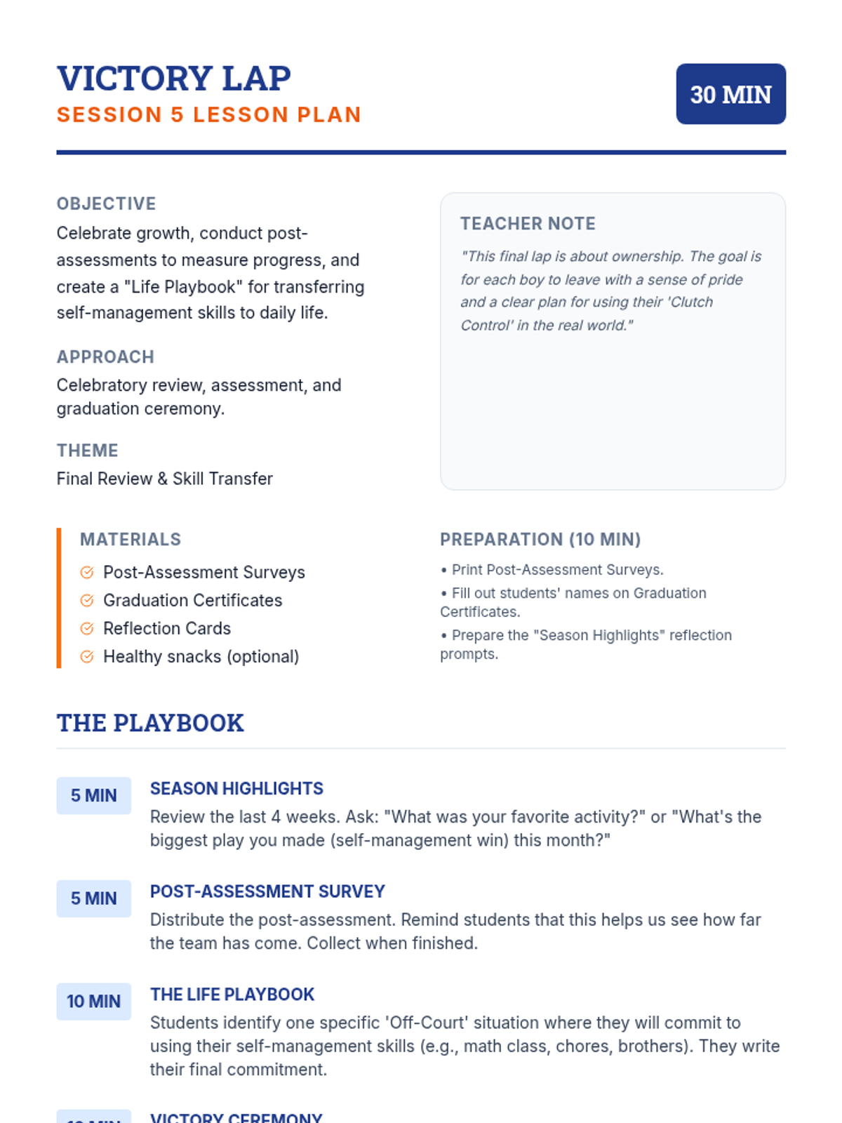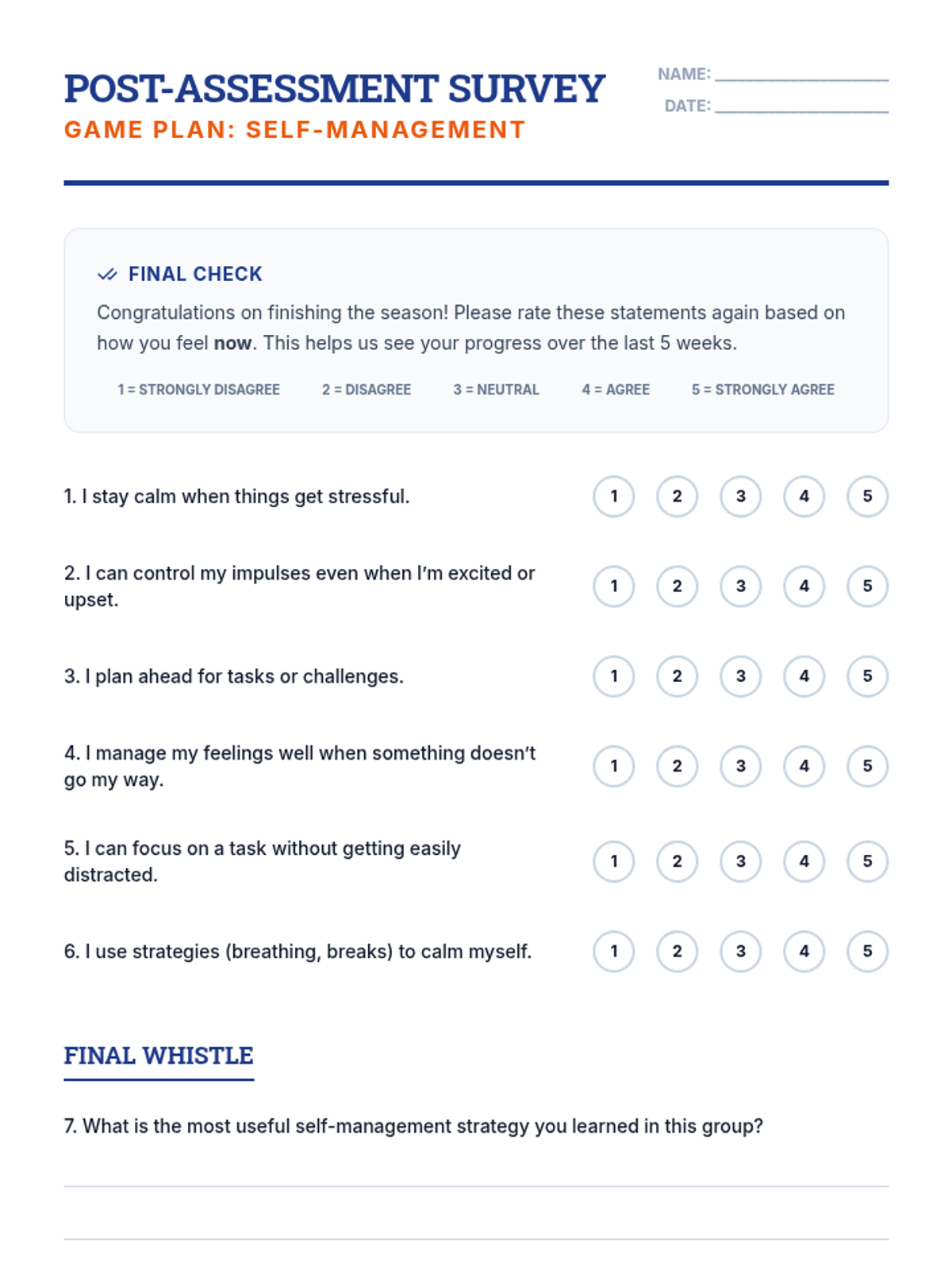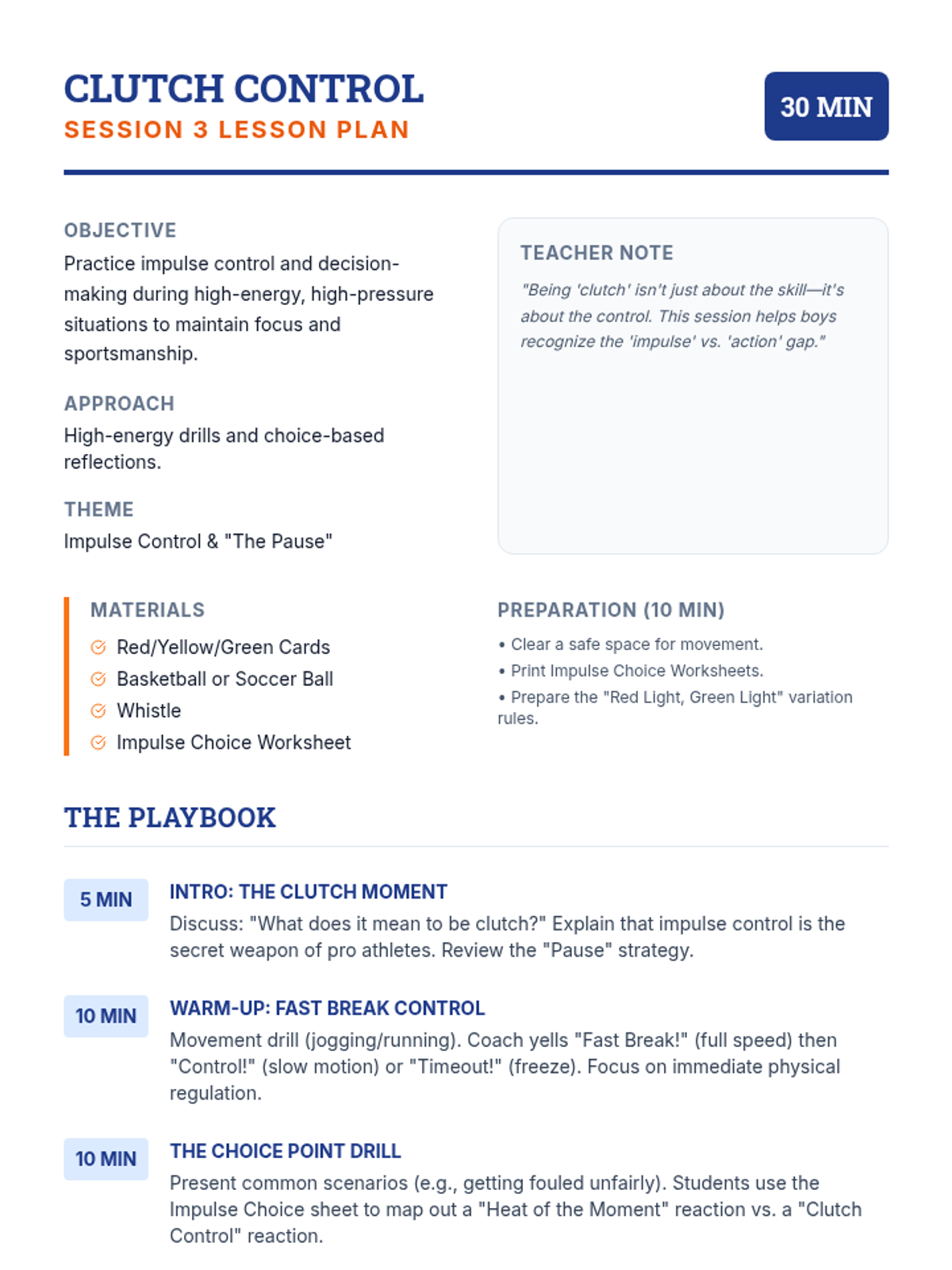 A 5-session small group for 7th-grade boys focused on building self-management skills through sports-themed activities, goal-setting, and emotional regulation strategies.