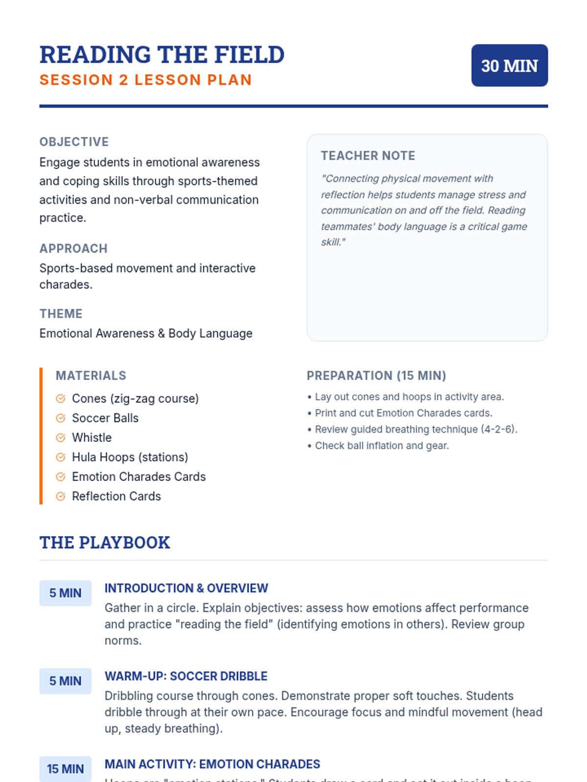 A high-energy Social Emotional Learning sequence focused on building collaboration, communication, and collective problem-solving skills through physical challenges and creative projects.