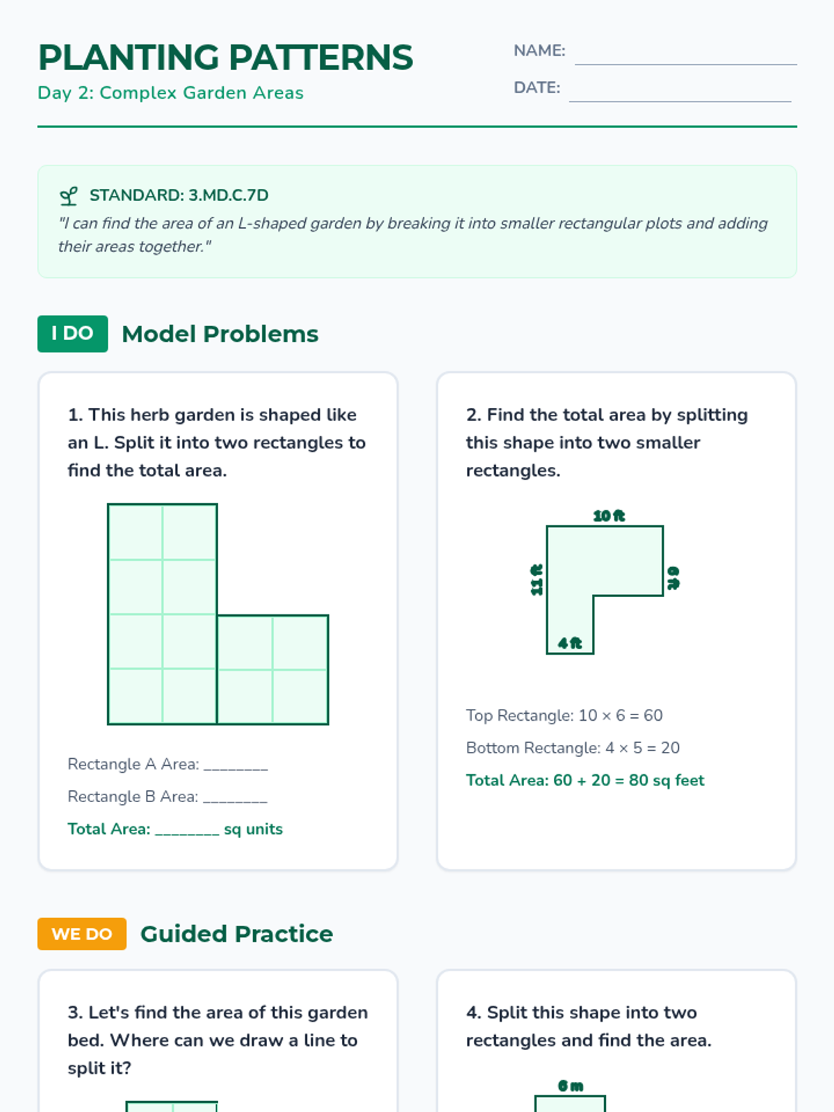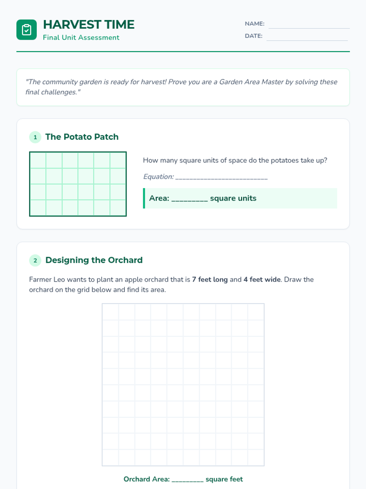 A comprehensive math unit for 3rd grade focusing on area measurement through the context of garden planning, aligned with Arizona standard 3.MD.C.7. Students move from concrete tiling to abstract multiplication.