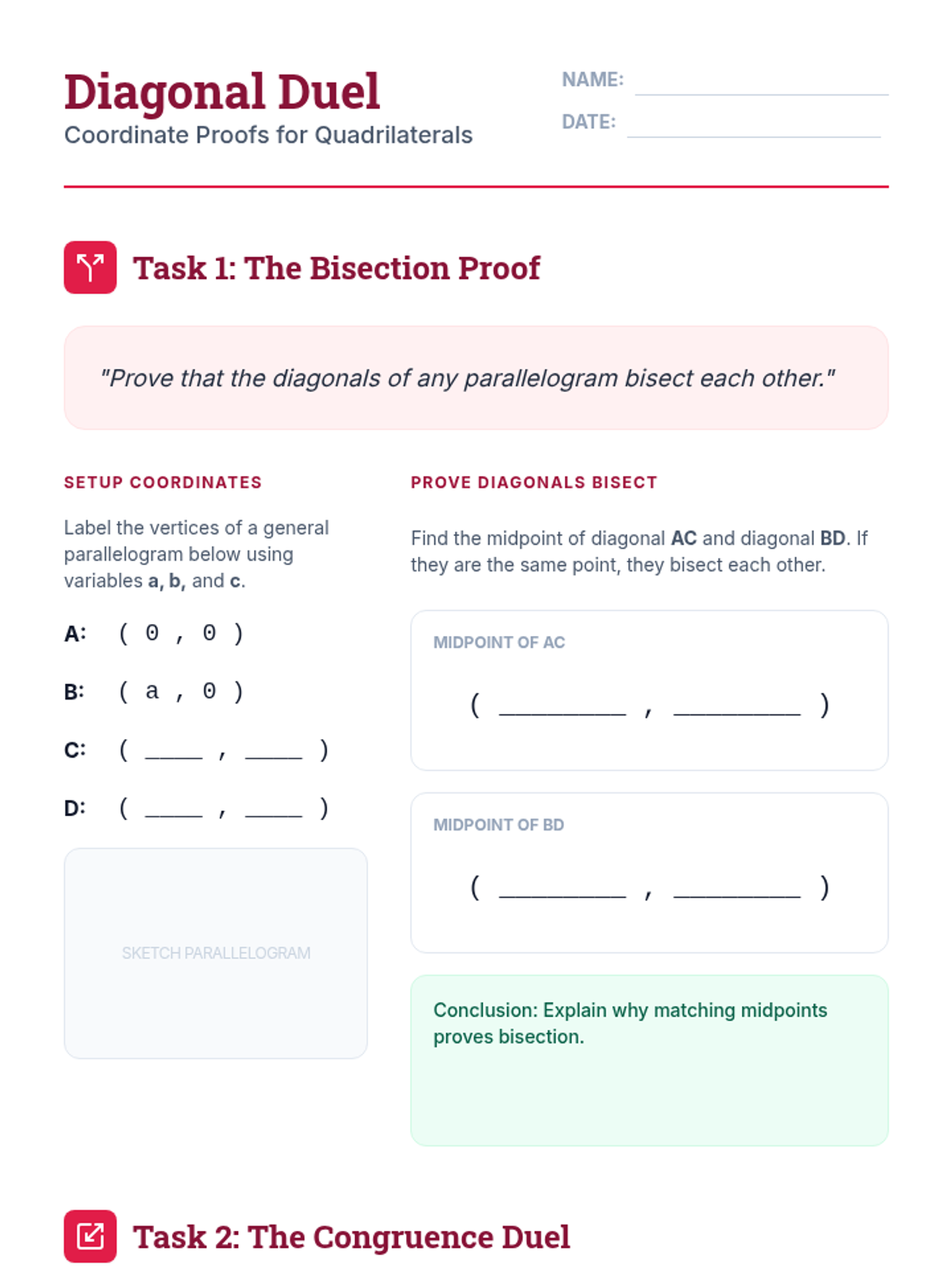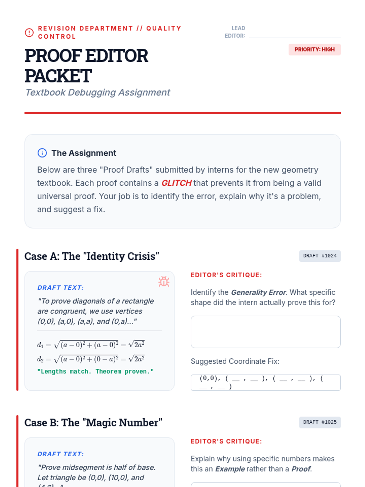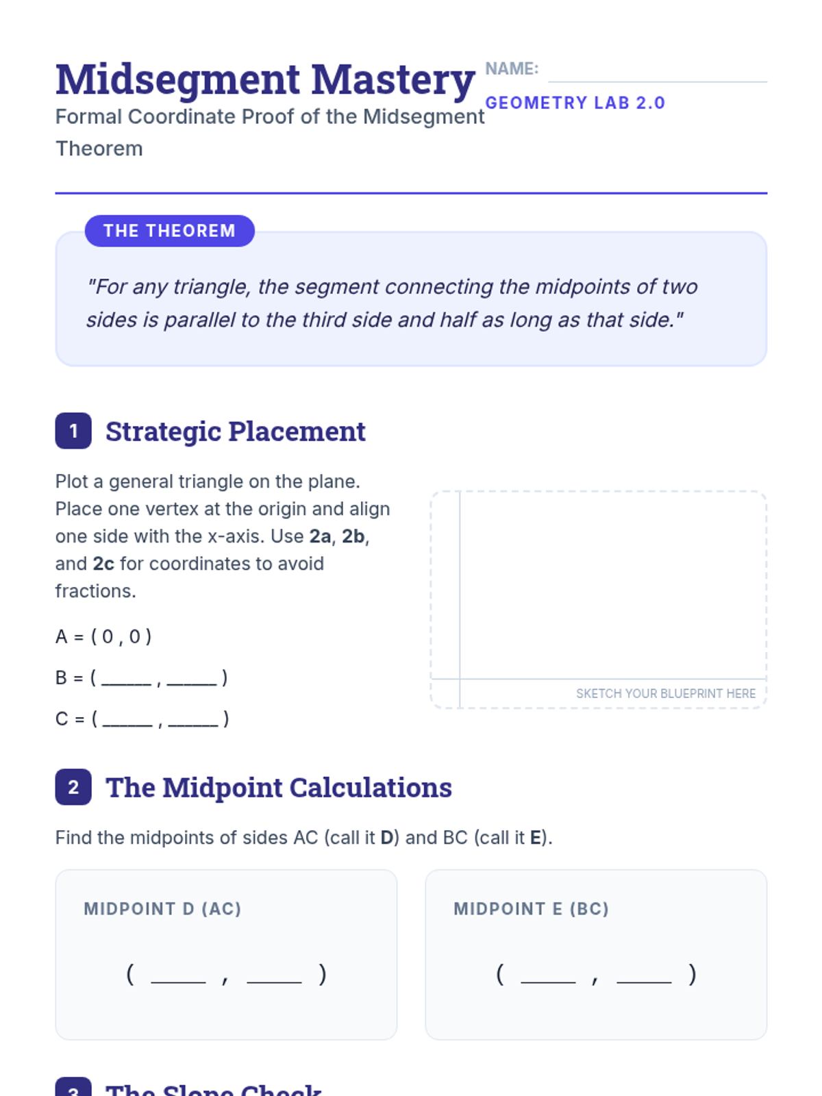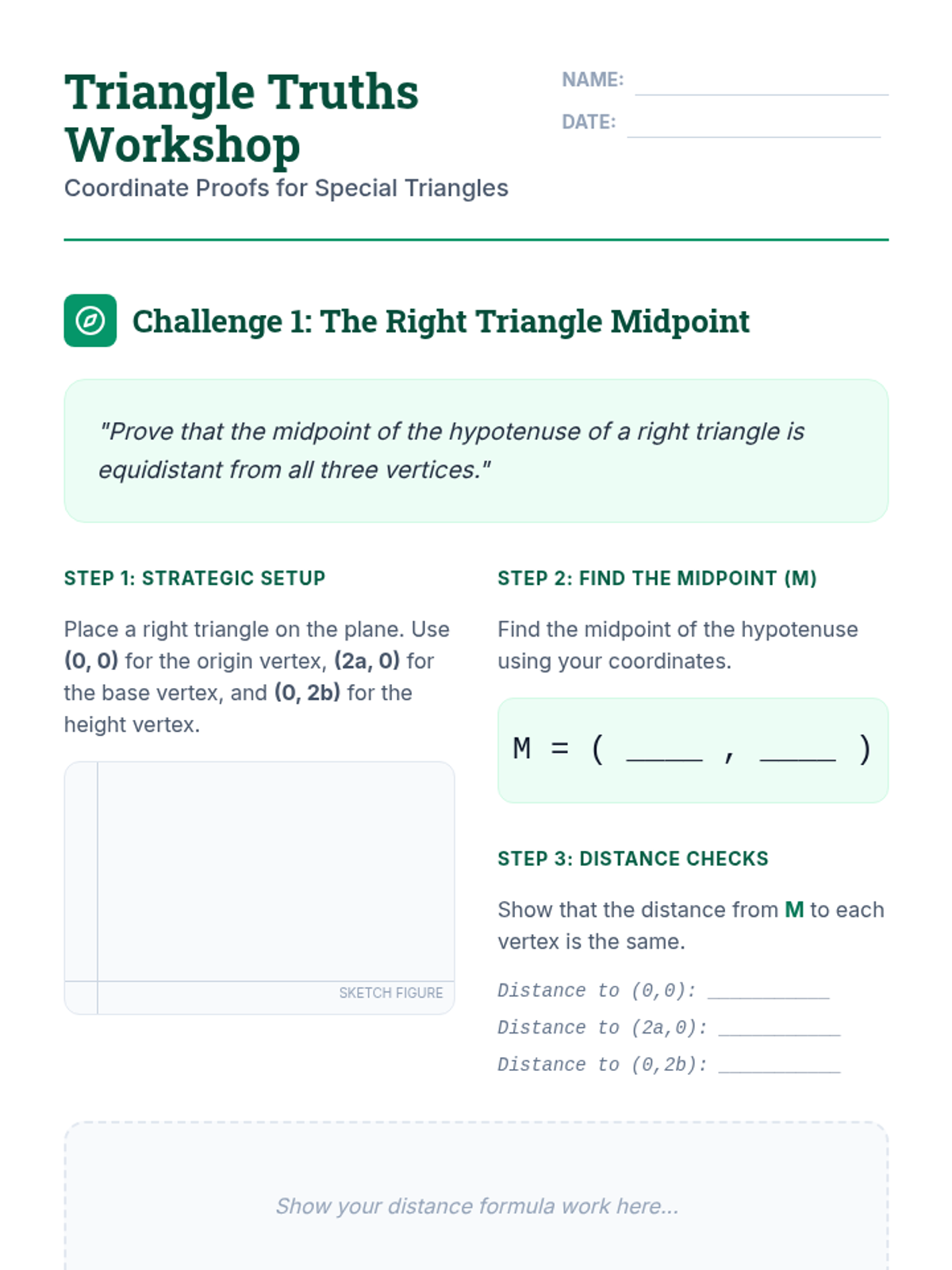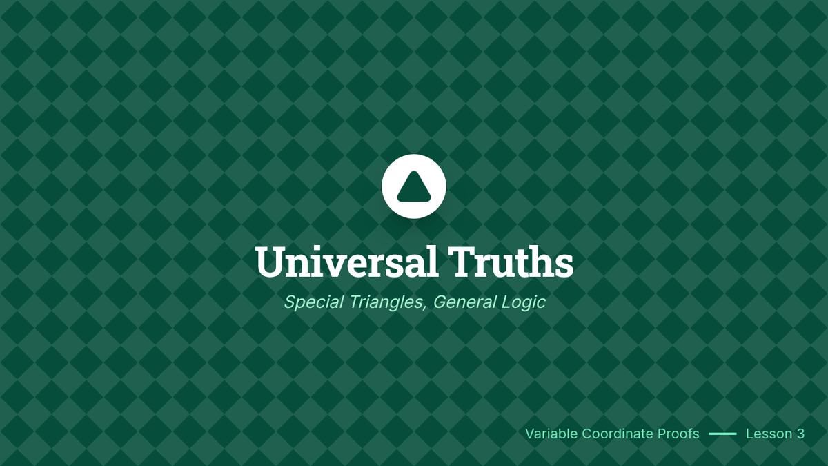 This sequence guides 11th-grade students from specific numerical examples to abstract general proofs using variable coordinates in the coordinate plane. Students learn to strategically place figures, use the distance and midpoint formulas with variables, and prove properties of triangles and quadrilaterals for all cases rather than single examples.