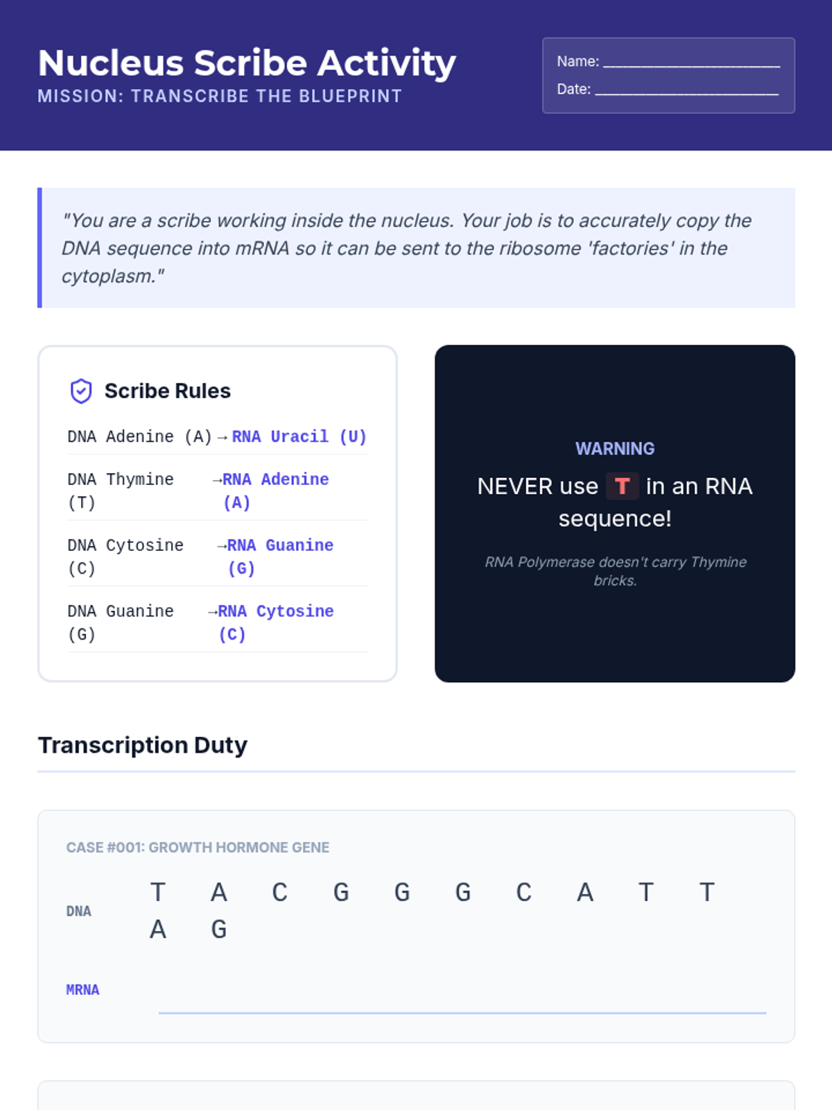 This sequence guides students through the Central Dogma of biology, exploring how genetic information flows from DNA to RNA and ultimately to functional proteins. Students will master molecular differences, the mechanics of transcription and translation, and the translation of genetic code into physical traits.