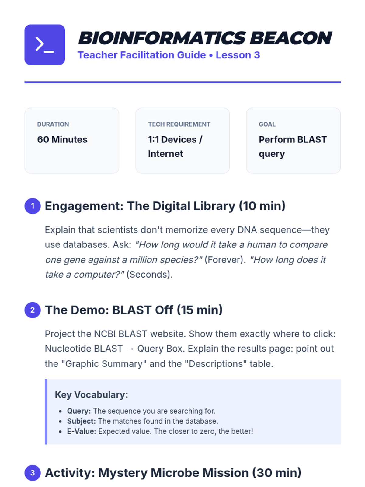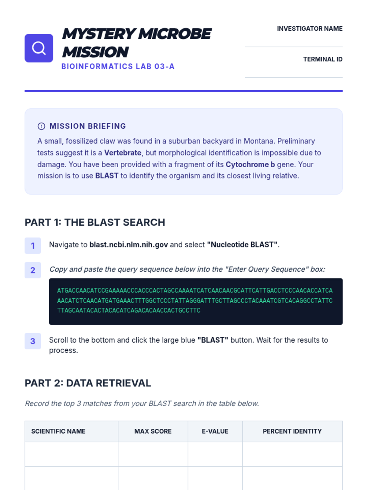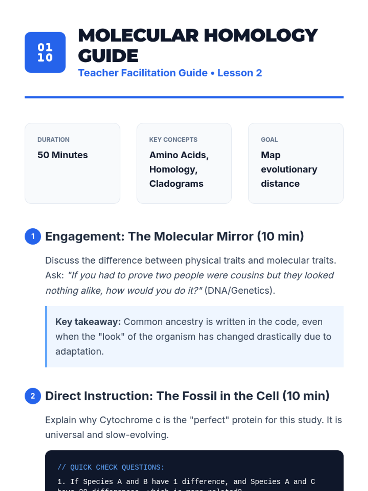 A high school biology sequence exploring molecular homology, genetic variation, and bioinformatics. Students investigate how DNA and protein sequences serve as evidence for evolutionary relationships, utilizing tools like BLAST and molecular clocks to resolve evolutionary puzzles.