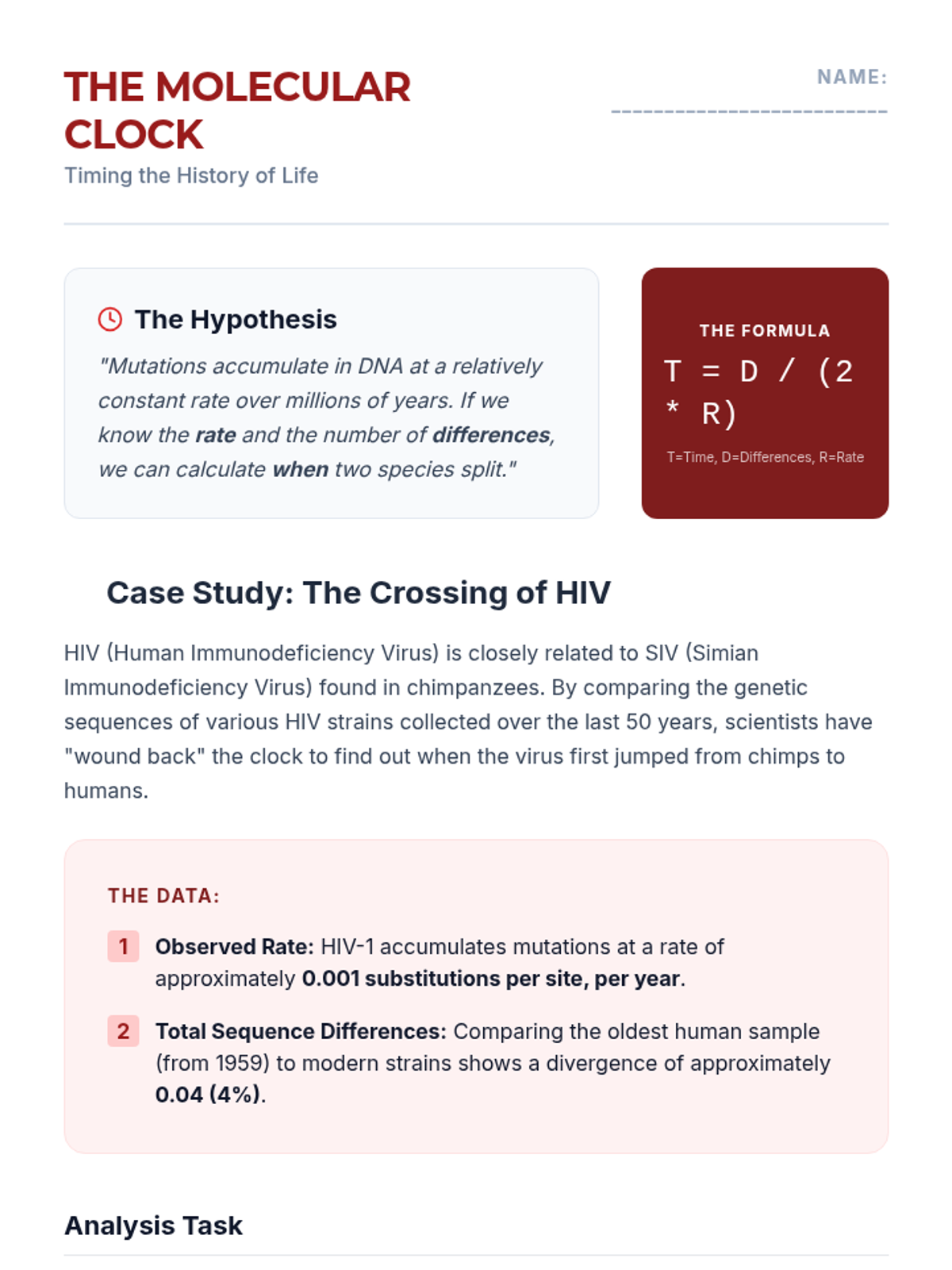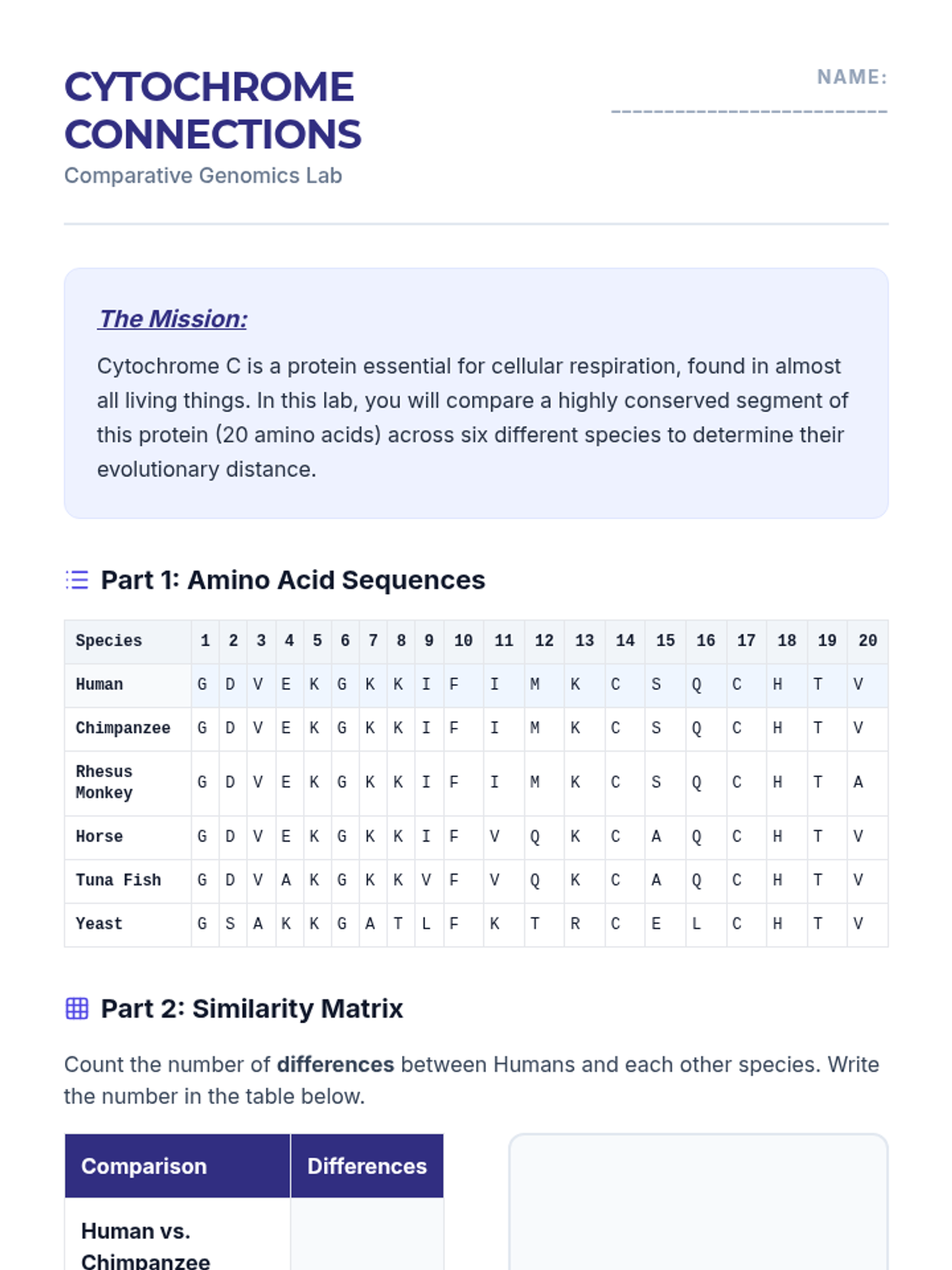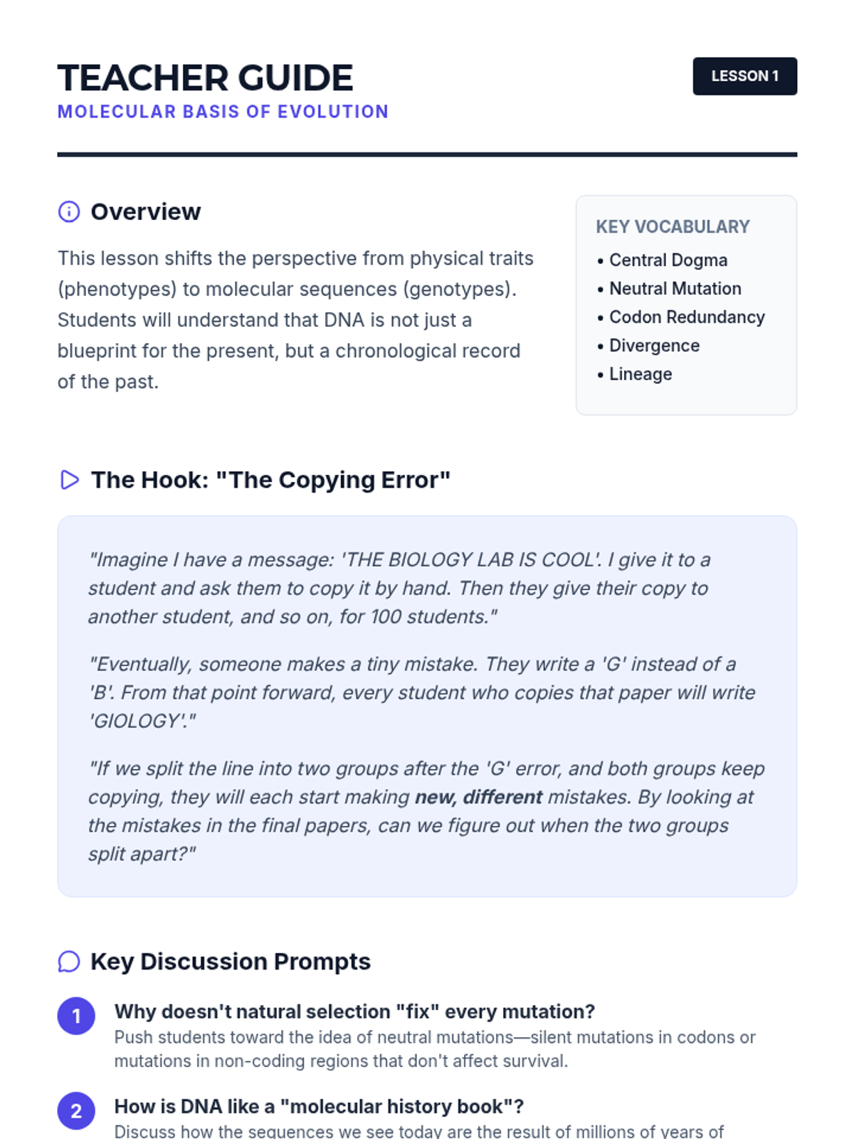 This sequence explores how molecular biology provides evidence for evolution through DNA and protein analysis. Students use bioinformatics tools like BLAST, analyze amino acid sequences, and investigate molecular clocks to understand evolutionary relationships.
