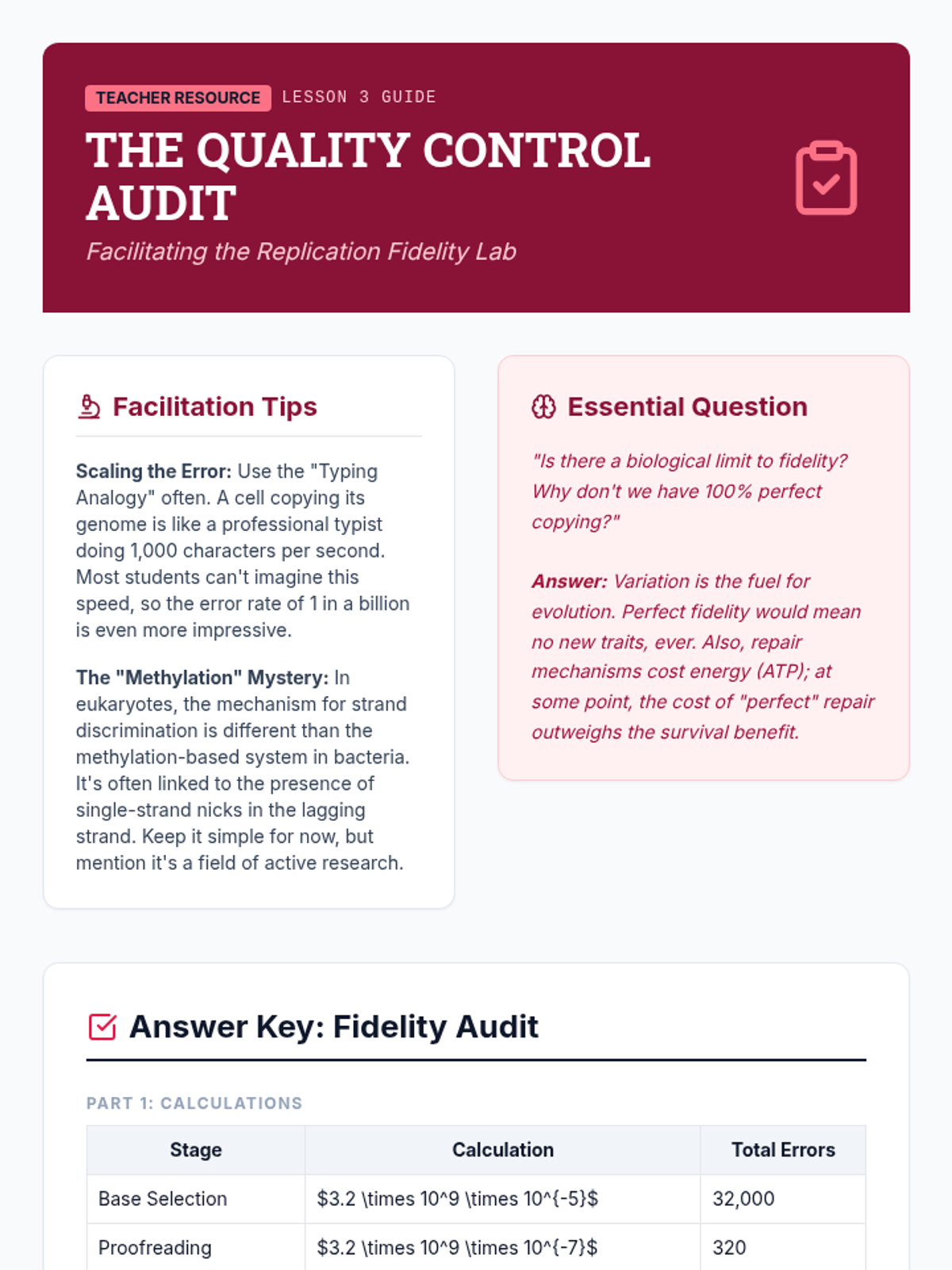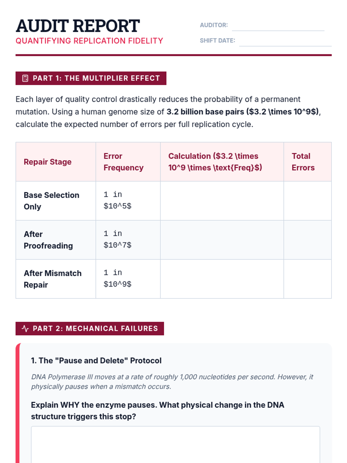 This advanced biology sequence explores the high-fidelity process of DNA replication, from historical proofs of semi-conservative replication to the complex enzymology and repair mechanisms that maintain genomic integrity. Students will analyze the 'end-replication problem' and the consequences of replication stress in the context of aging and cancer.