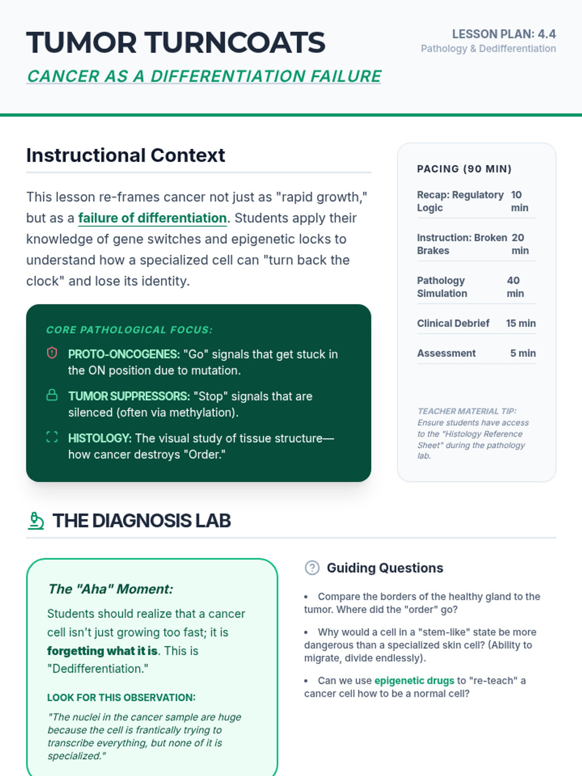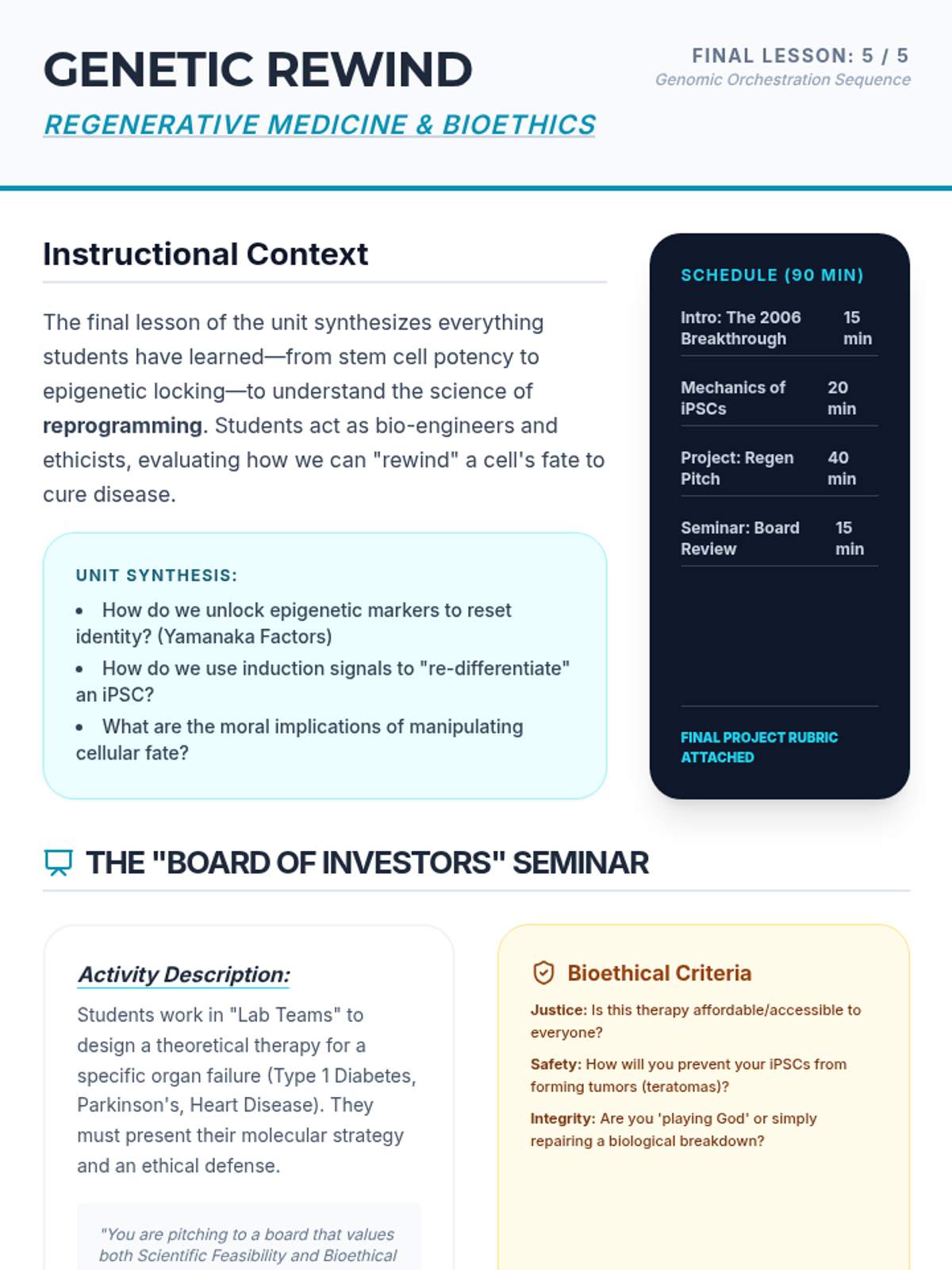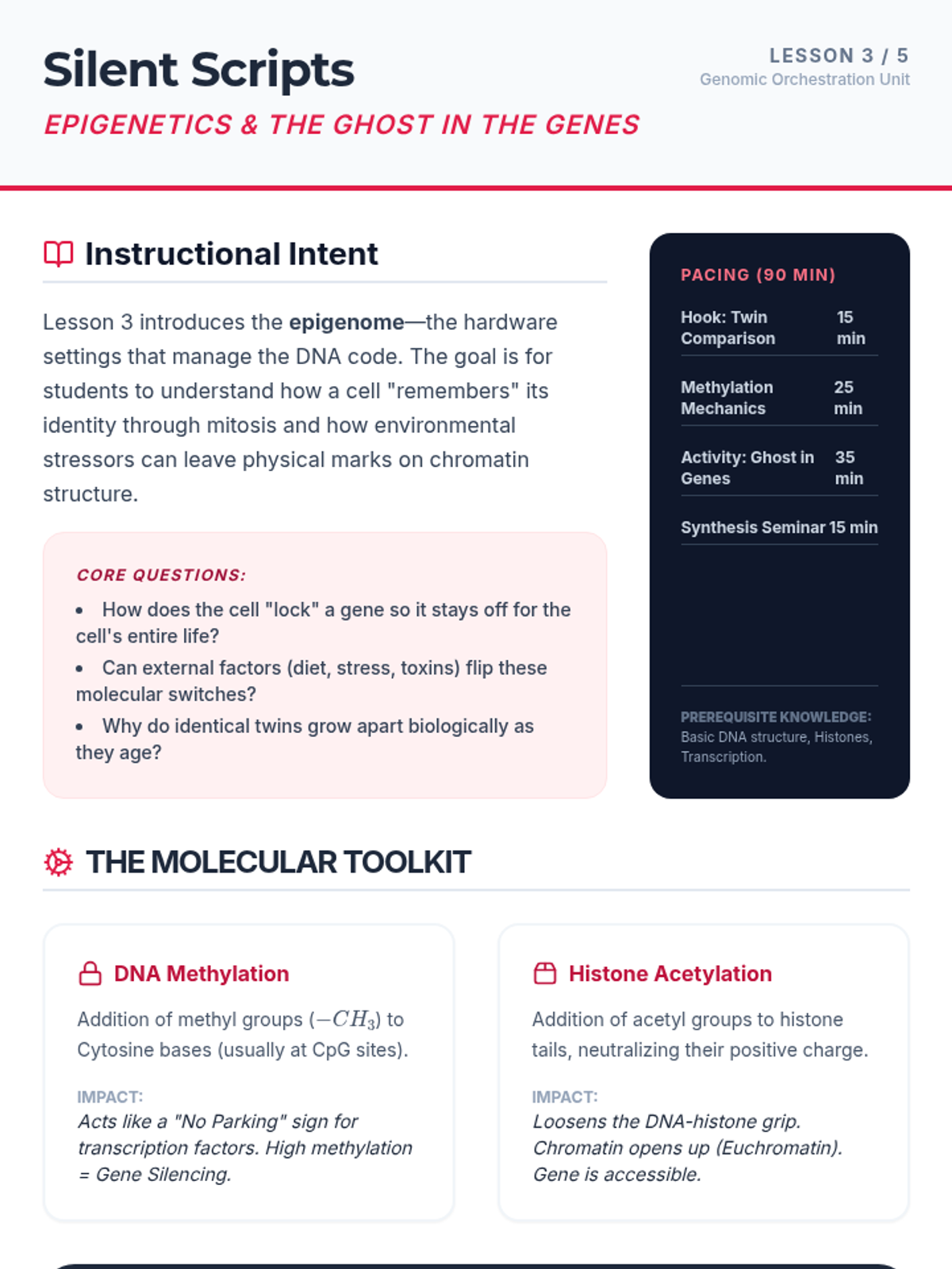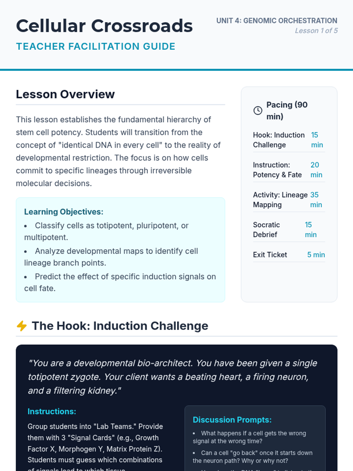 A 12th-grade biology sequence exploring the molecular mechanisms of cellular differentiation, gene regulation, and epigenetics, from embryogenesis to modern regenerative medicine.