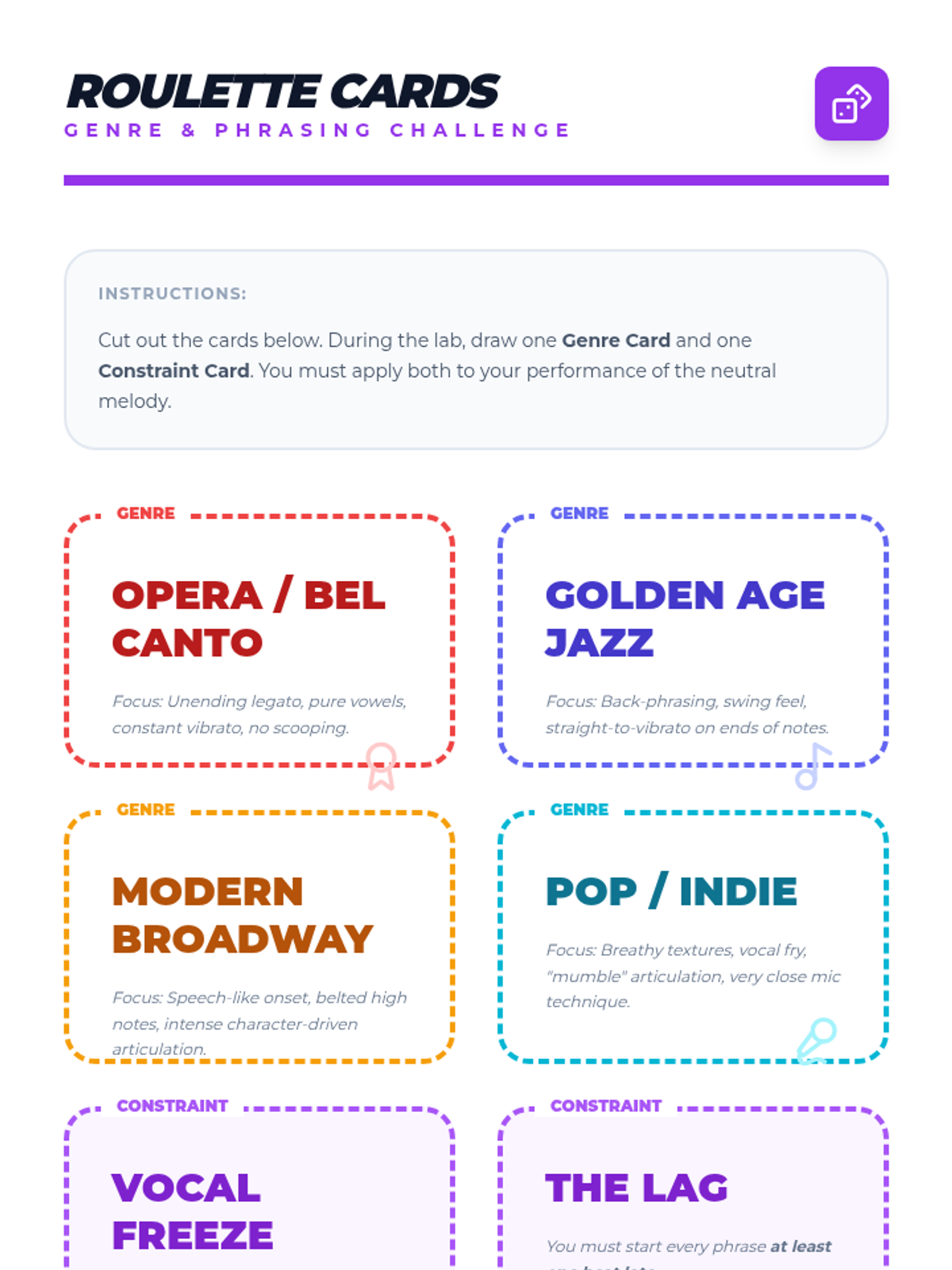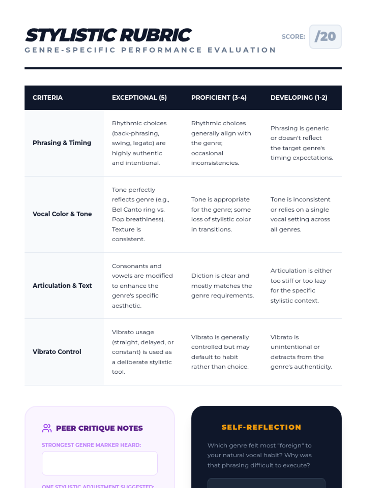 This sequence explores how vocalists adapt phrasing, tone, and technique across Classical, Jazz, Musical Theater, and Pop/Rock genres to create authentic and compelling performances.