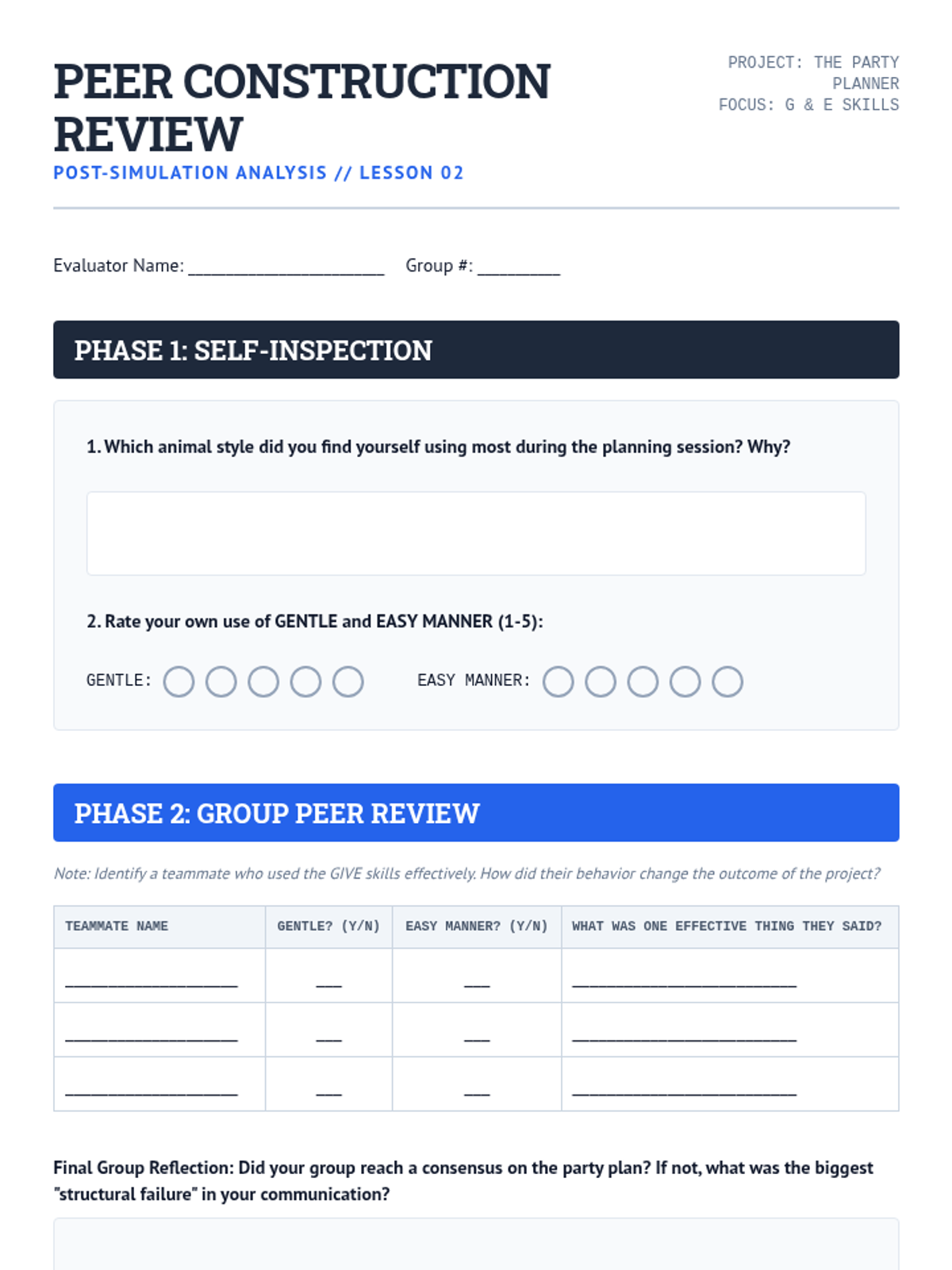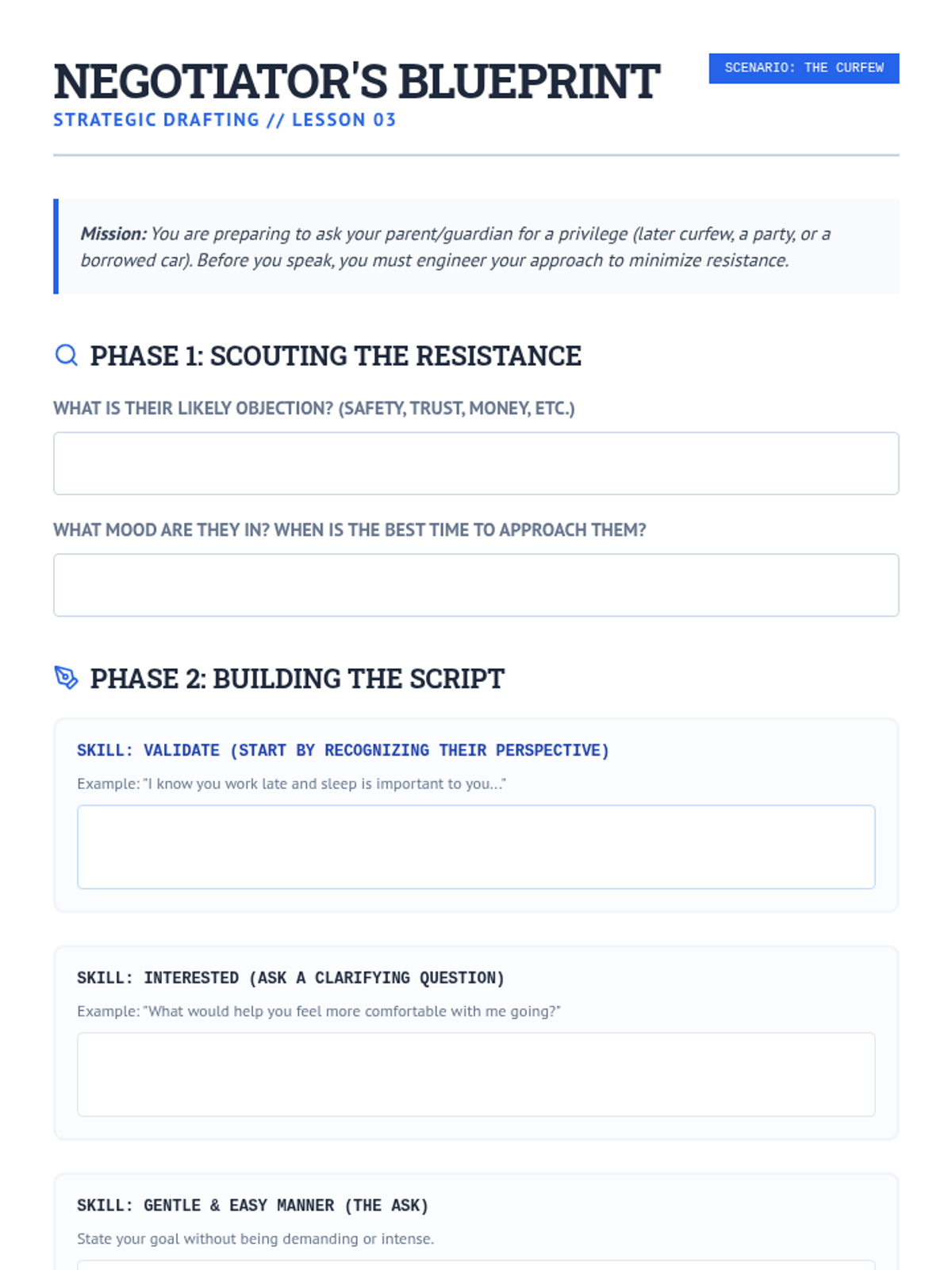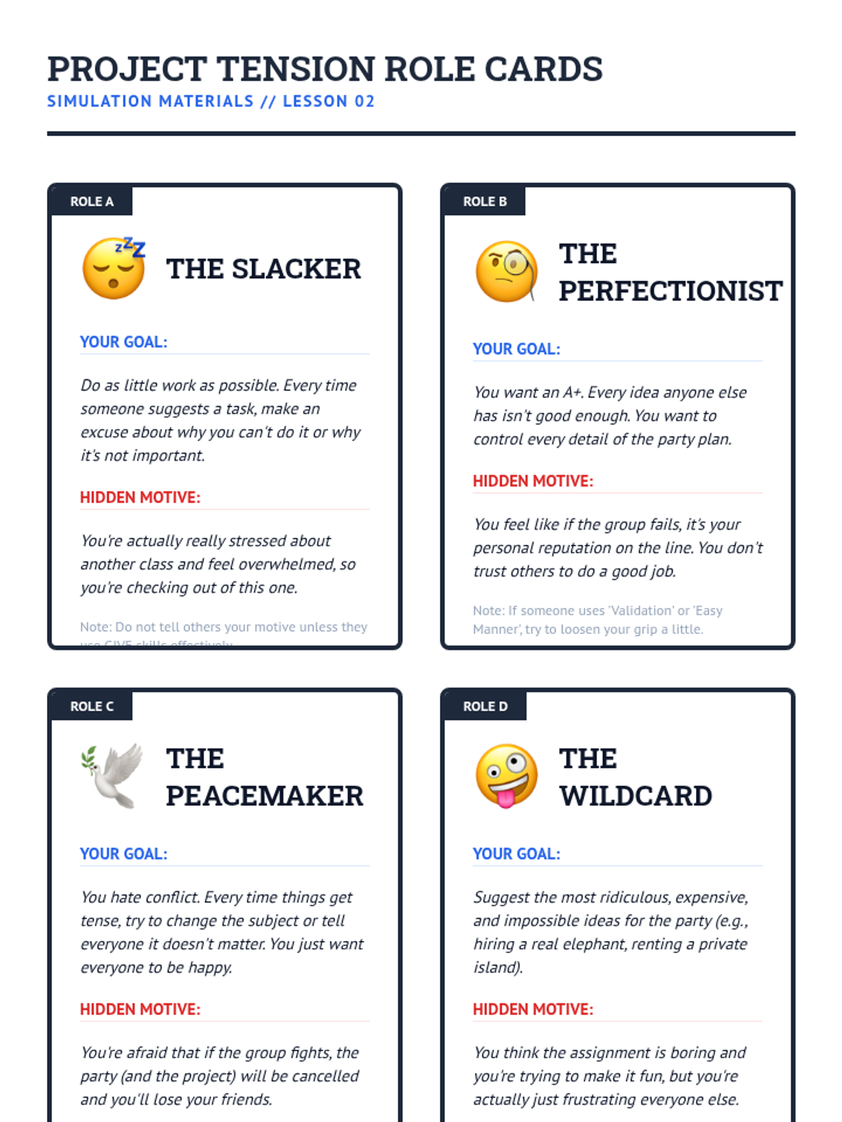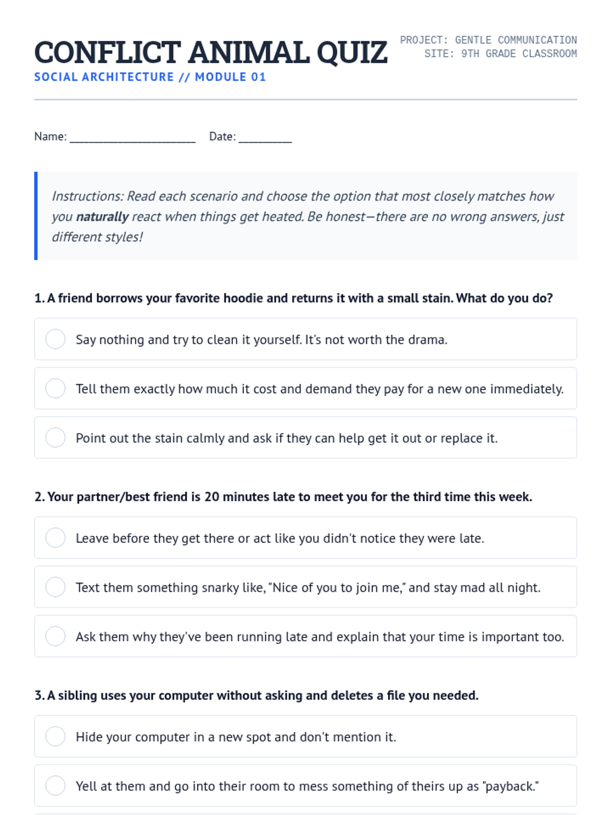 A 5-lesson unit for 9th graders focused on DBT 'GIVE' skills. Students move through increasingly difficult simulations to build muscle memory for maintaining relationships during high-pressure conflicts.