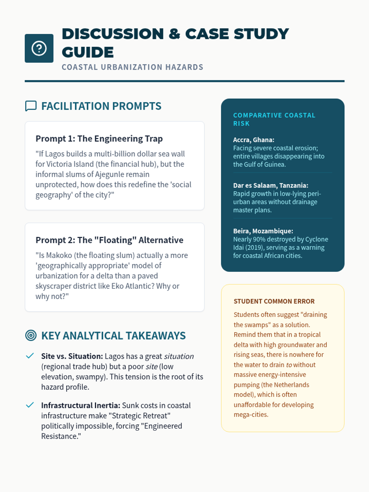 A comprehensive undergraduate sequence exploring the intersection of Africa's physical geography with human systems. Students analyze hydropolitics, mineral-driven economic geography, coastal urbanization risks, and agricultural sustainability to evaluate how environmental constraints shape geopolitical and economic outcomes across the continent.