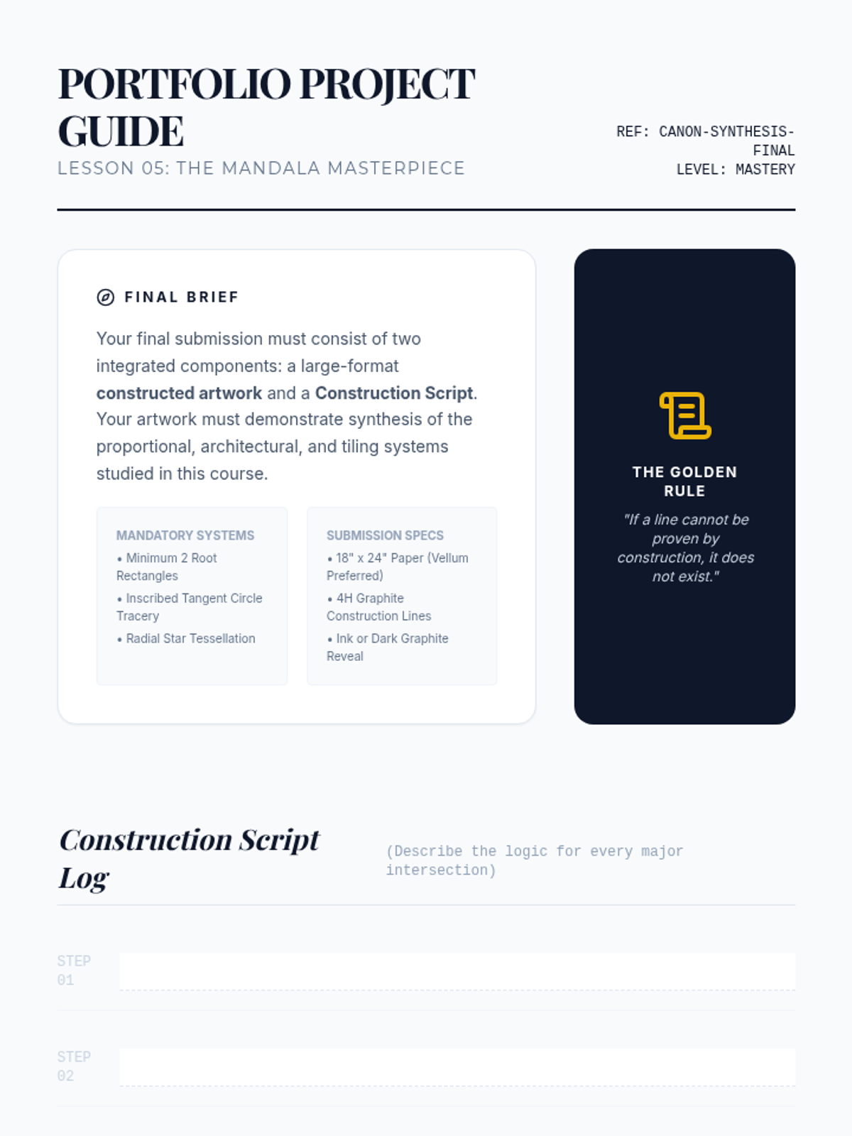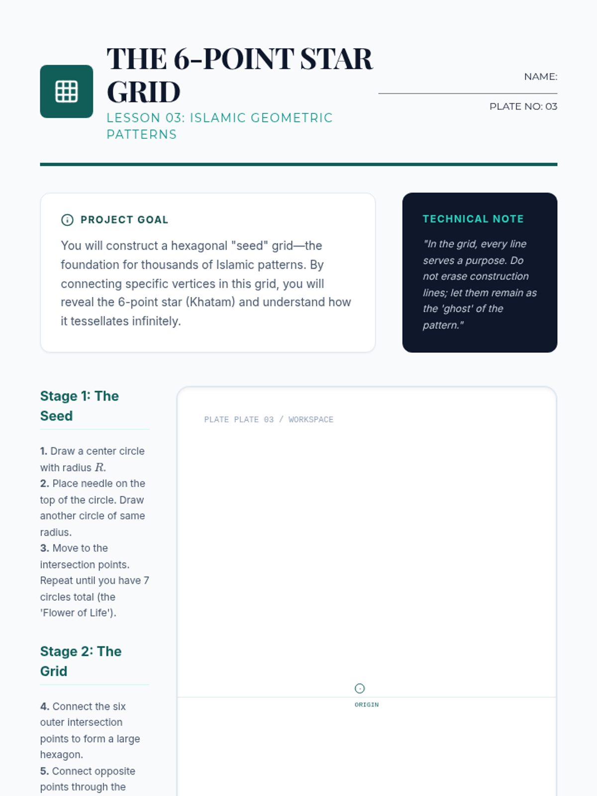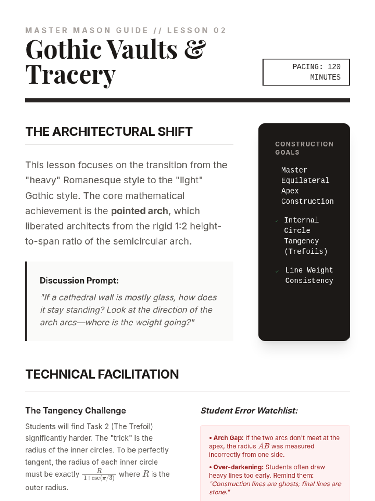 This sequence explores the intersection of geometry, art, and architecture. Students master compass and straightedge constructions to recreate historical designs from Gothic cathedrals and Islamic tilings while understanding the underlying mathematical principles of root rectangles and aperiodic tilings.