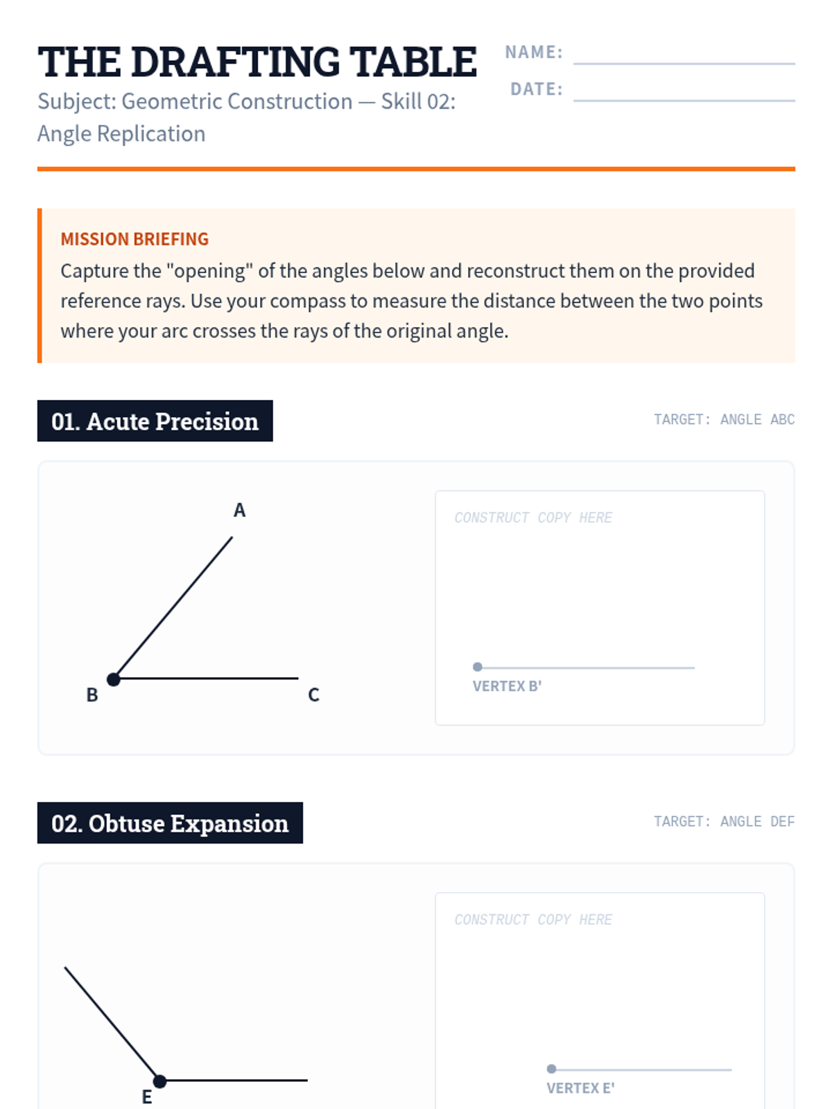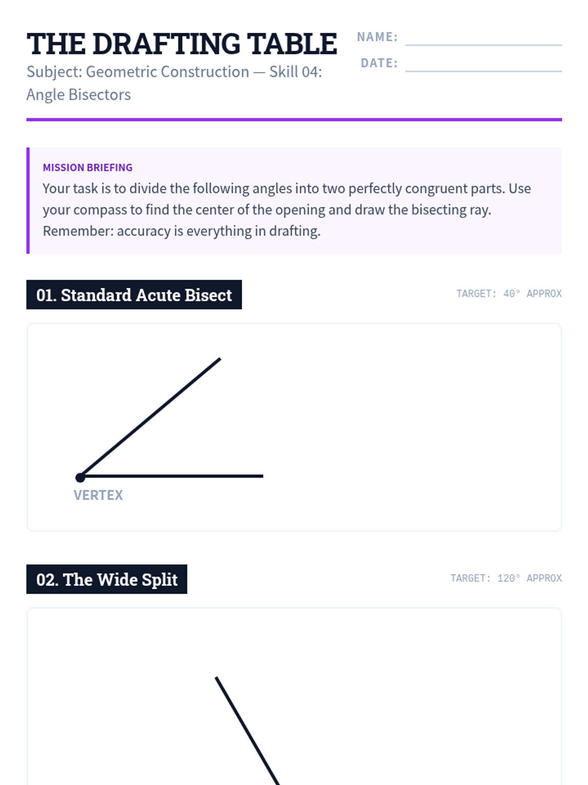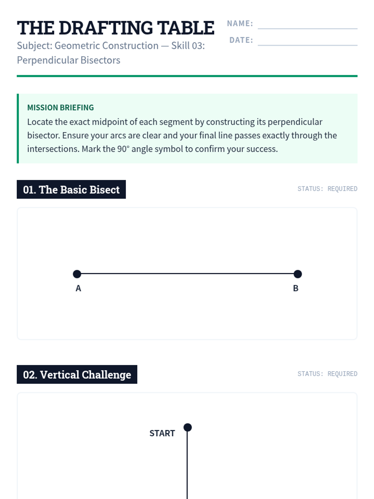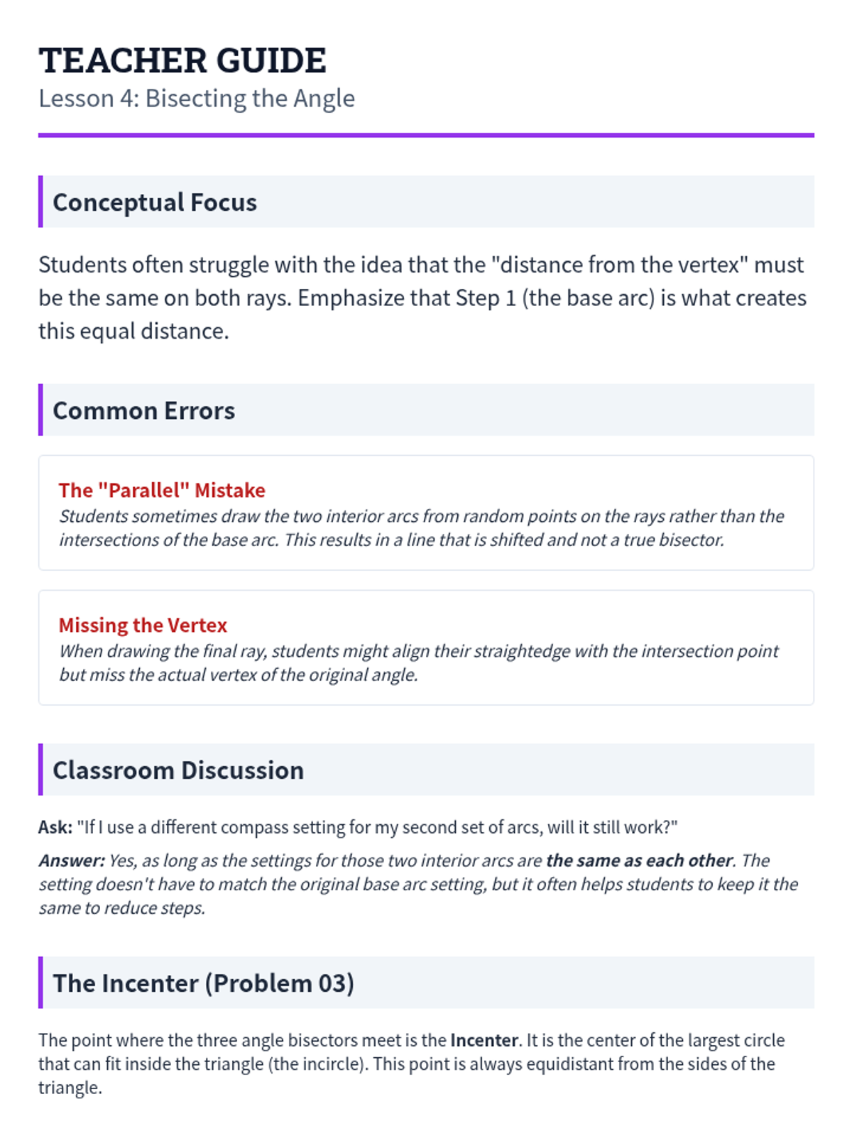 A foundational geometry sequence for 7th-grade students focusing on the art and logic of compass and straightedge constructions. Students master the skills of copying segments and angles, and constructing perpendicular and angle bisectors to solve geometric puzzles.