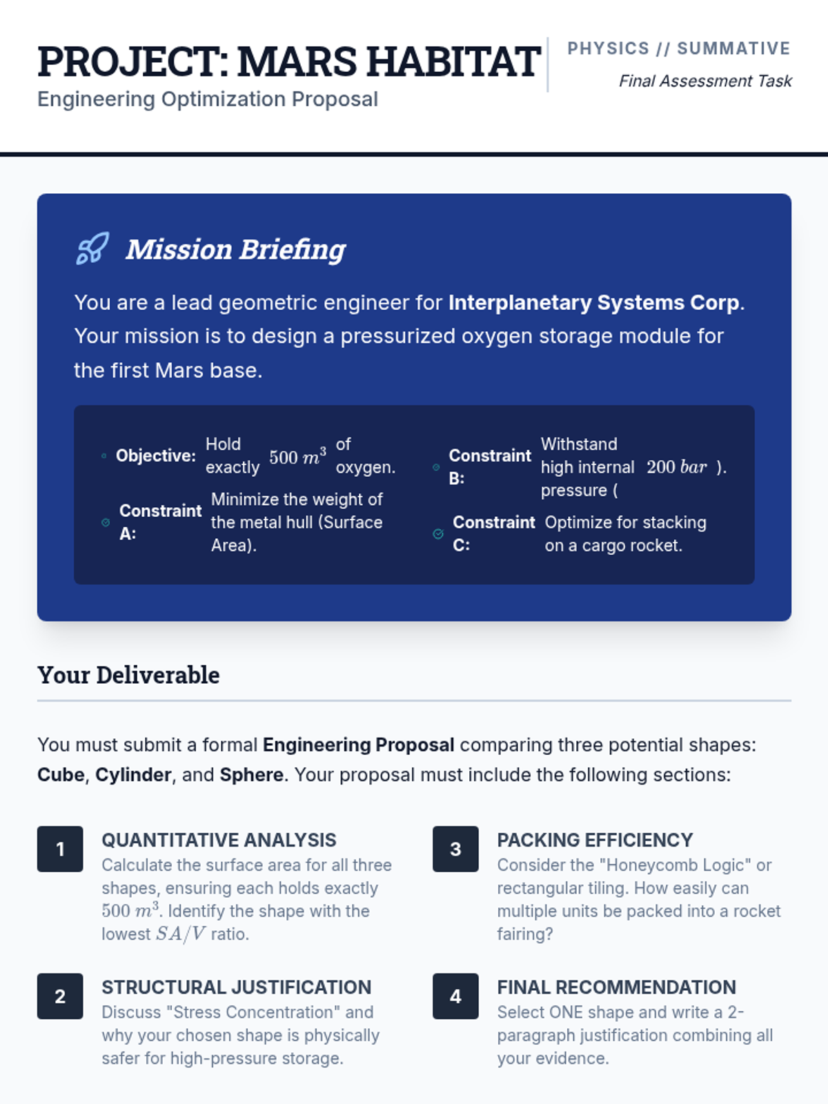 This sequence explores how geometric properties like surface area to volume ratios, stress distribution, and packing efficiency dictate engineering design choices in physics and aerospace.