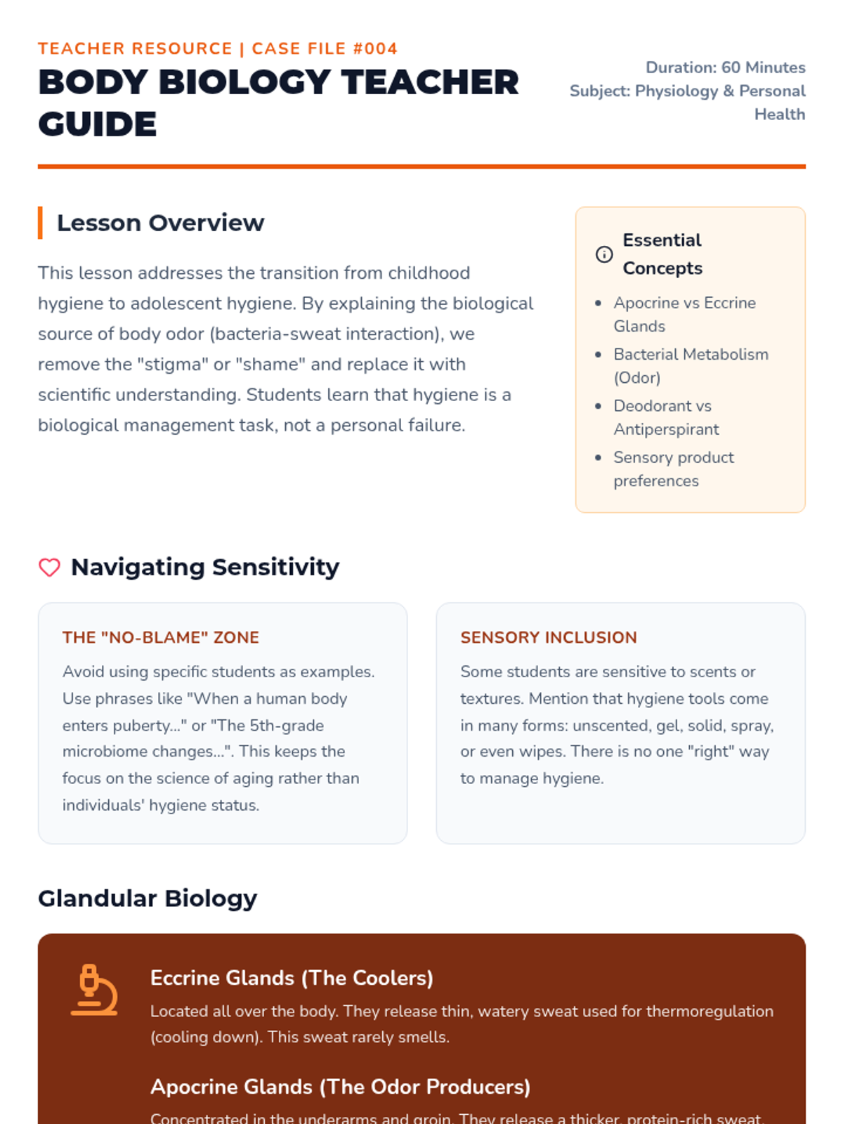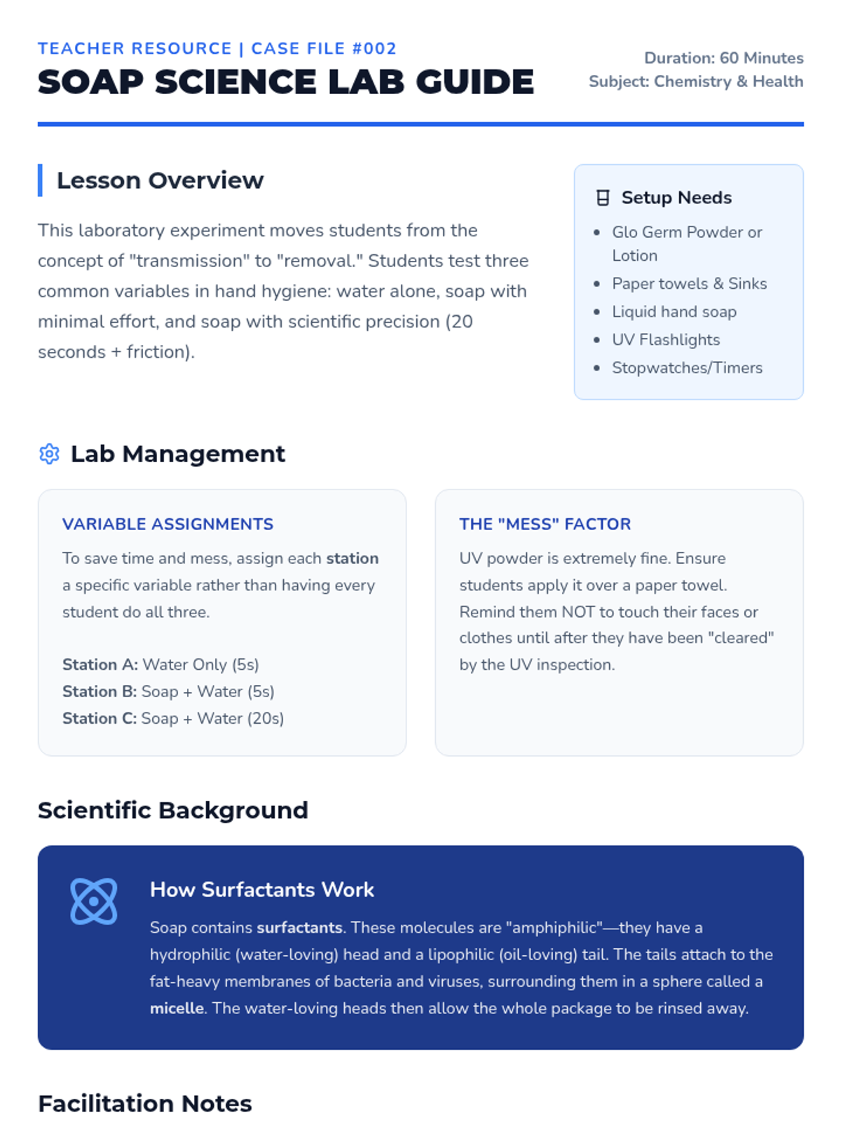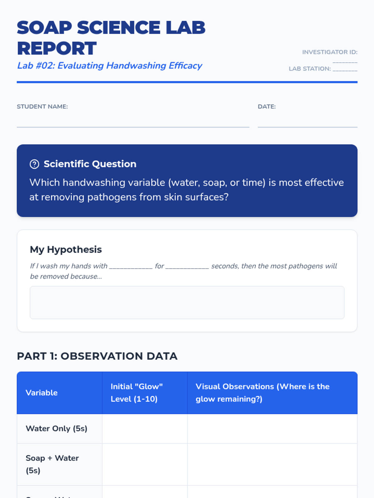 An inquiry-driven sequence guiding 5th-grade students through the scientific principles of hygiene. Students investigate germ transmission, experiment with cleaning agents, and design evidence-based personal health routines to protect themselves and their community.