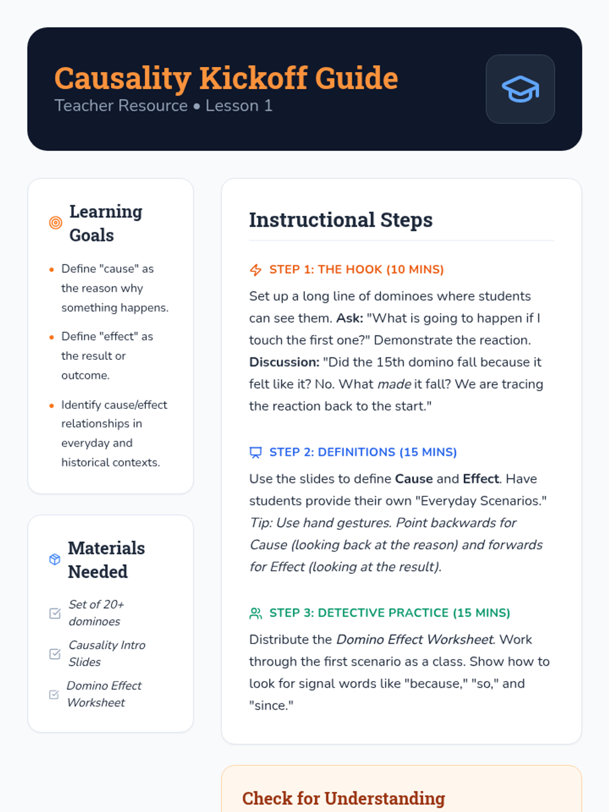 This inquiry-based sequence for 3rd grade explores the relationship between events through cause and effect. Using local community history as a lens, students learn to identify historical 'triggers' and map the chain reactions that shape their world today.