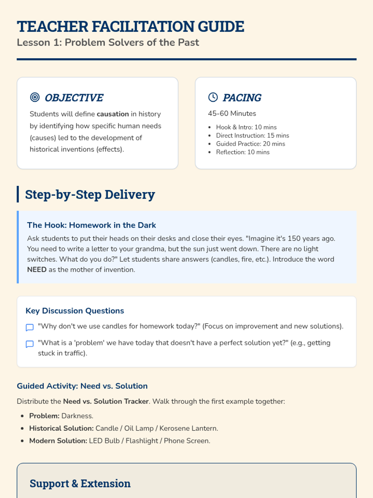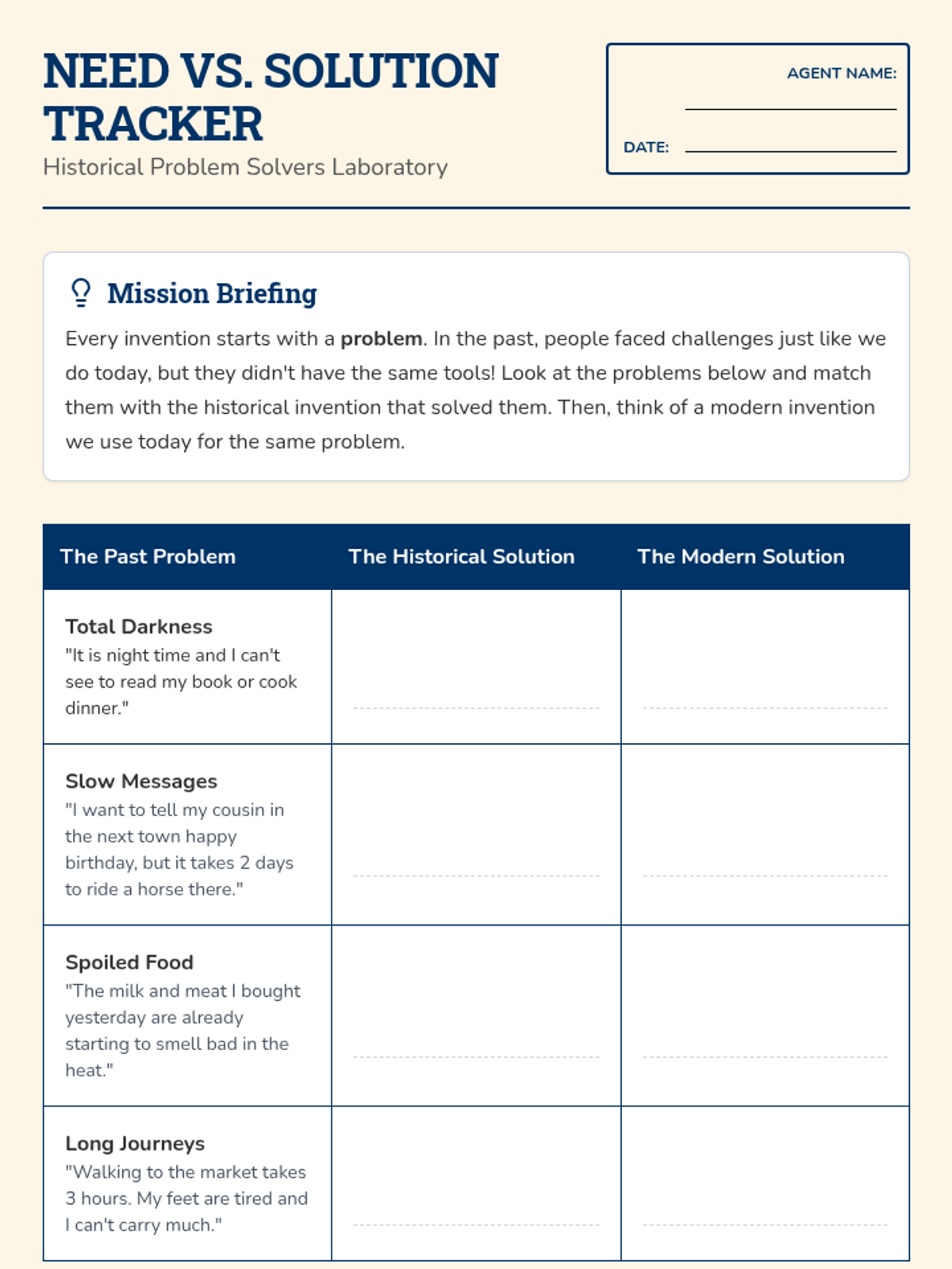 A 3rd-grade project-based sequence exploring chronology and causation through the lens of technological innovation. Students learn how inventions solve immediate problems but create long-term societal shifts and unintended consequences.