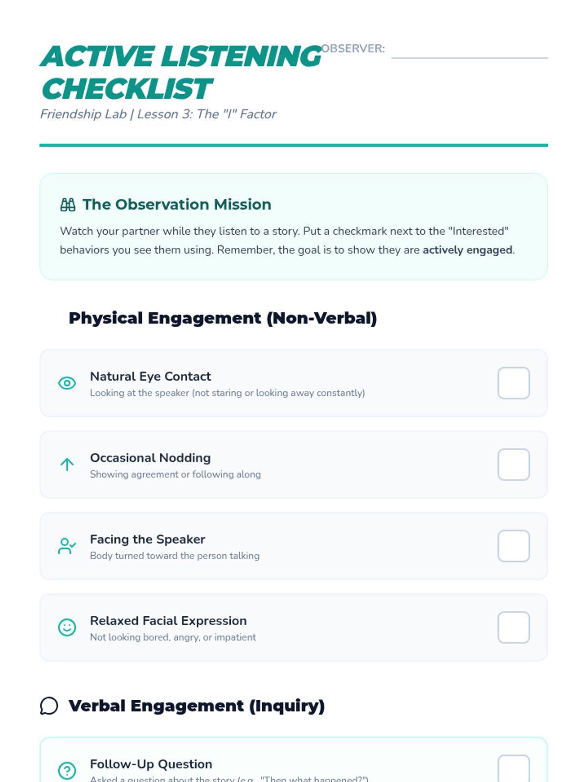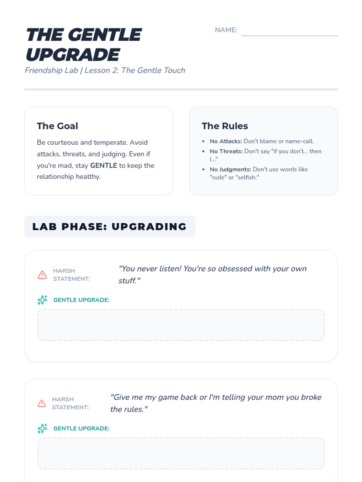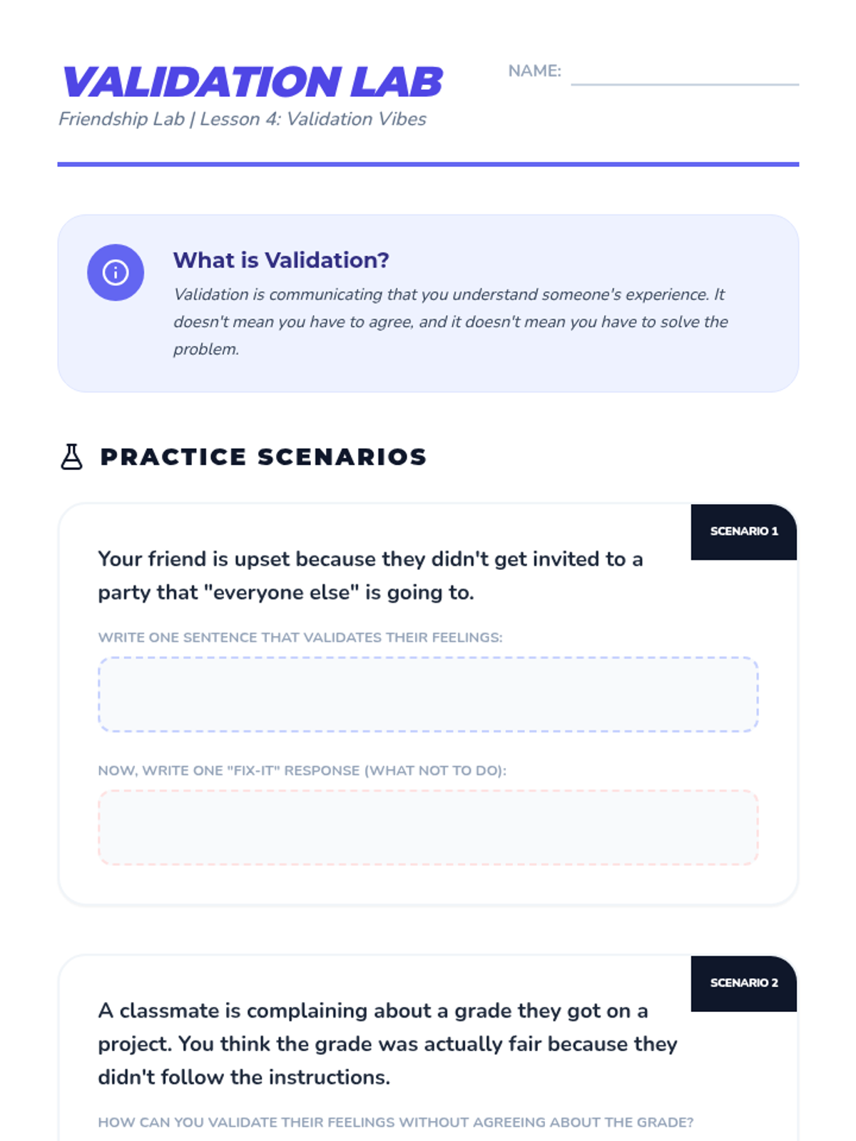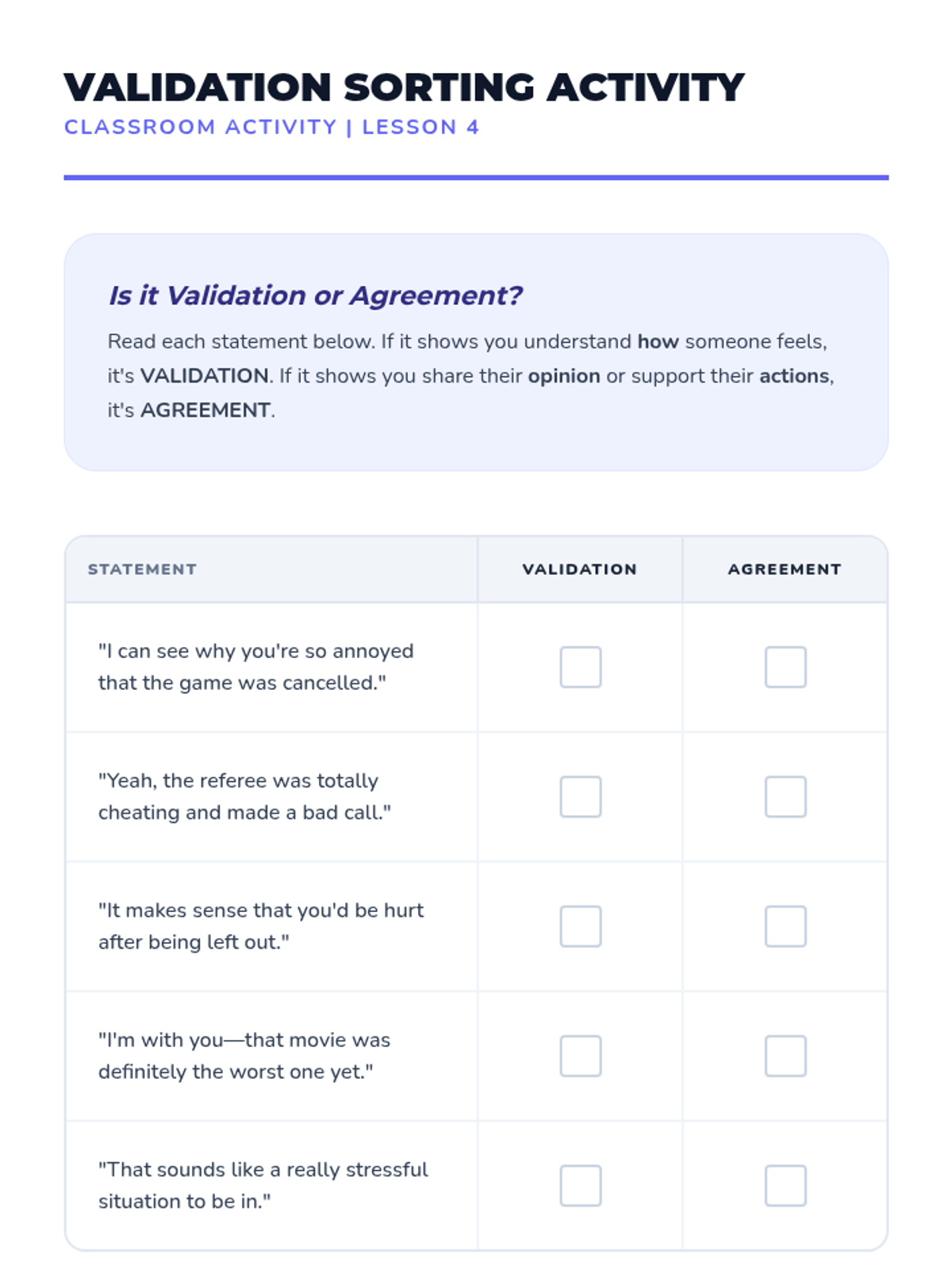 A comprehensive sequence for 6th graders to master the GIVE framework for healthy relationships, covering Gentle, Interested, Validate, and Easy manner skills through hands-on practice and reflection.